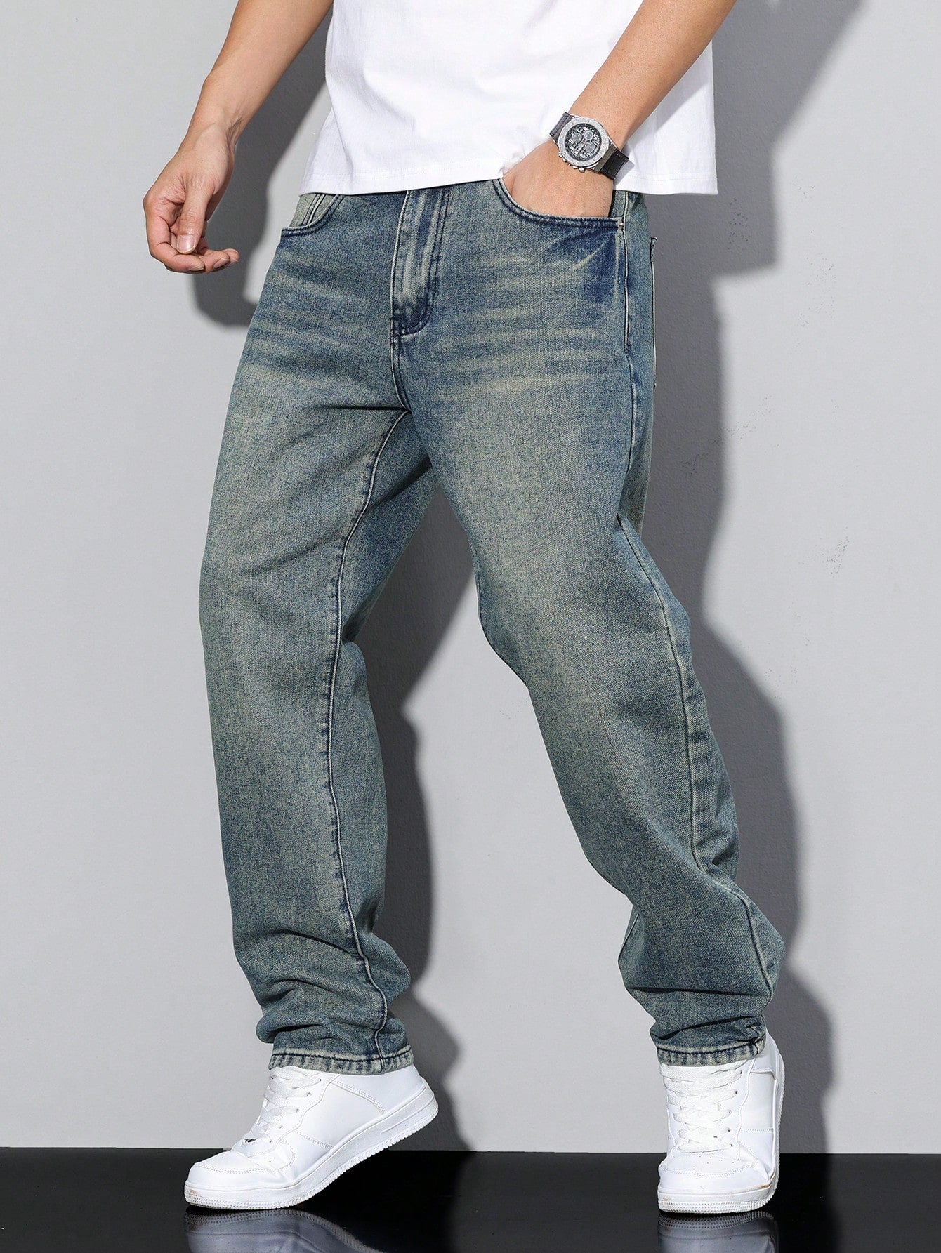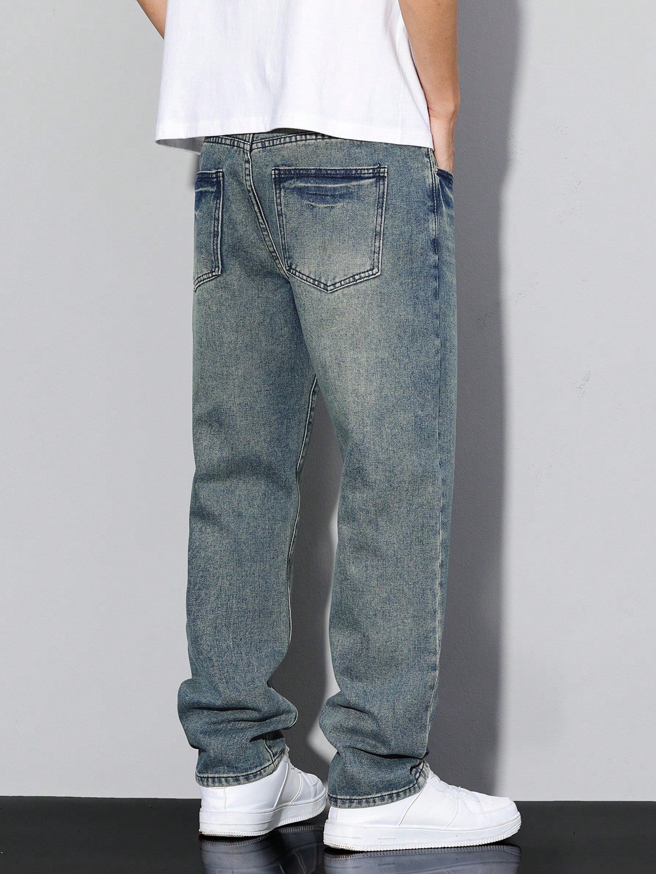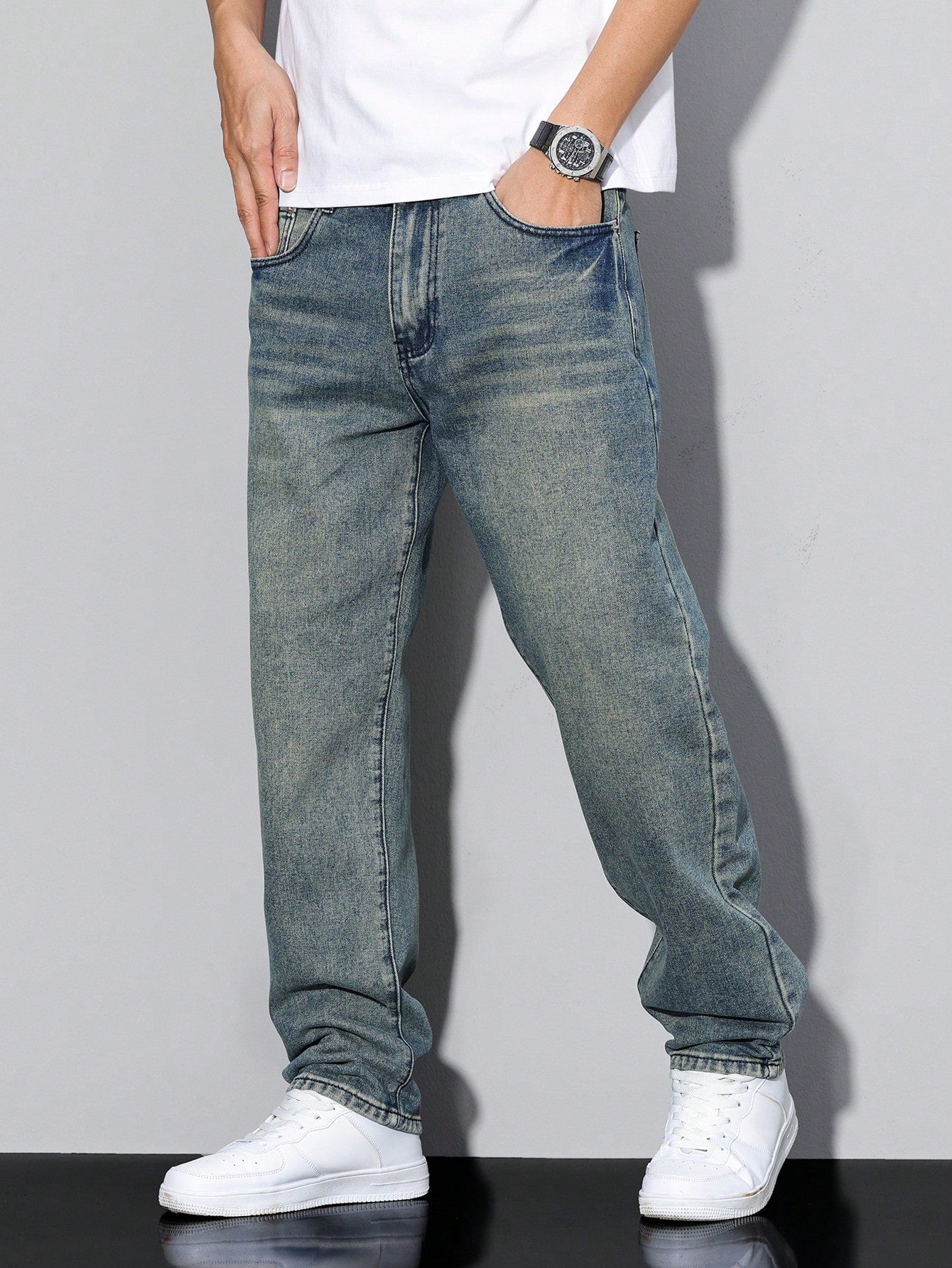 Manfinity Homme Men's Straight Loose Casual Versatile Jeans With Pockets