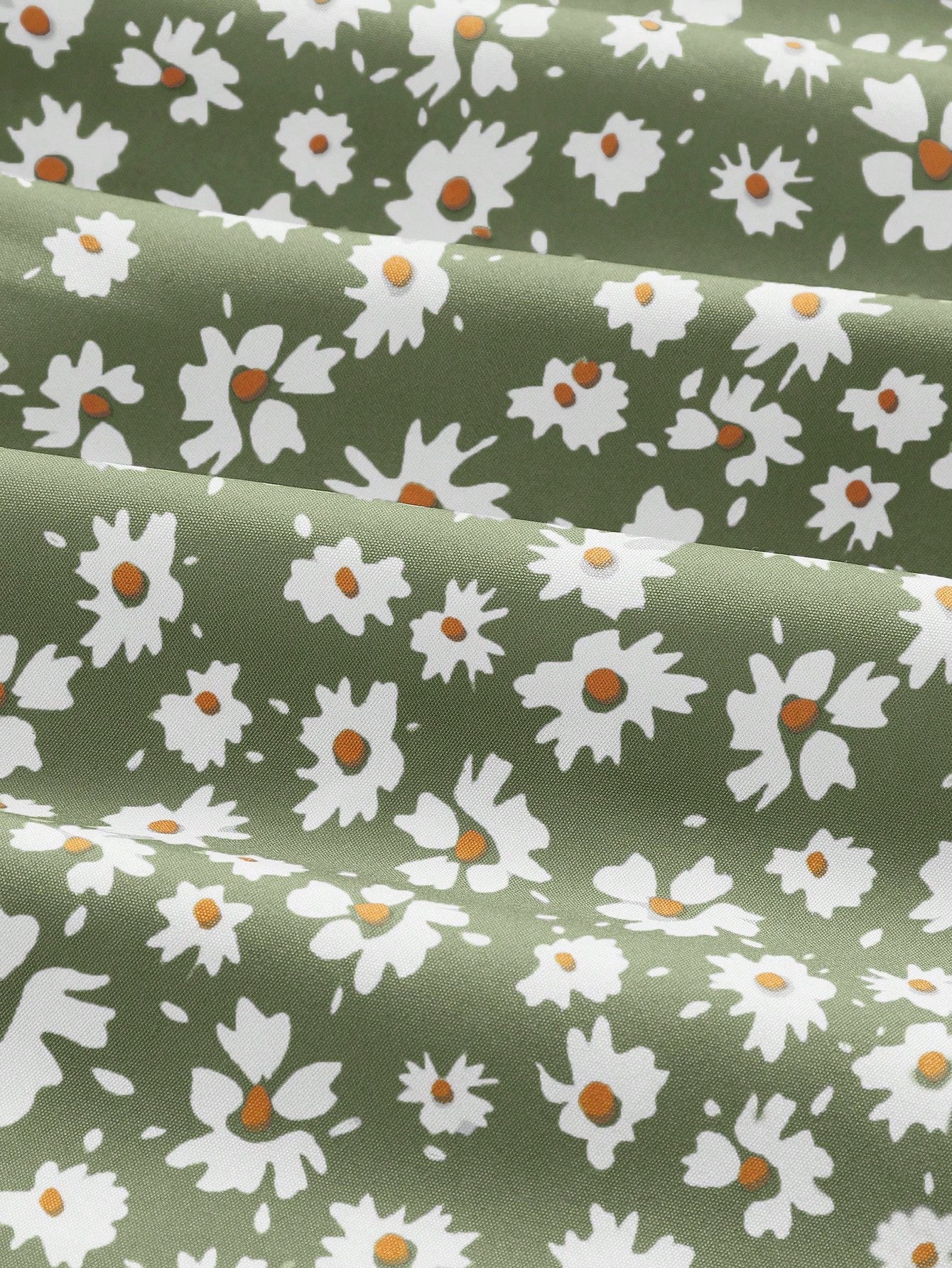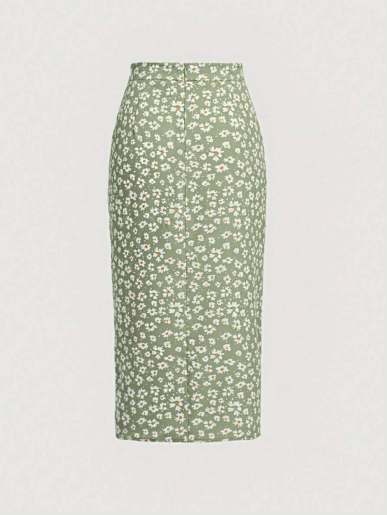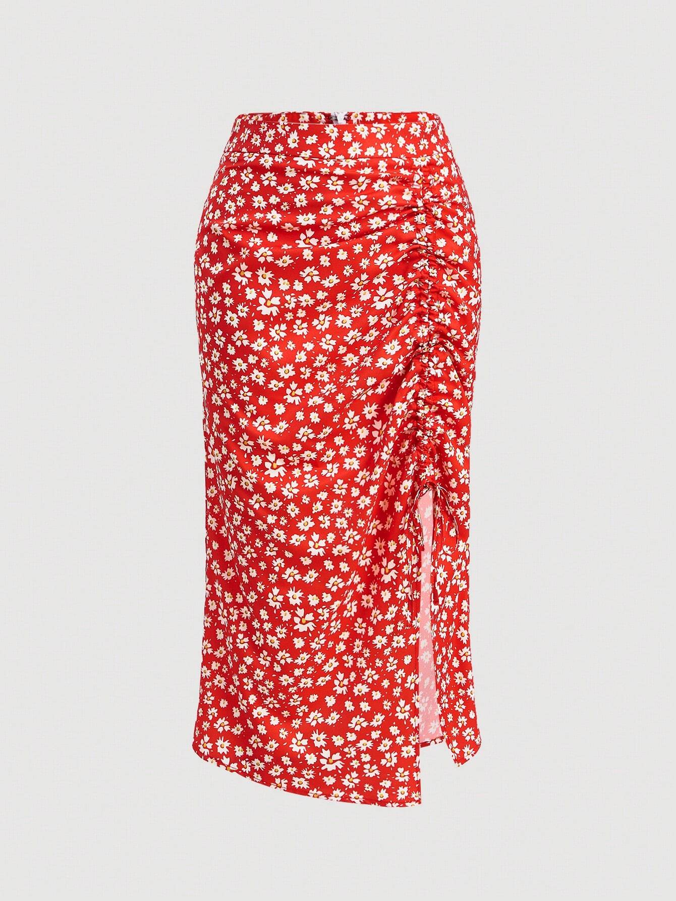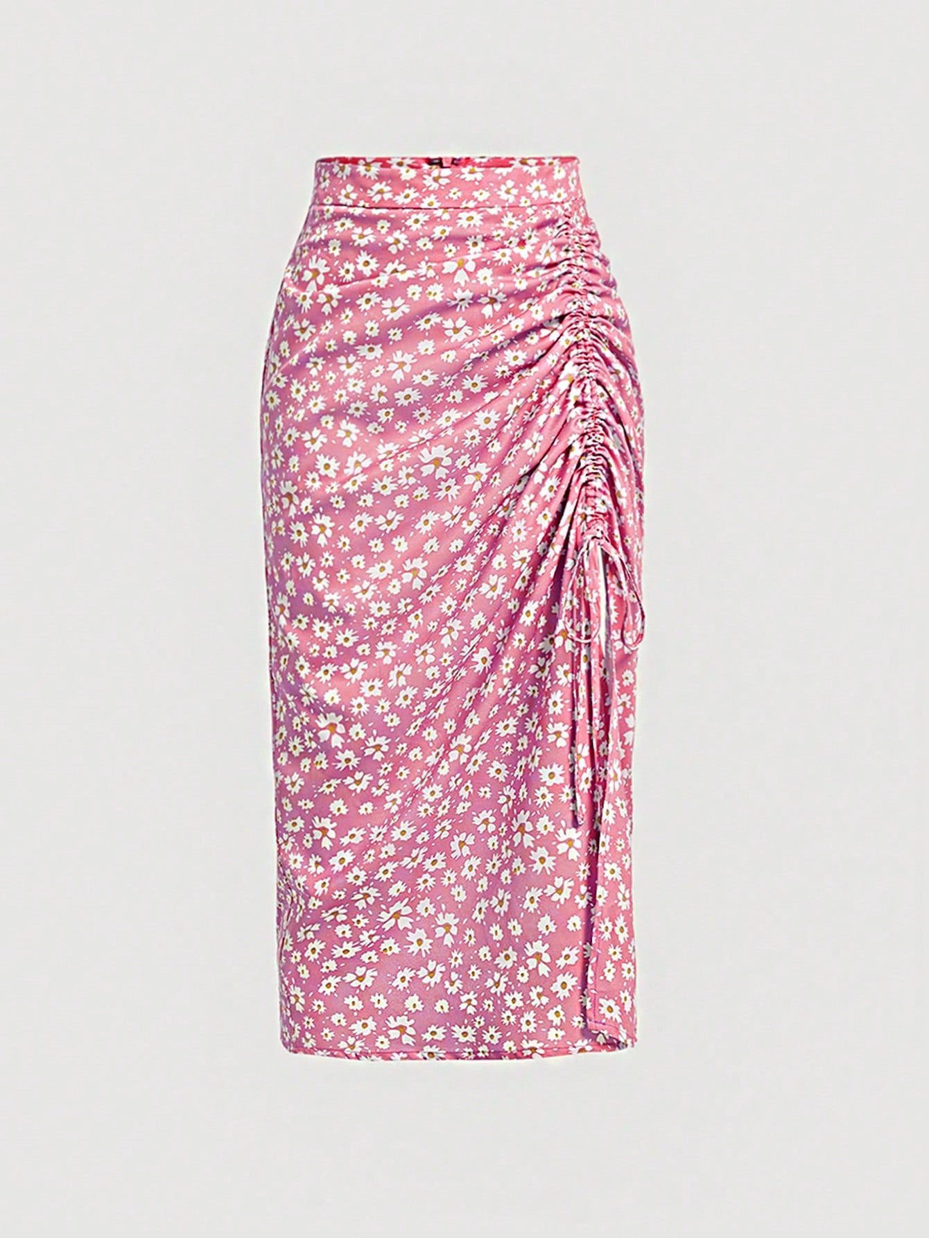Marika Sila SHEIN MOD Ditsy Floral Print Drawstring Ruched Summer Green Skirt