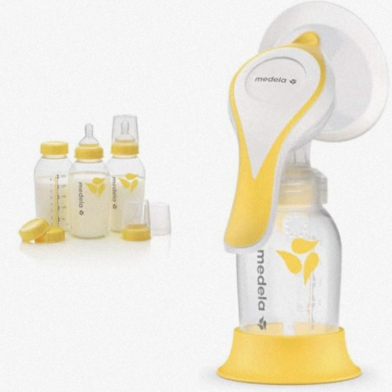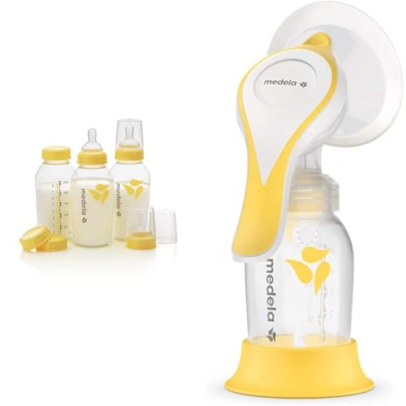 Medela Breast Milk Storage Bottles 3 Count Pack of 1 and Manual Breast Pump with Flex Shields Harmony Single Hand for More Comfort and Expressing More Milk