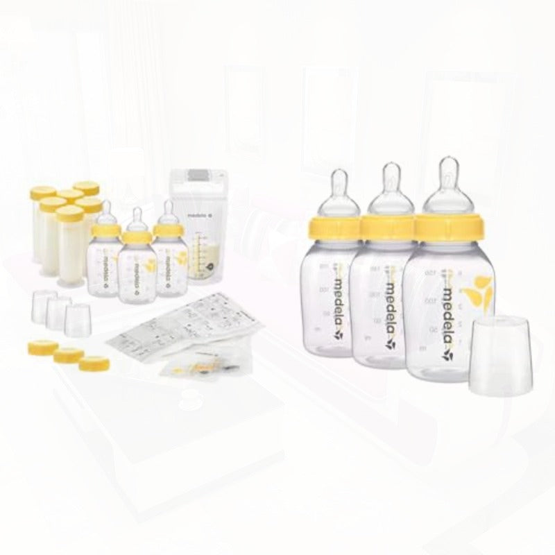 Medela Breastfeeding Gift Set Breast Milk Storage System; Bottles Nipples and Breast Milk Storage Bottles 3 Pack of 5 Ounce Breastfeeding Bottles