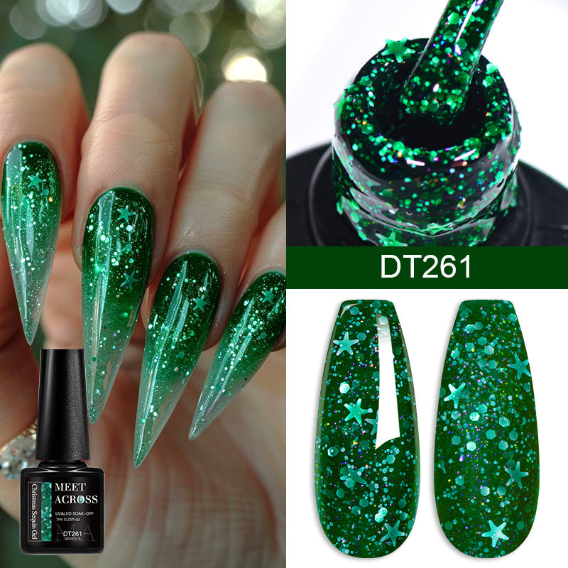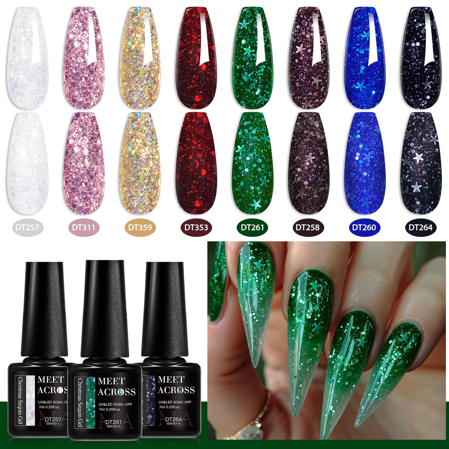 MEET ACROSS 8pcs/Box 0.24oz Christmas Color Nail Gel Polish Red Green Gel Nail Varnish UV LED Soak Off Gel Nail Varnish New Year Nails