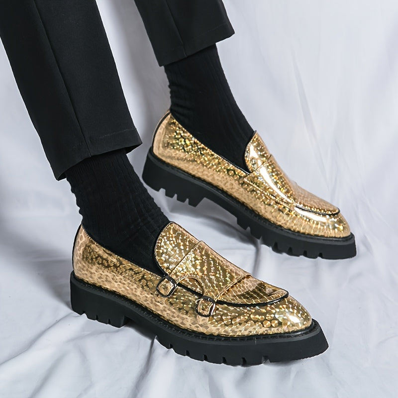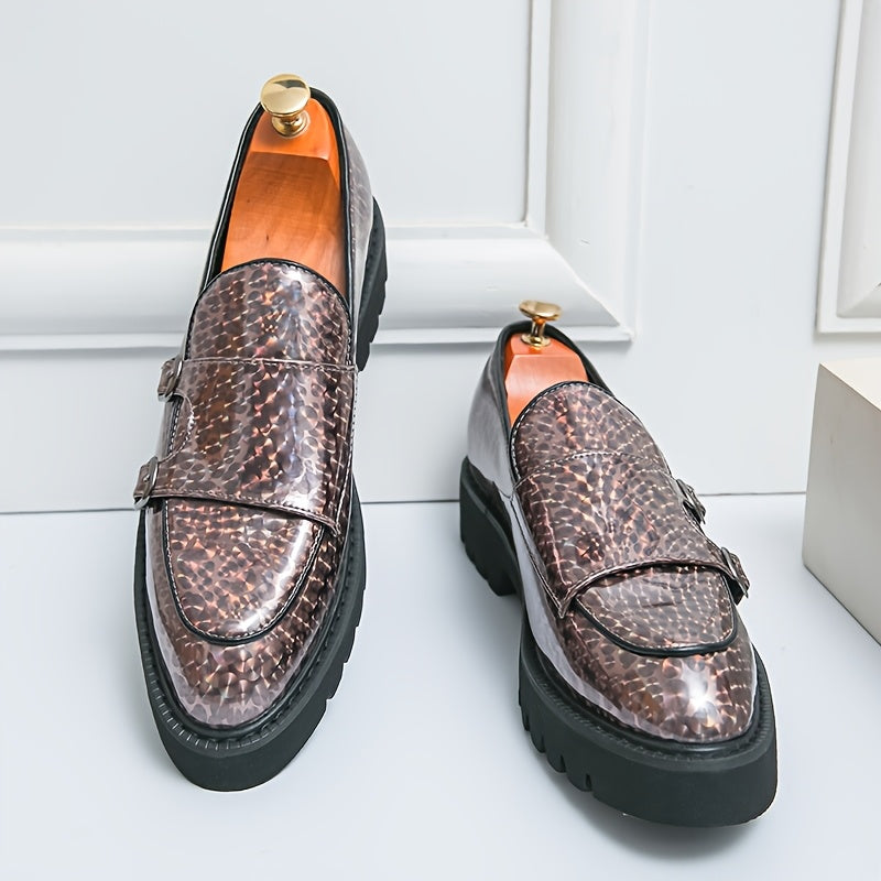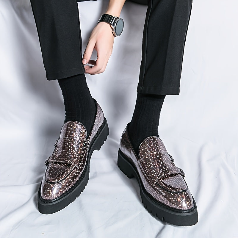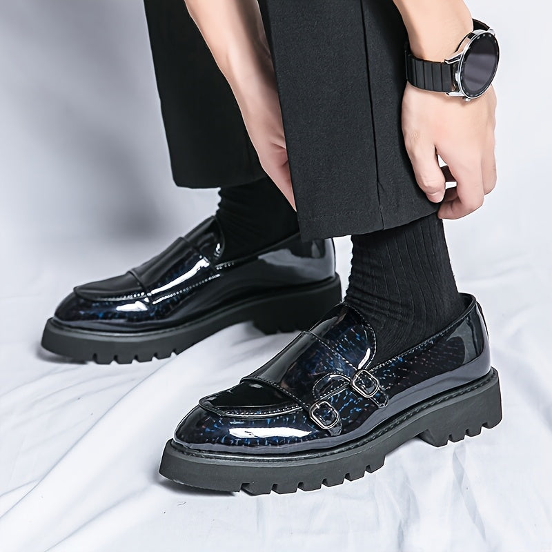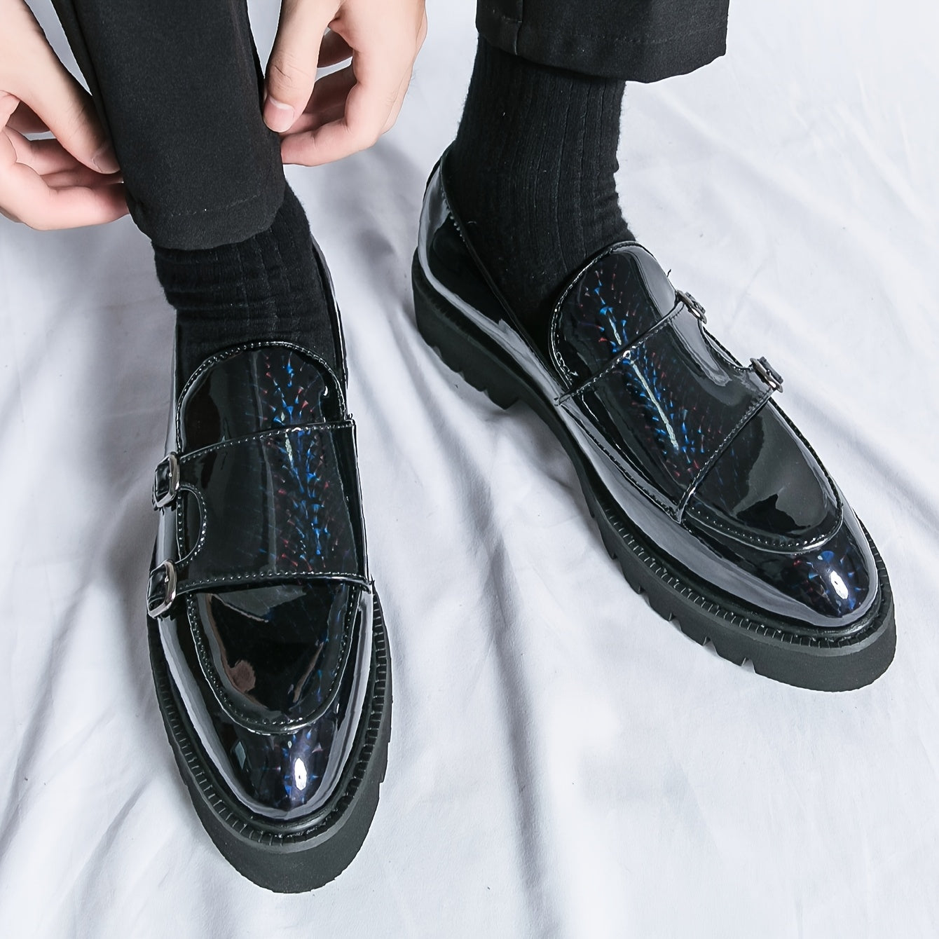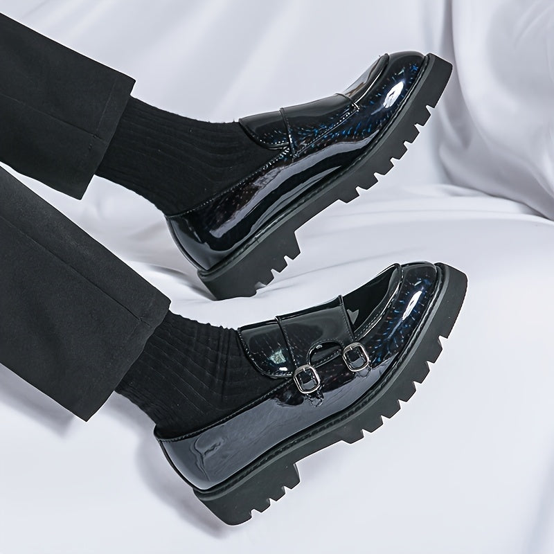 Men Wear British-style Business Casual Shoes, British-style Thick-soled Monke Shoes, Men'S Shoes, Patent Shiny, High-end Big-headed Men'S Shoes