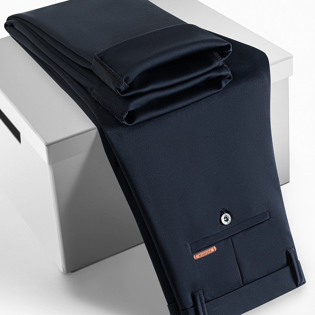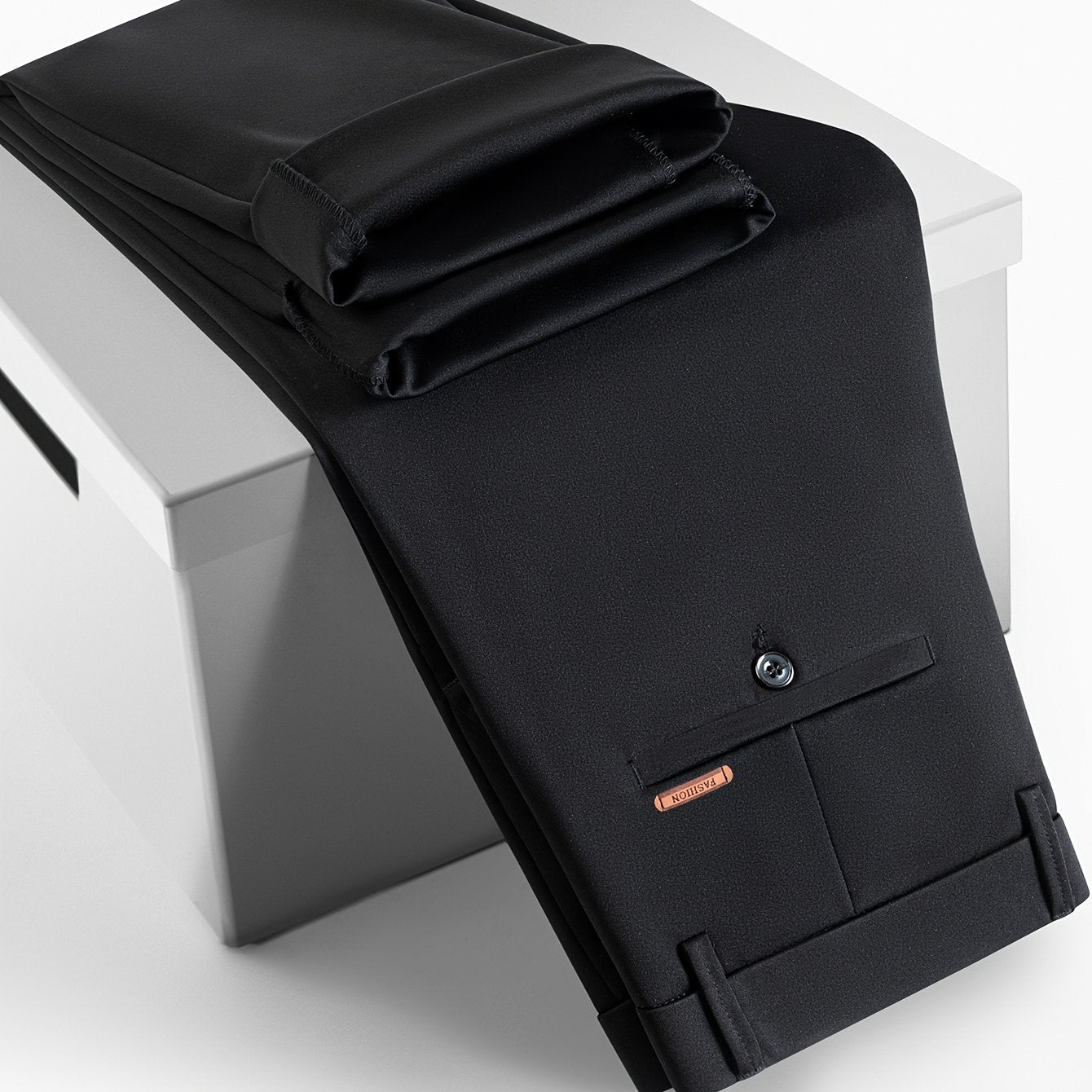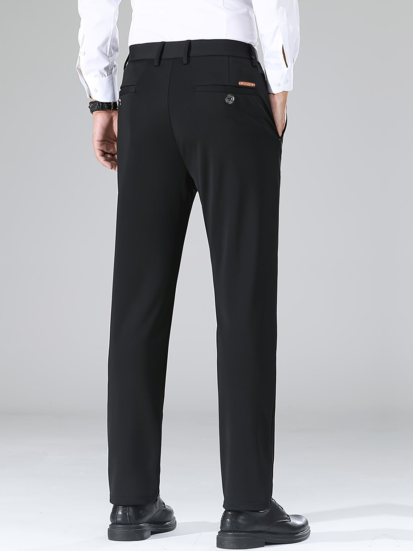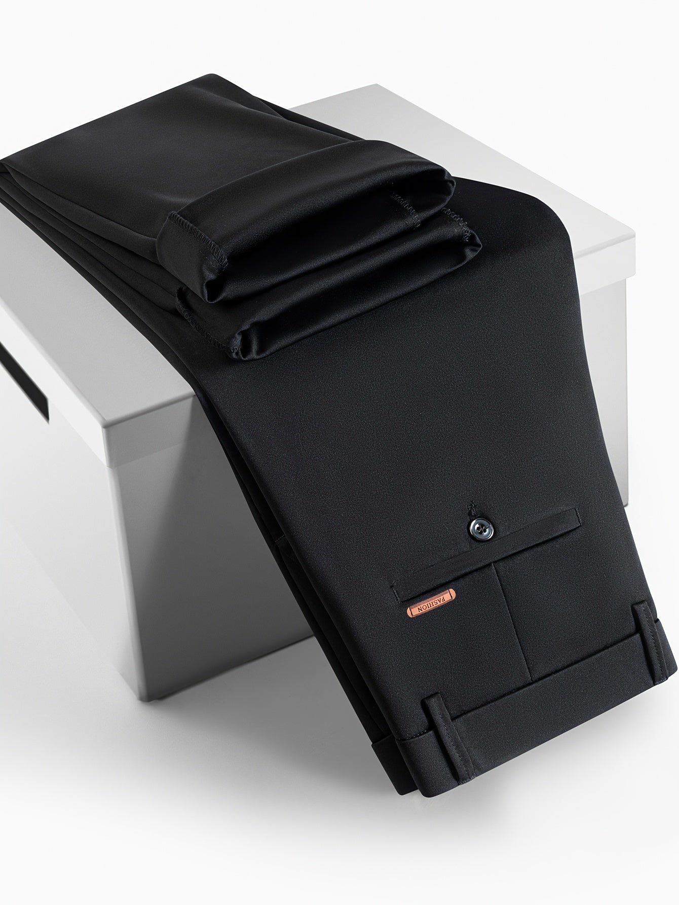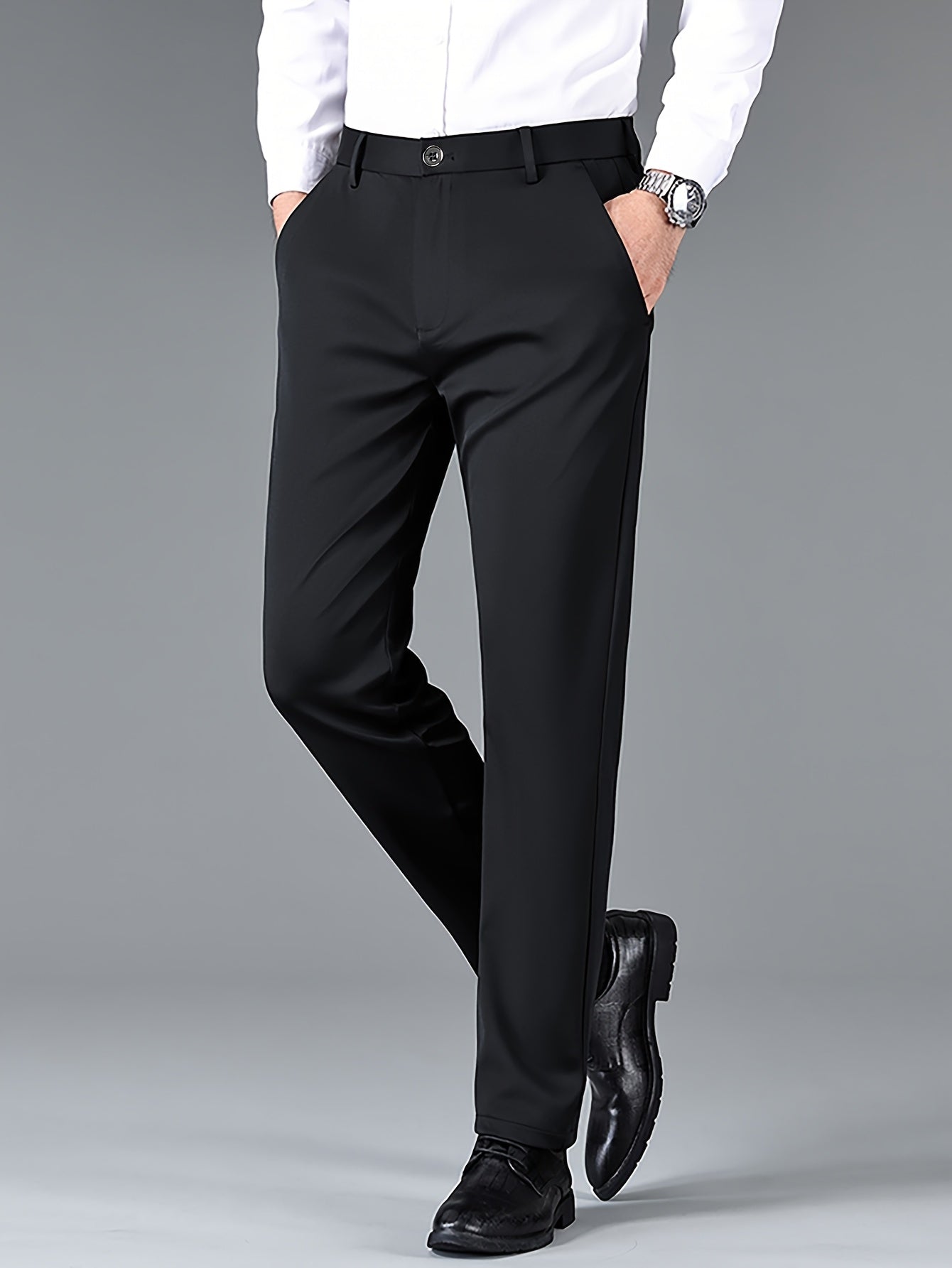 Men'S All-Season Casual Dress Pants, Black Solid Color, Regular Fit, Mid Waist, Button Fly, Polyester 94.6%, Spandex 5.4%, Slight Stretch, Woven Fabric, 210g/m², for Weekend Casual Occasions