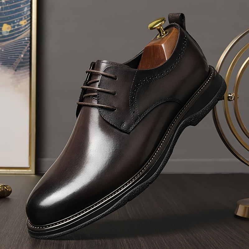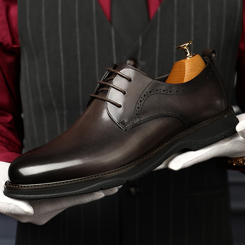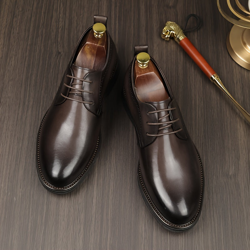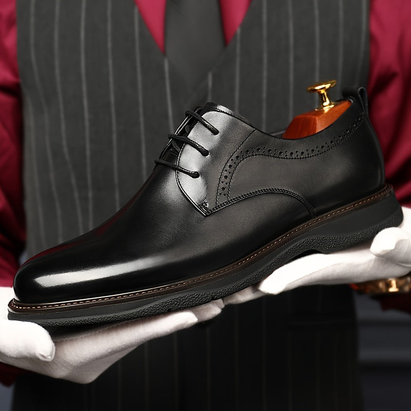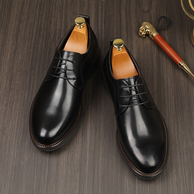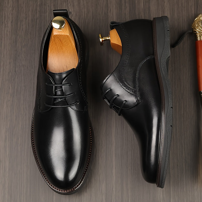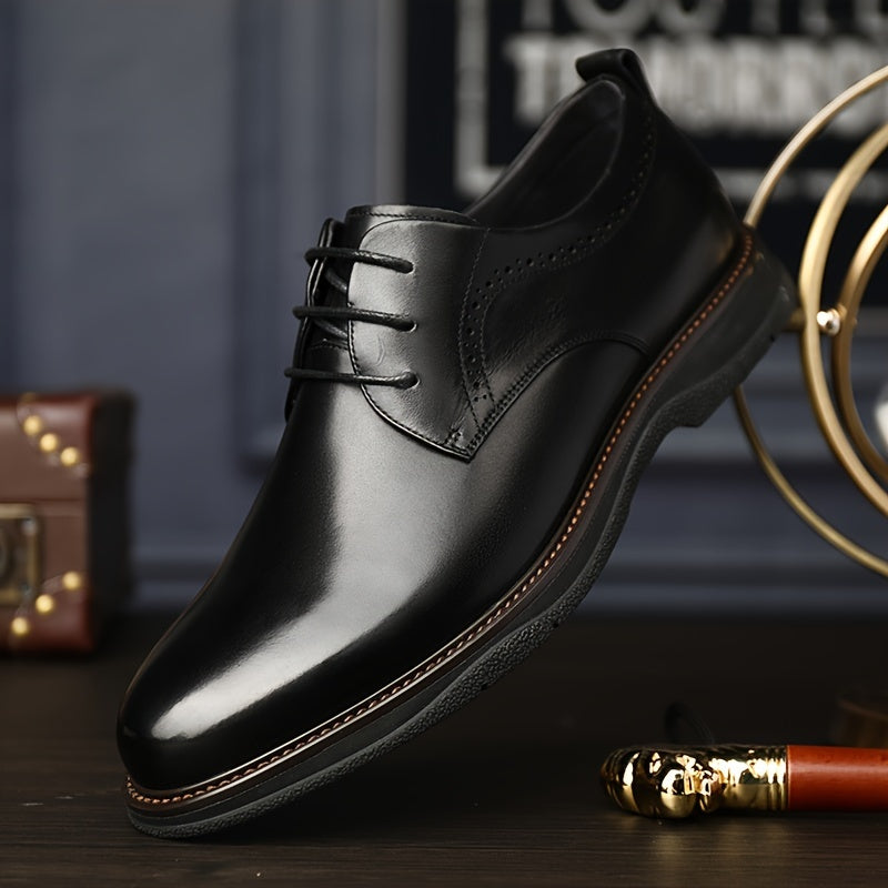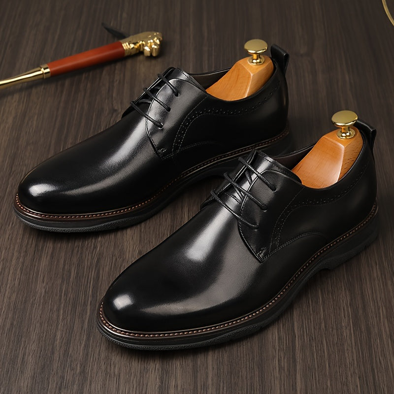 Men'S Black Leather Oxford Dress Shoes - Elegant Lace-Up with Round Toe, Ideal for Weddings, Business, and Formal Events, All-Season Comfort, Wedding Shoes|Formal Shoes|Rubber Sole Shoes