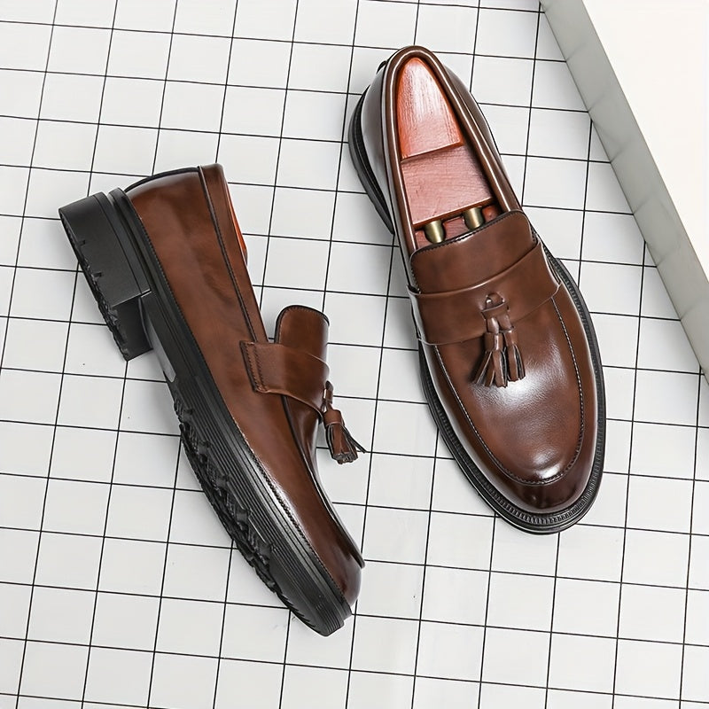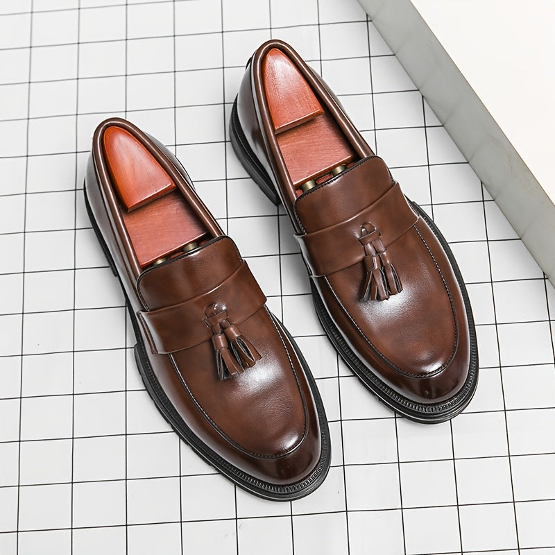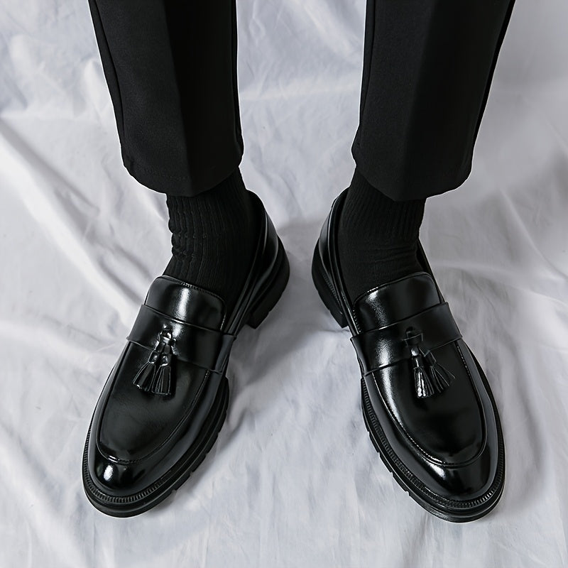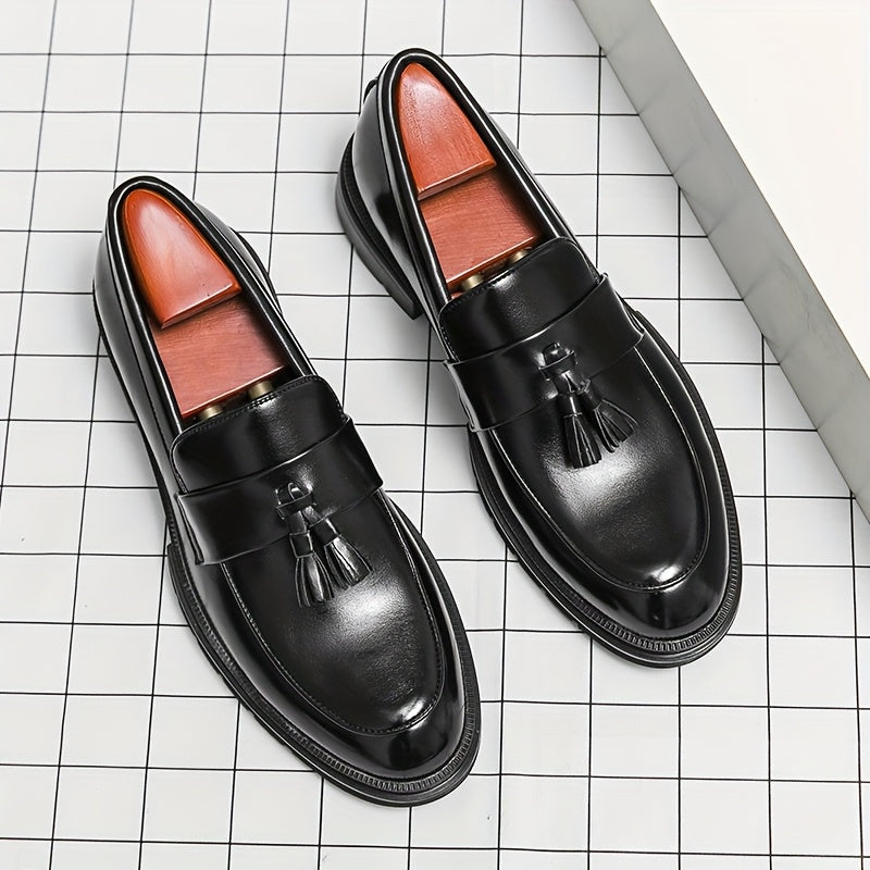 Men's Black Tassel Loafers - Elegant Slip-On Dress Shoes with Non-Slip Rubber Sole, Durable Design for Business, Casual, and Wedding Wear, Shoes for Wedding