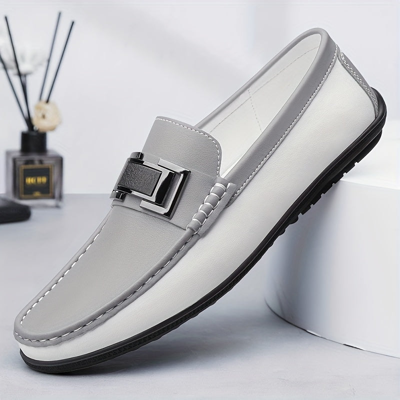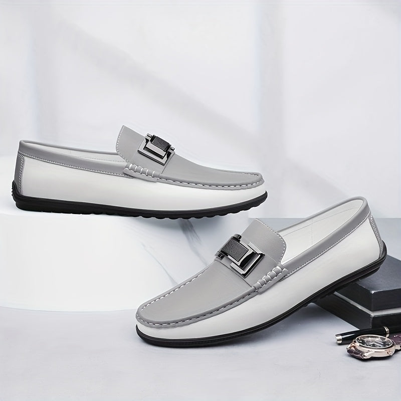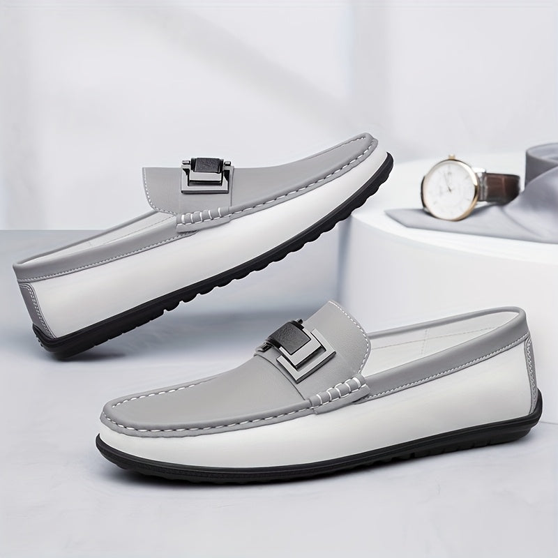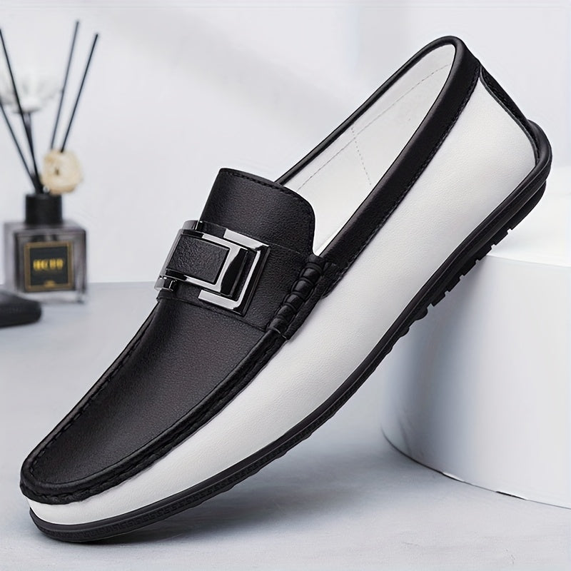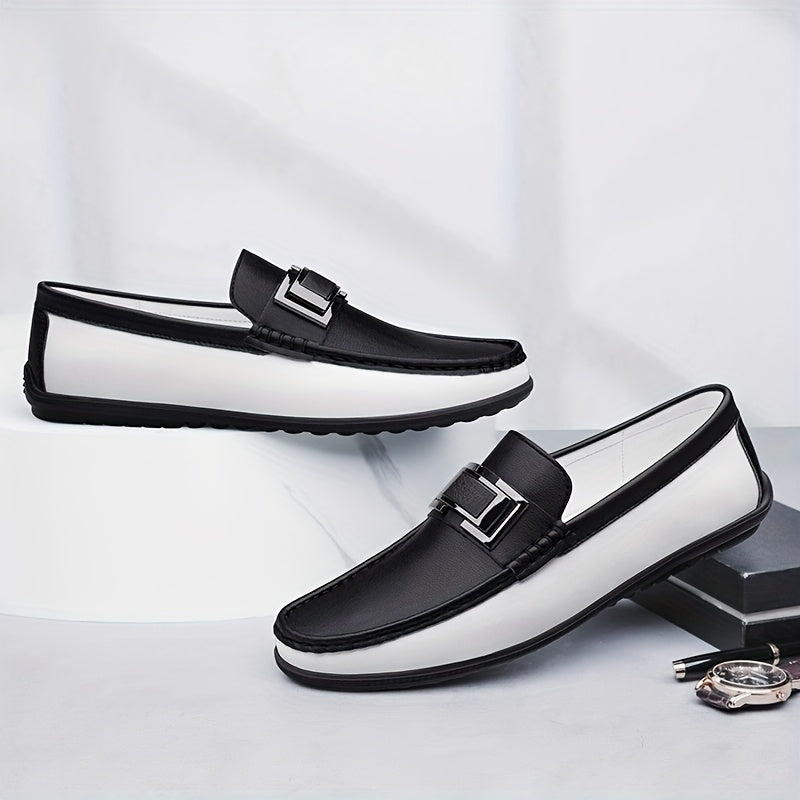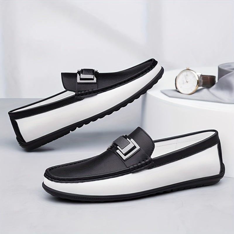 Men'S Black & White Slip-On Loafers - Summer Casual & Business Style, Soft Rubber Sole, Round Toe, Faux Cover Upper, Comfortable Driving & Work Shoes, Business Casual Shoes | Round Toe Loafers | Rubber Sole Shoes