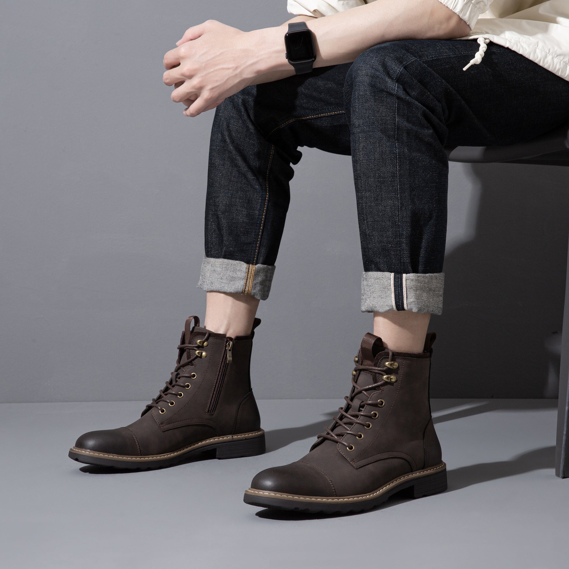 Mens Boots Motorcycle Casual Boots For Men Zipper Fashion Chukka Boots Mens