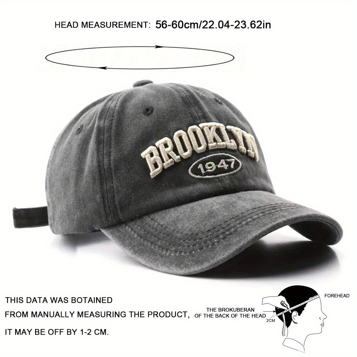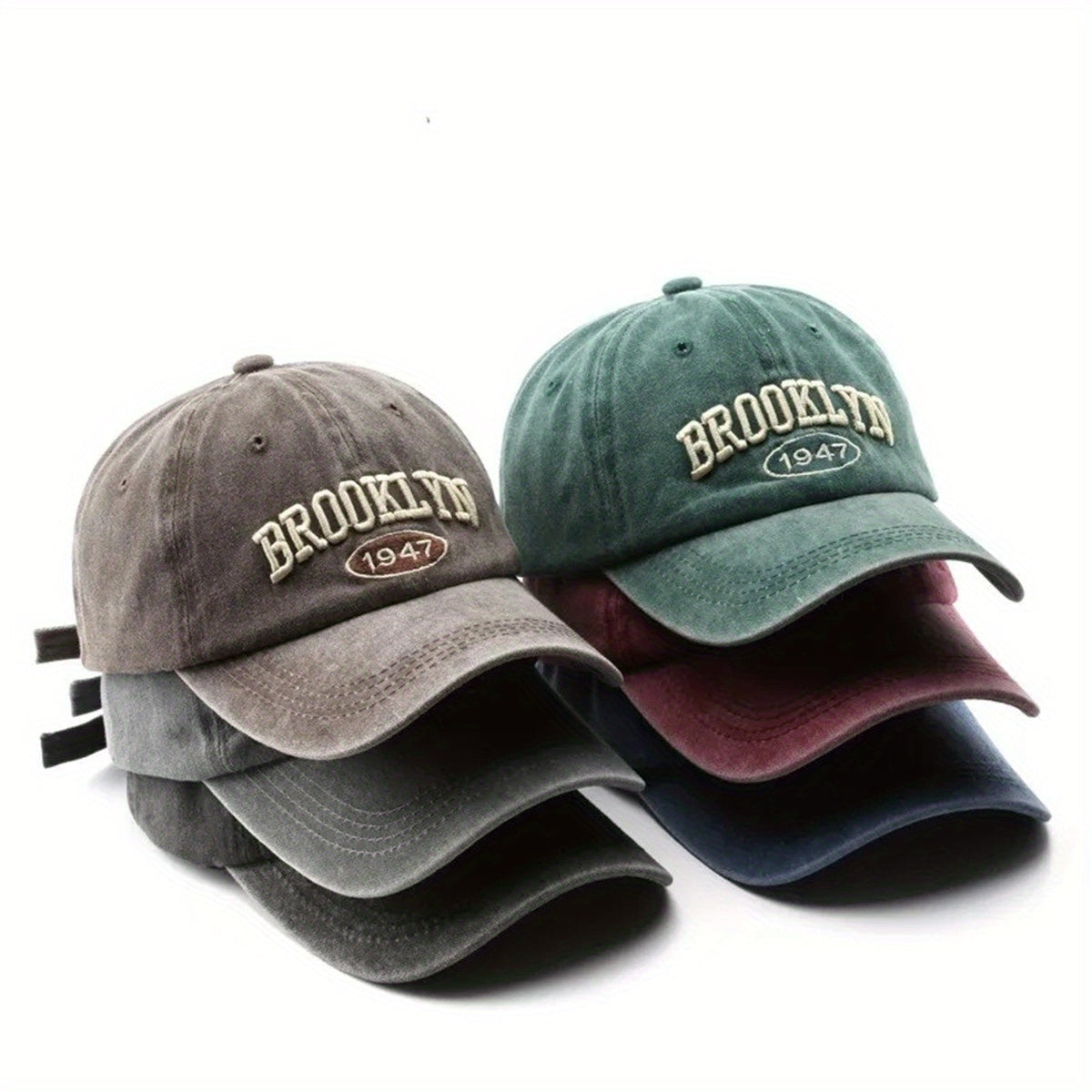 Men's Casual Baseball Cap With Adjustable Strap, Polyester Fabric, Brooklyn Lettering, Water Washable, Outdoor And Travel Hat For Spring And Autumn