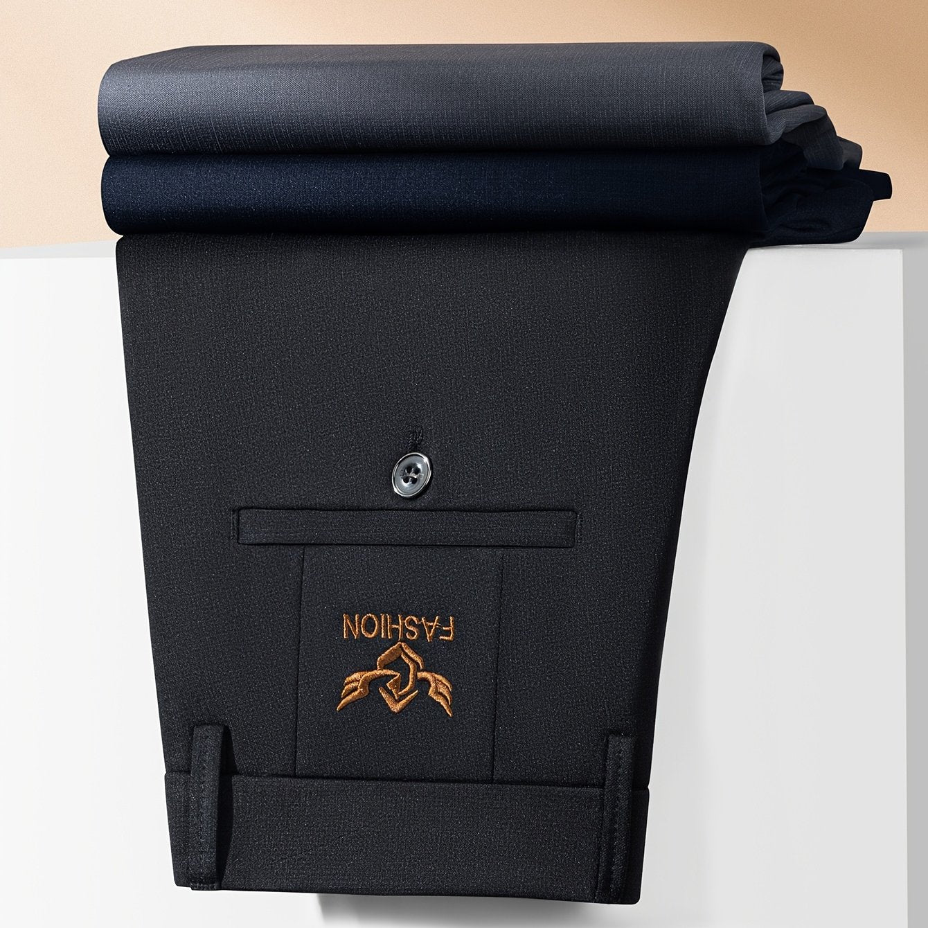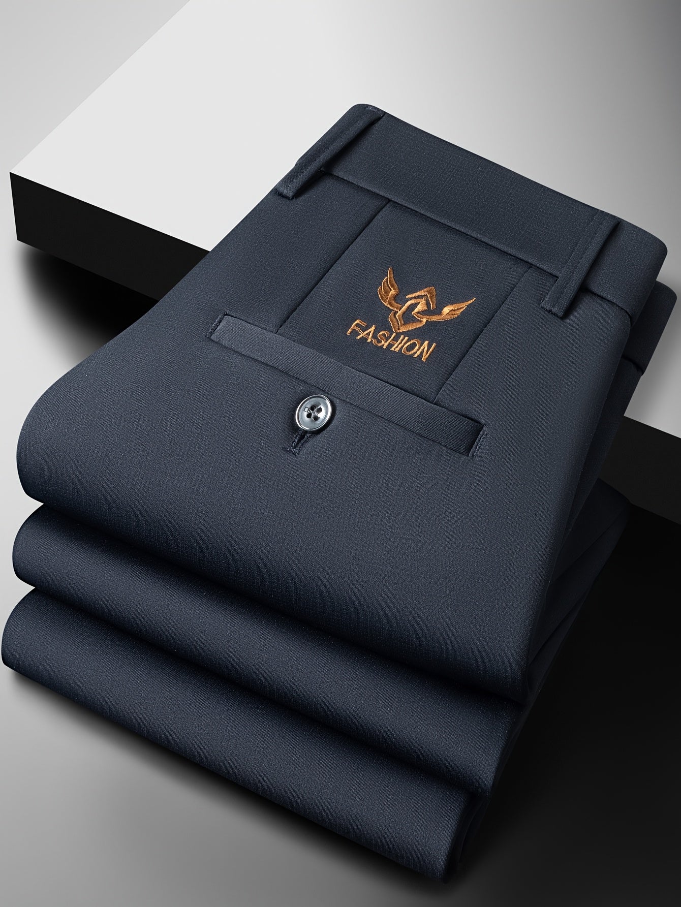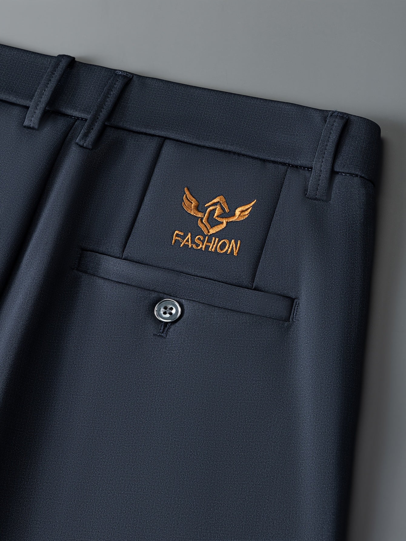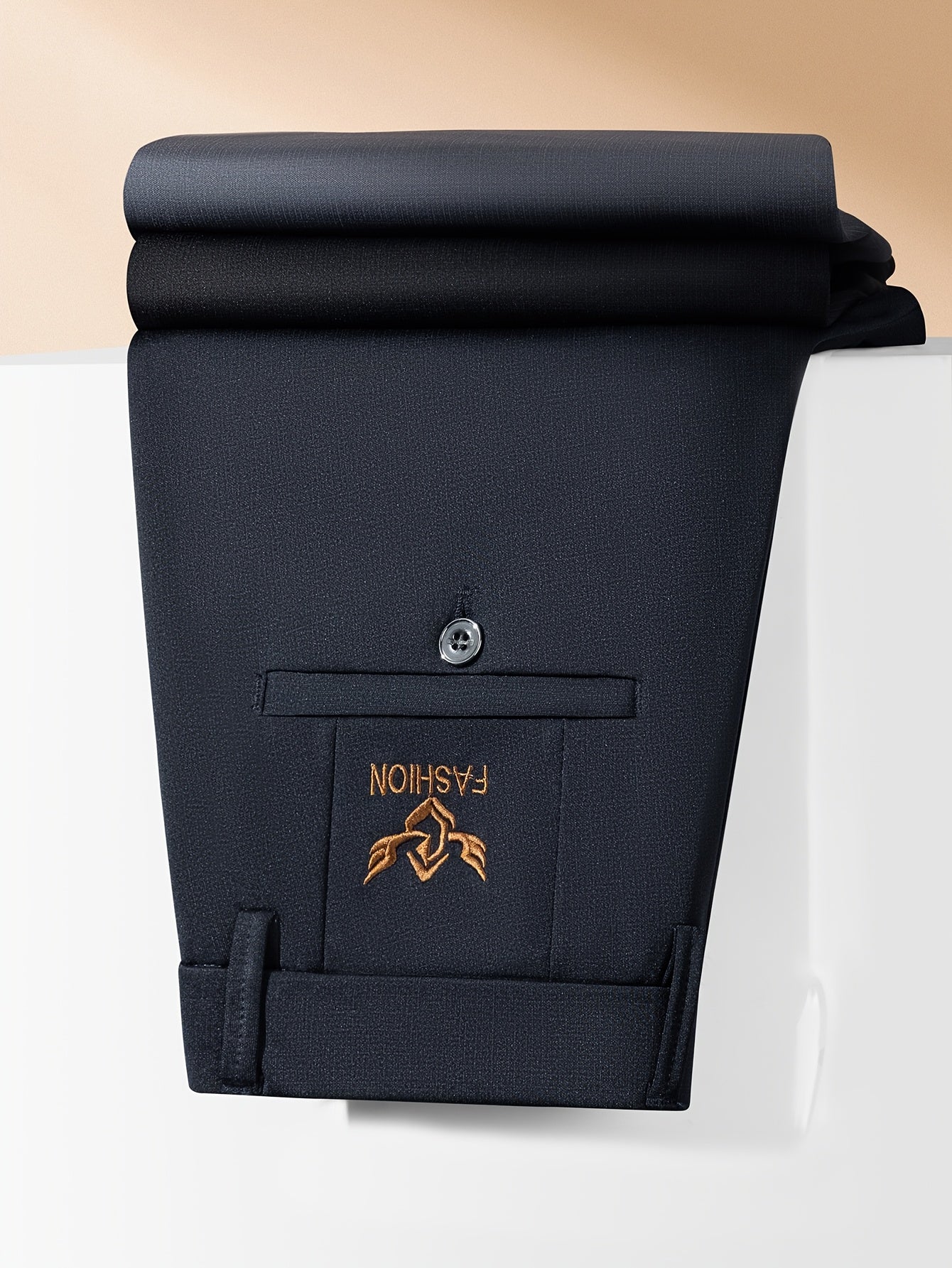 Men'S Casual Long Pants, Black Stretch Slim Fit Dress Pants, Mid-Waist Regular Fit, Polyester 94% Spandex 5%, Button Fly, All-Season, Woven Fabric, 210g/m², Alphabet Pattern, for Weekend Casual - Slight Stretch