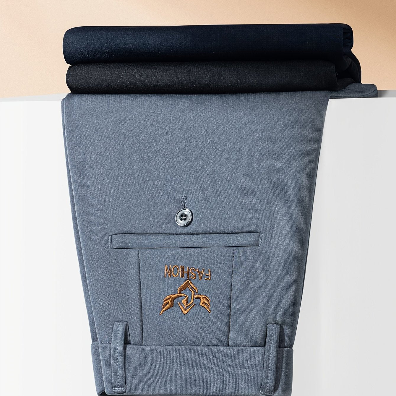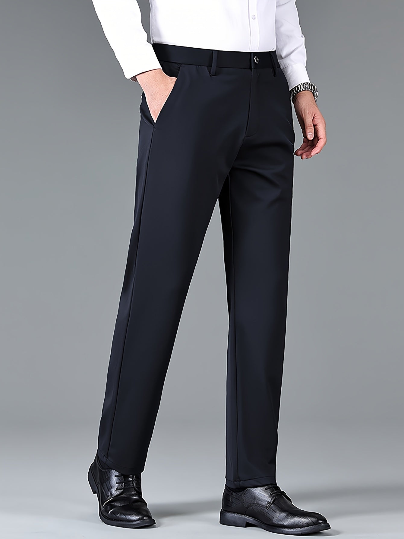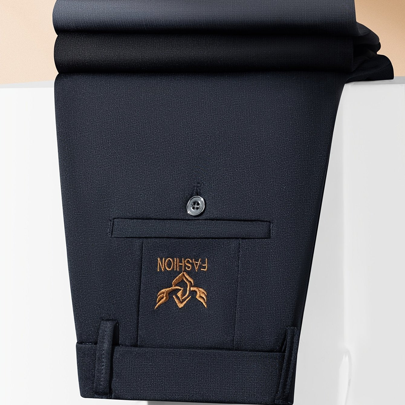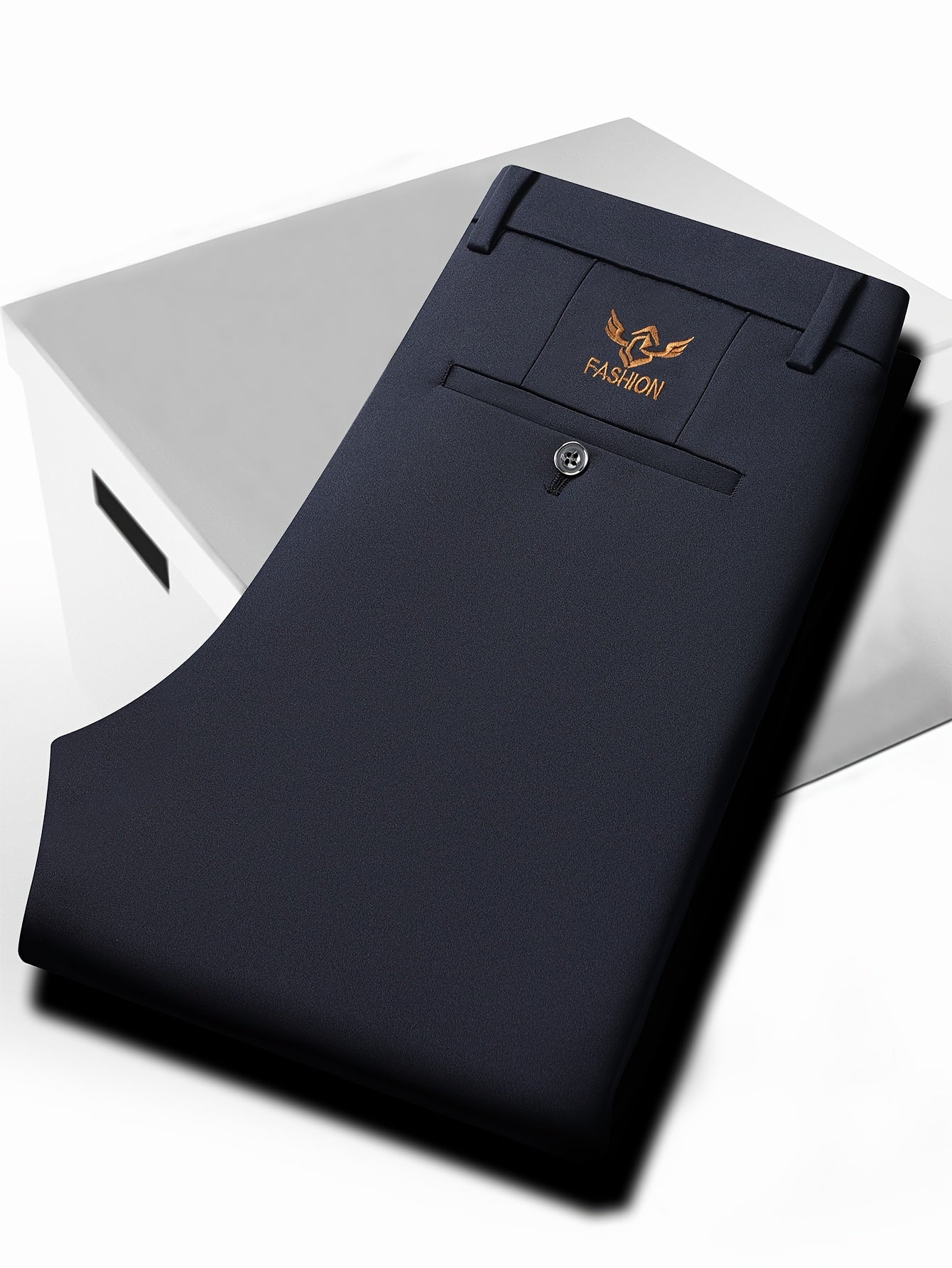 Men'S Casual Long Pants, Black Stretch Slim Fit Dress Pants, Mid-Waist Regular Fit, Polyester 94% Spandex 5%, Button Fly, All-Season, Woven Fabric, 210g/m², Alphabet Pattern, for Weekend Casual - Slight Stretch