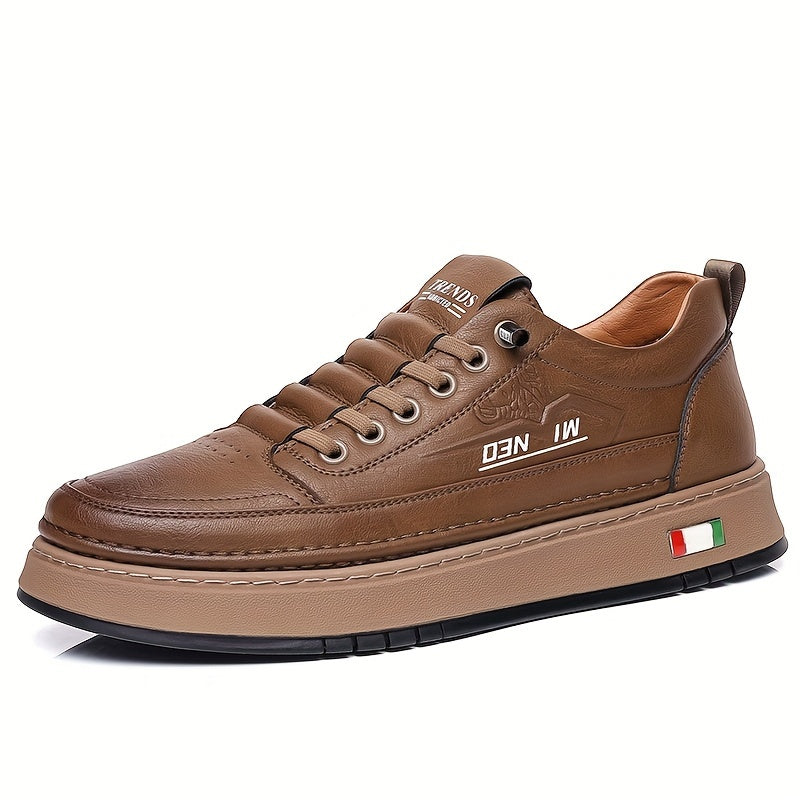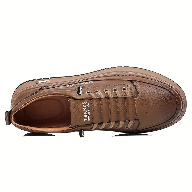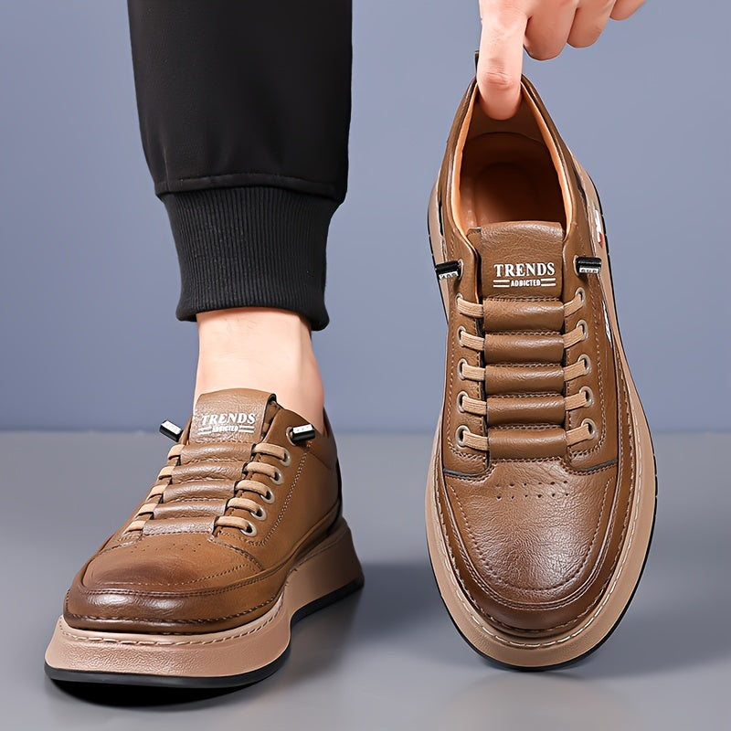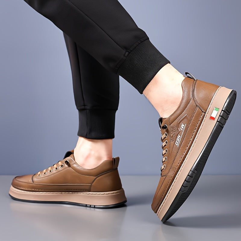 Men's Casual Running Shoes, Solid Color Low Top Sneakers with Lace-Up Closure, Faux Upper & Inner, Fabric Lining, Rubber Sole for Fall/Winter - Round Toe Sports Footwear, Casual Sneakers | Sporty Casual Shoes | Pu Upper Sneakers
