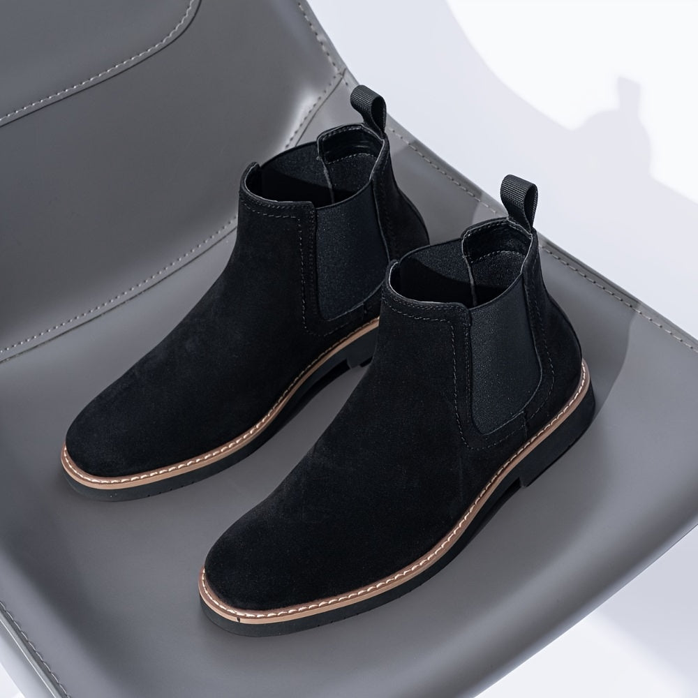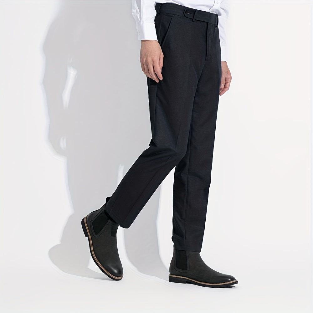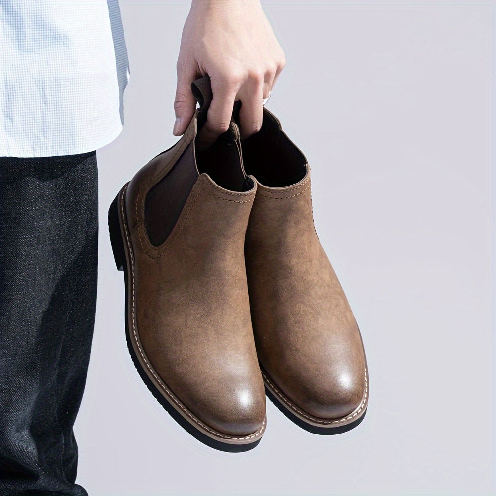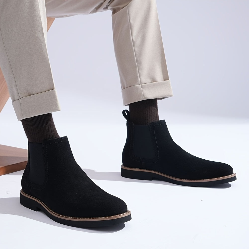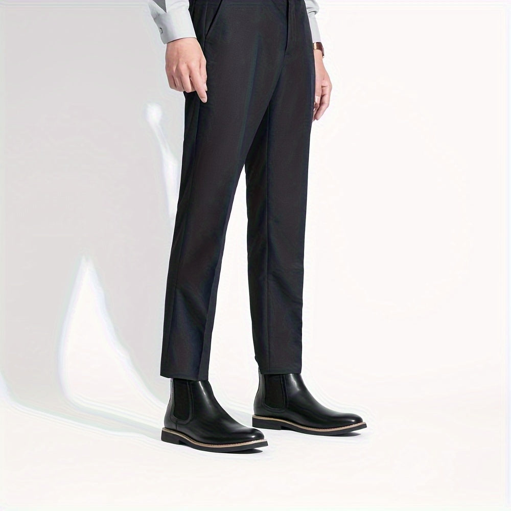 Men's Classic Boots - Slip-On Ankle Dress Boots for Business and Casual Wear, Black with Rubber Sole