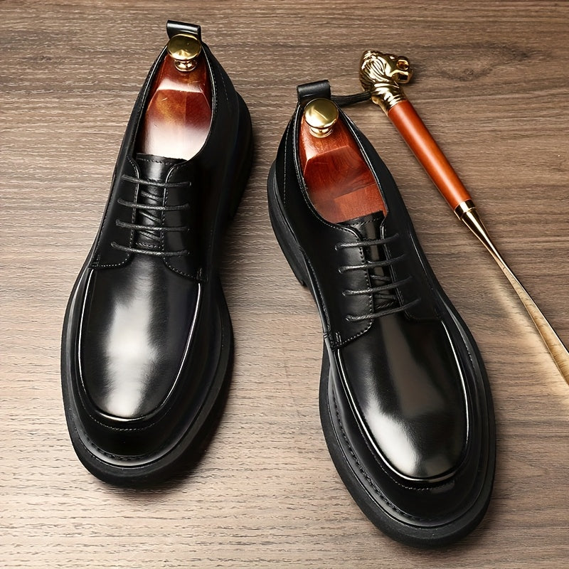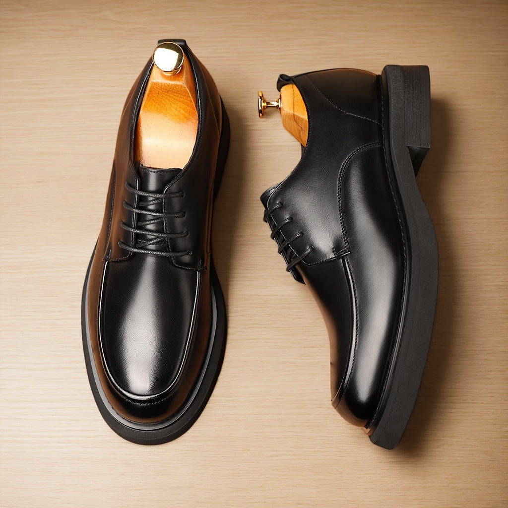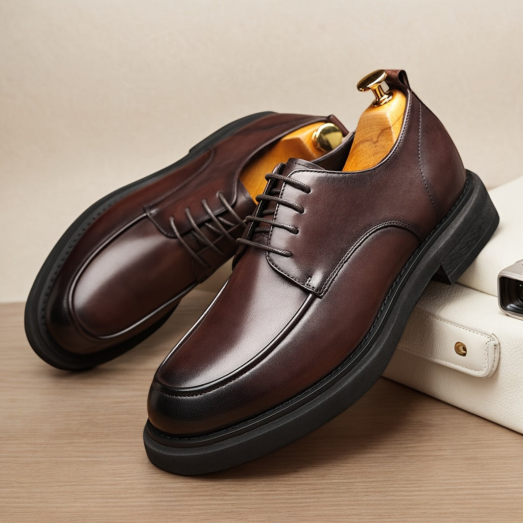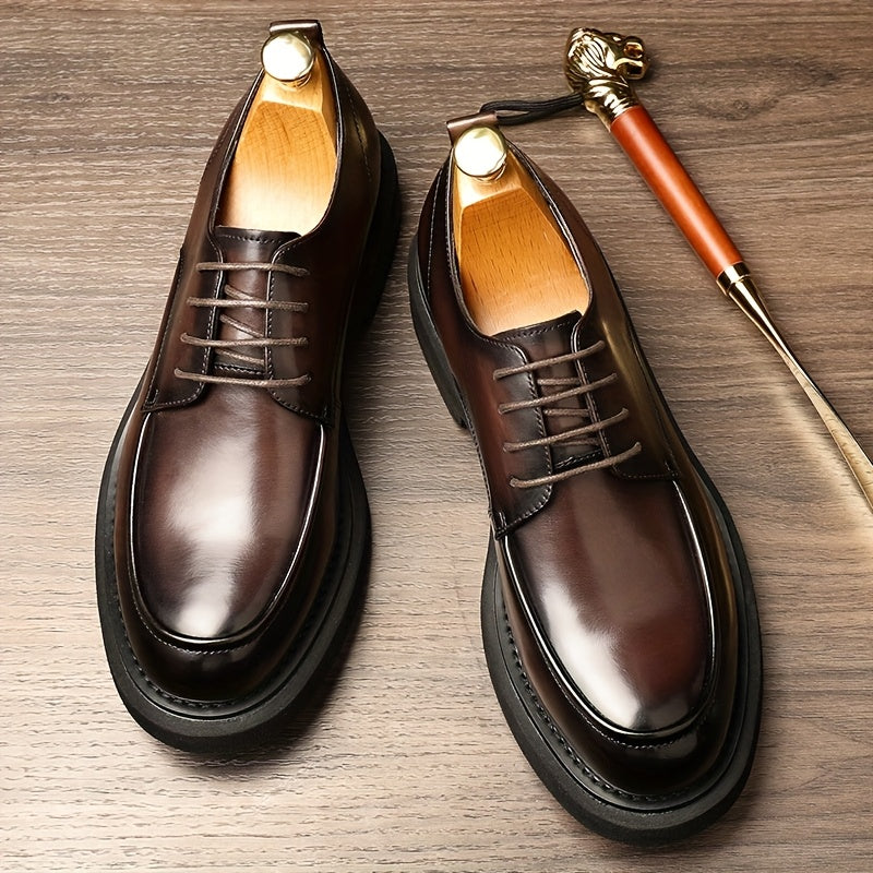 Men'S Classic Business Casual Set Of Leather Shoes, Large-size Derby Shoes, Available In Brown And Black. They Feature Lace-up Genuine Leather Uppers And Linings, Rubber Soles And Round Toes - Suitable For All Seasons.