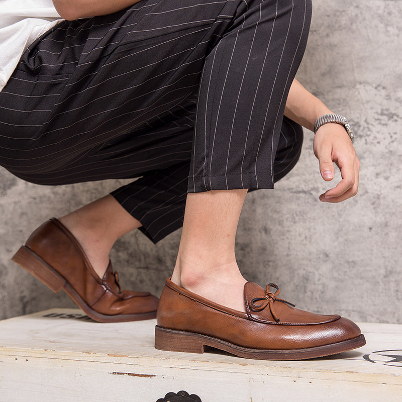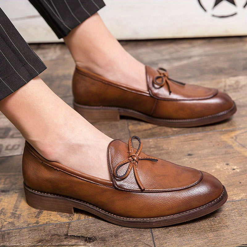 Men'S Classic Loafers, Solid Striped Plaid Pattern, Low Top Slip-On Dress Shoes for Business, Formal, Party, Wedding, Office, EVA Insole, Rubber Sole - Versatile Men'S Footwear