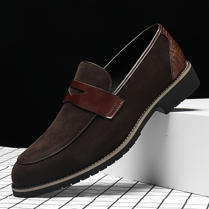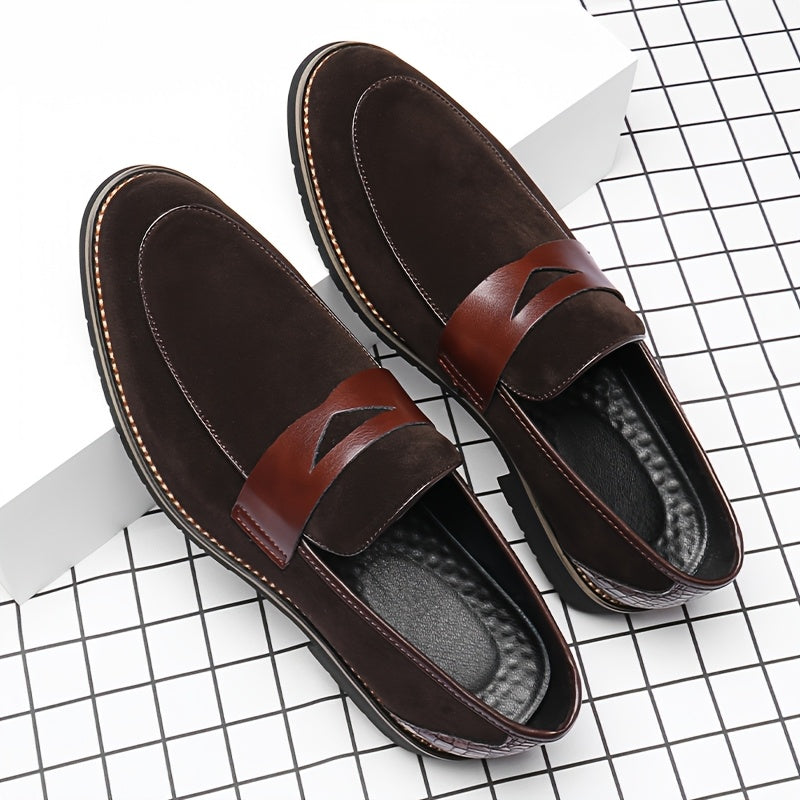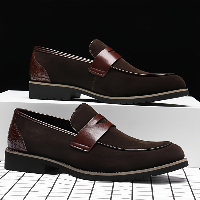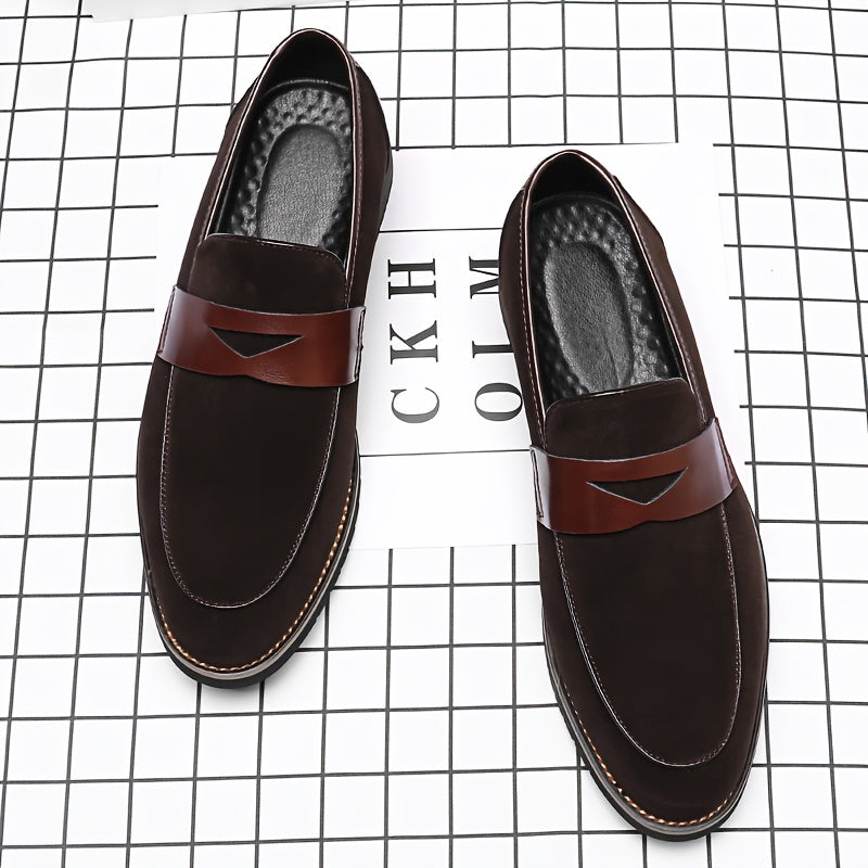 Men's Elegant Brown PU Slip-On Dress Shoes - Breathable, Non-Slip Rubber Sole Fashion Footwear for Every Season
