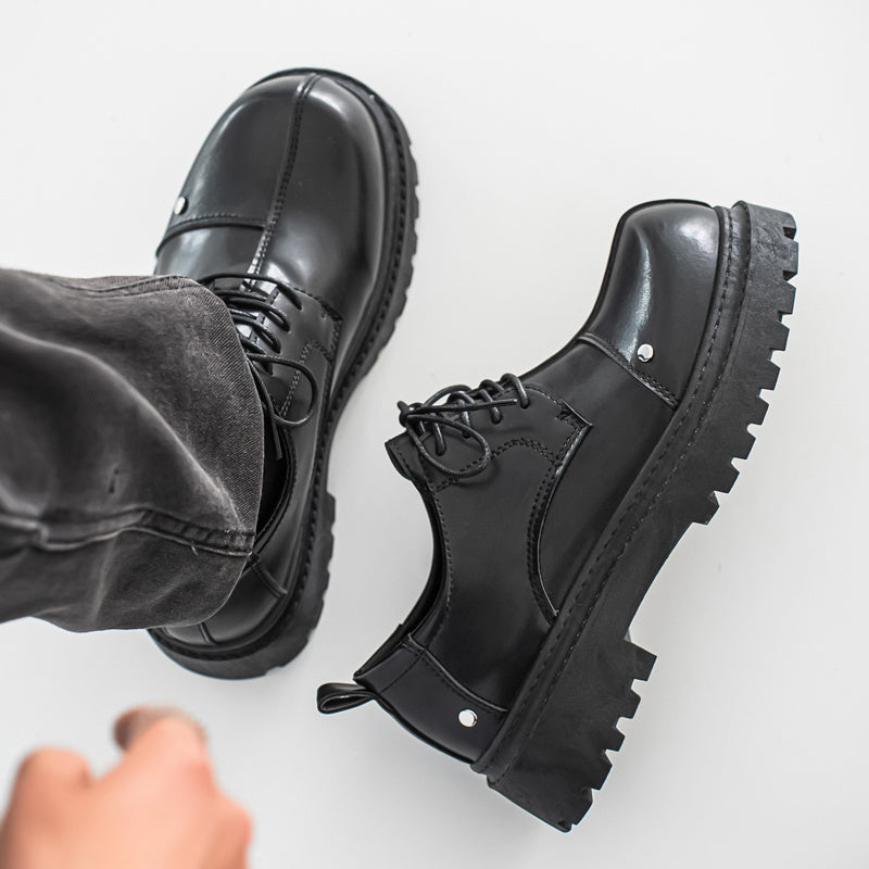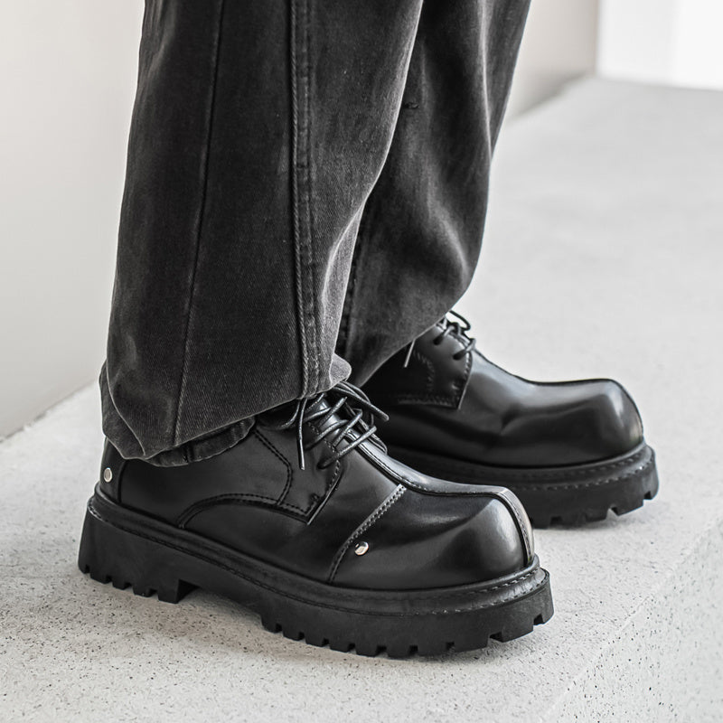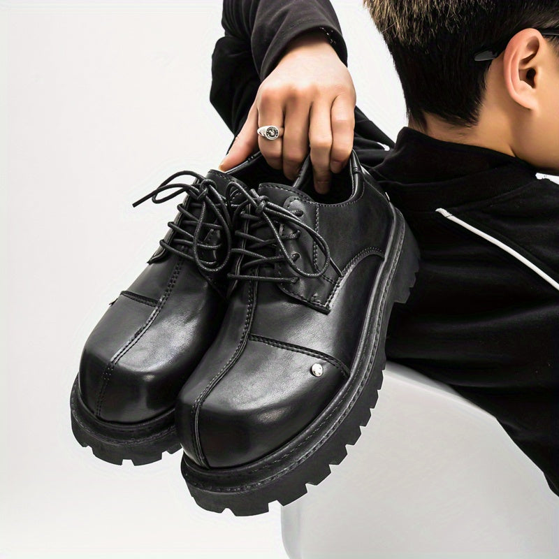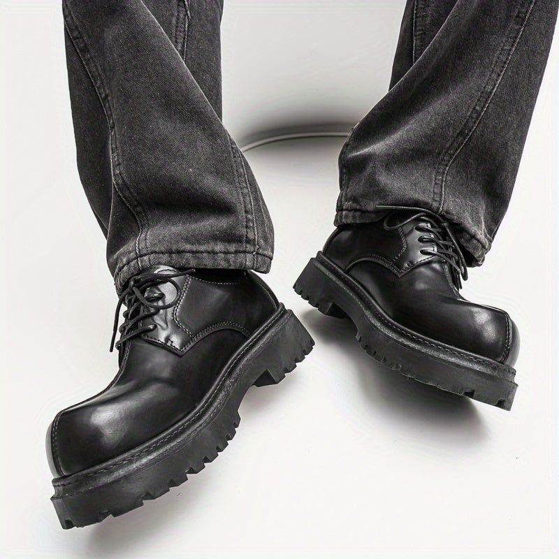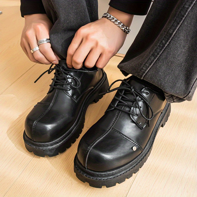 Men's Fashion Derby Shoes - Stylish Round Toe Lace-Up Oxfords with Thick Rubber Sole, Black Dress Shoes for Business or Casual Wear, Chunky Shoes