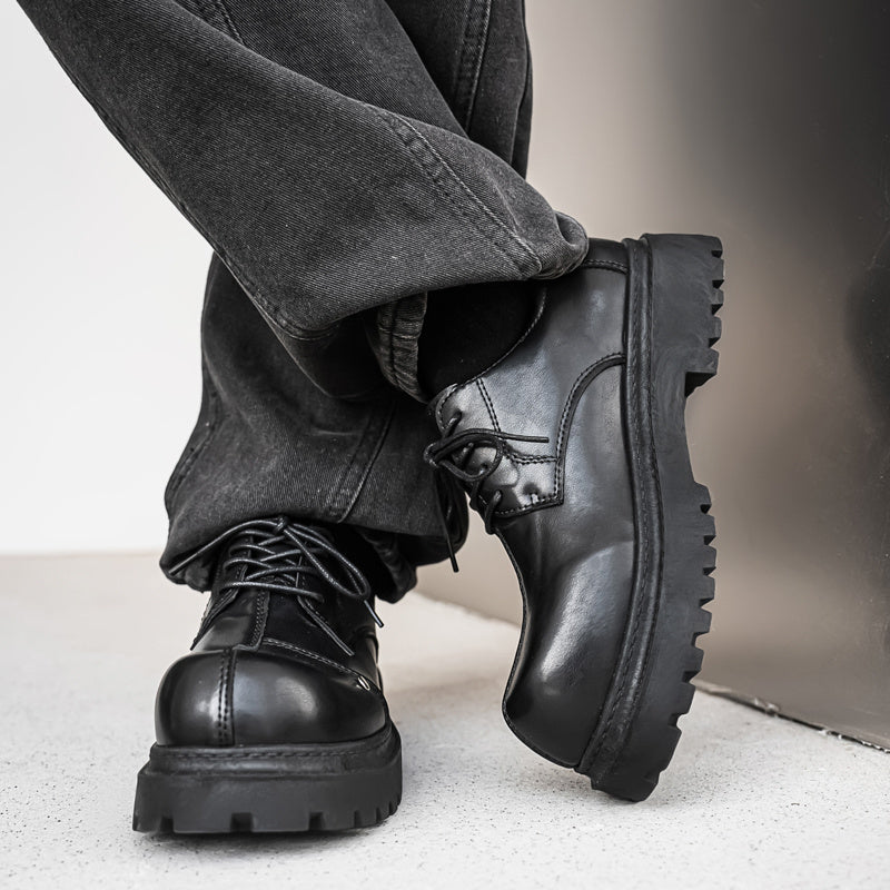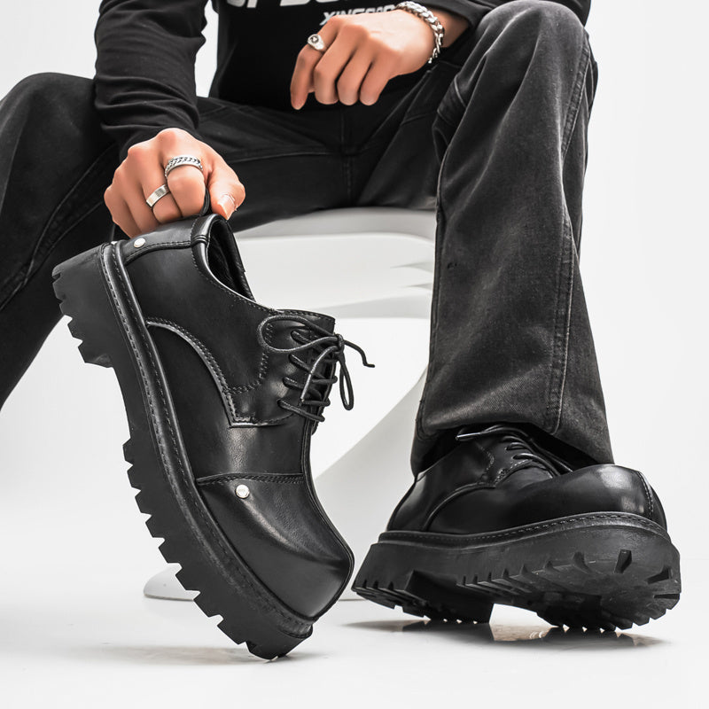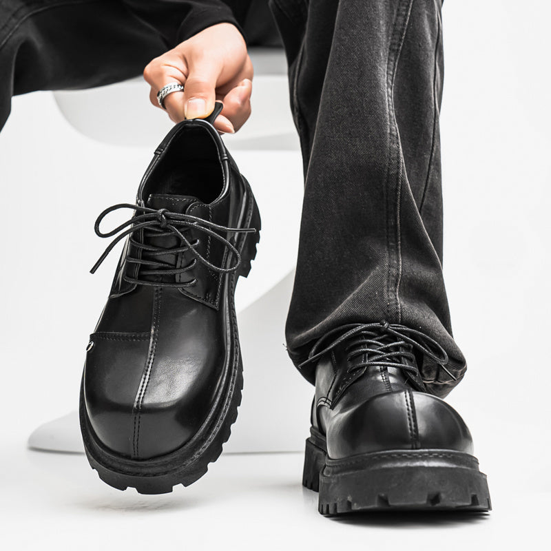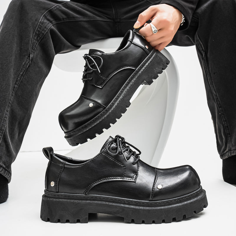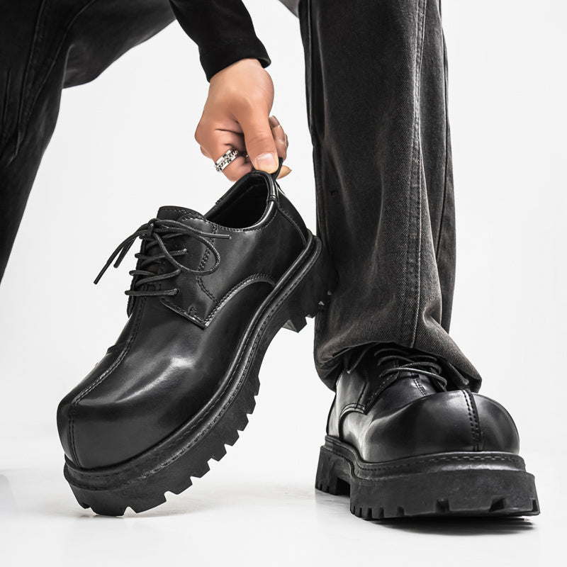 Men's Fashion Derby Shoes - Stylish Round Toe Lace-Up Oxfords with Thick Rubber Sole, Black Dress Shoes for Business or Casual Wear, Chunky Shoes