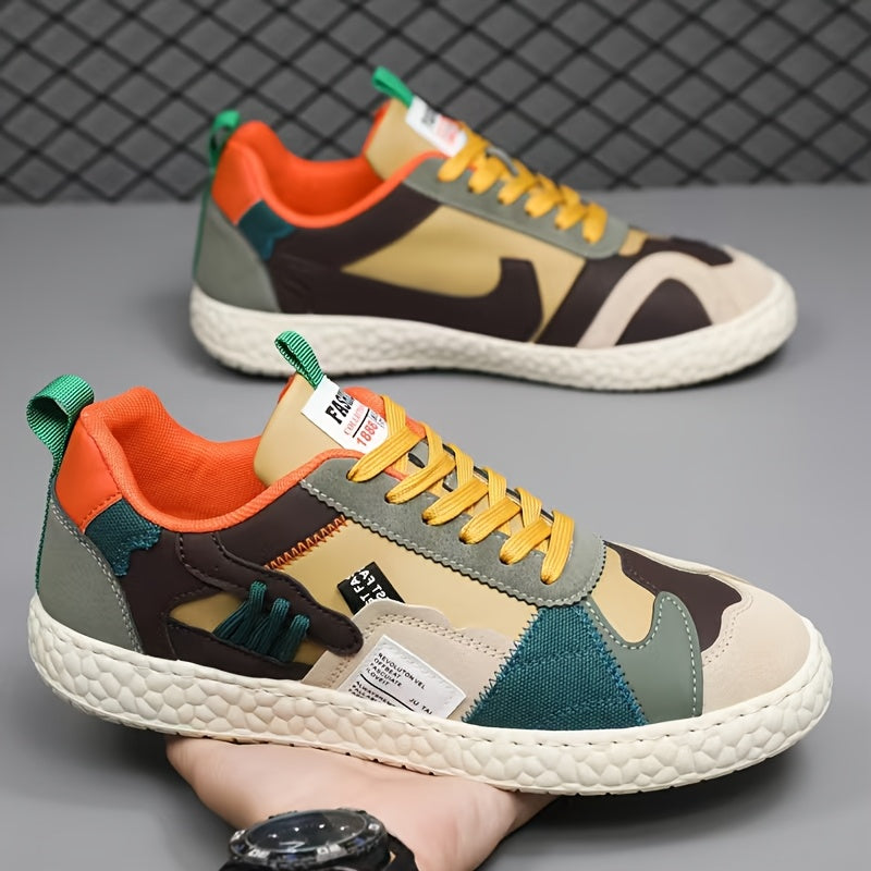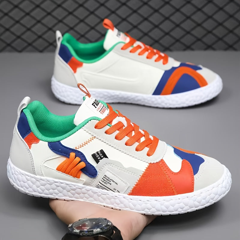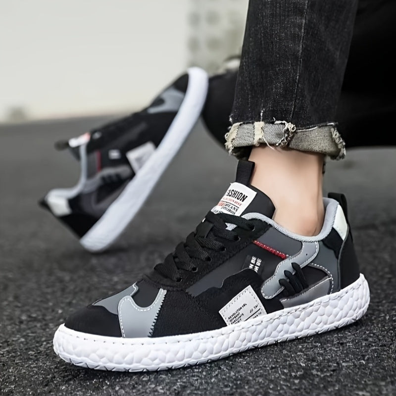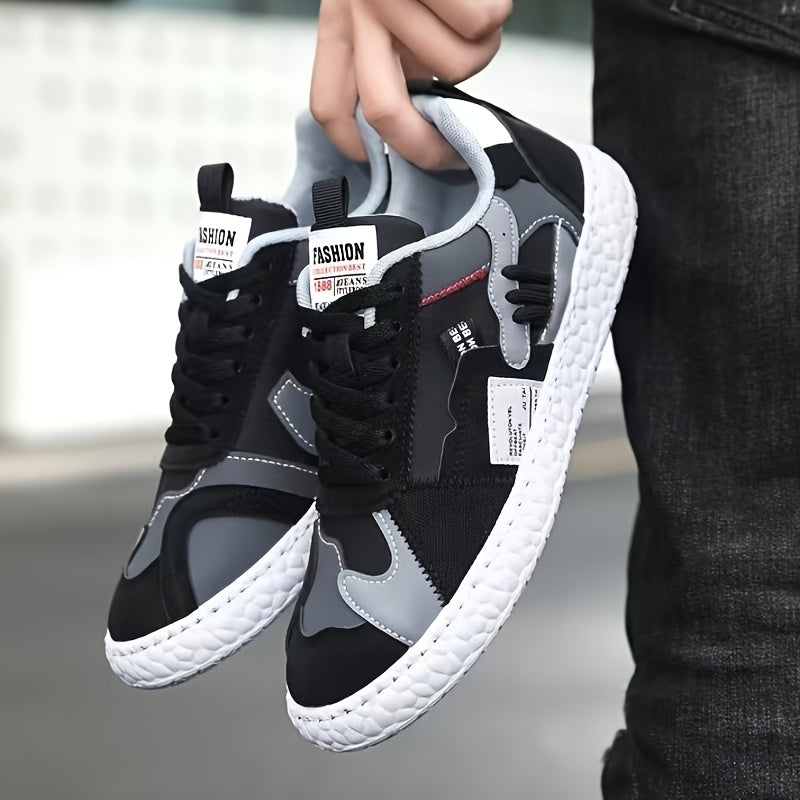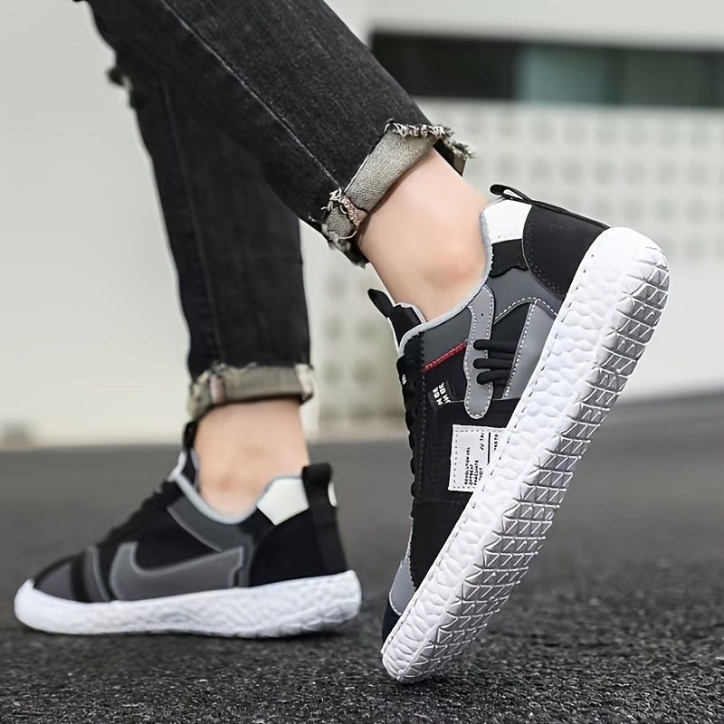 Men'S Fashion Sneakers - All-Season Low Top Lace-Up Casual Shoes with Microfiber Synthetic Upper, Fabric Inner, Rubber Sole, Round Toe - Solid Color Trendy Streetwear