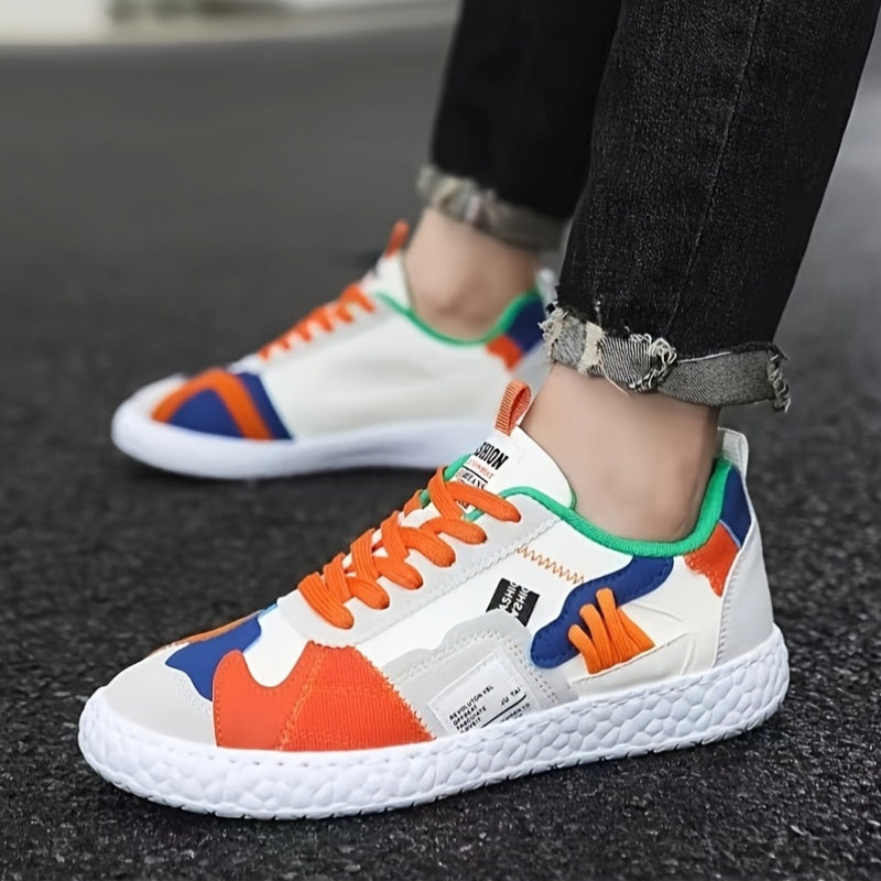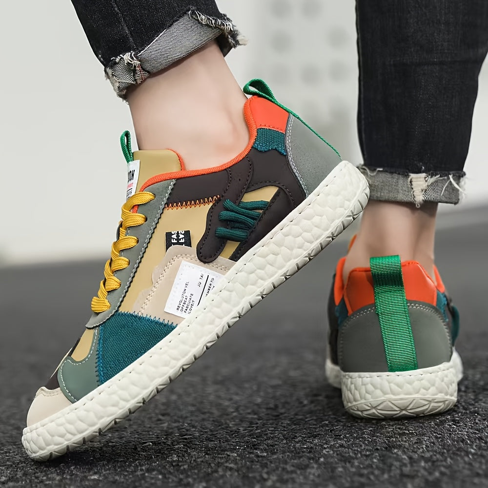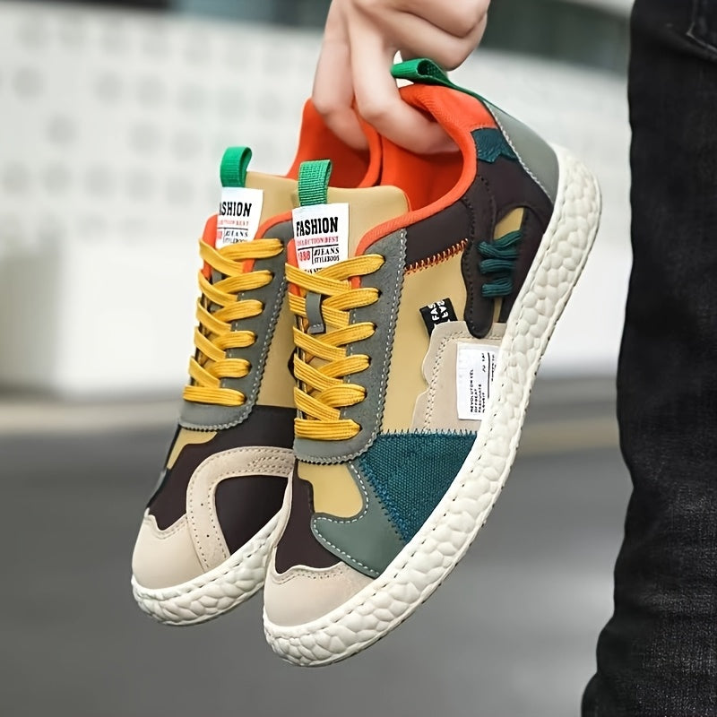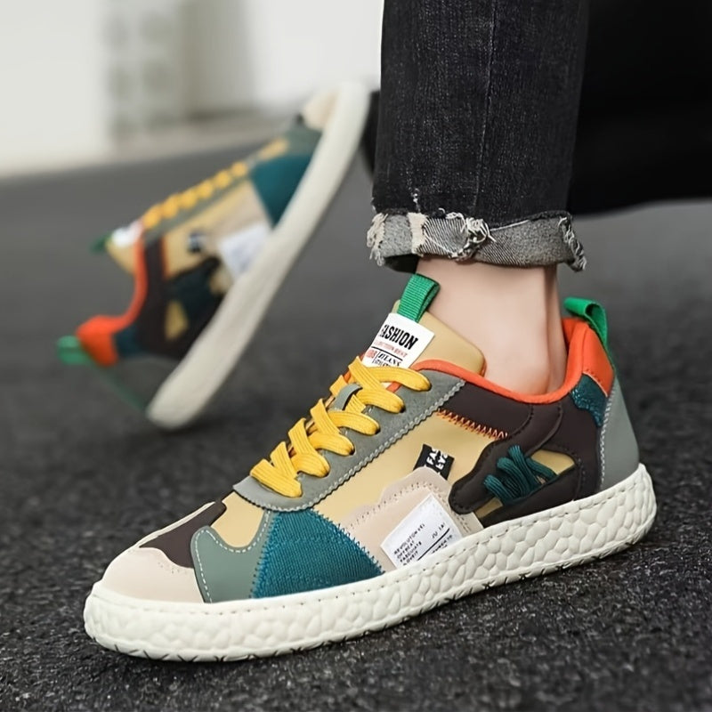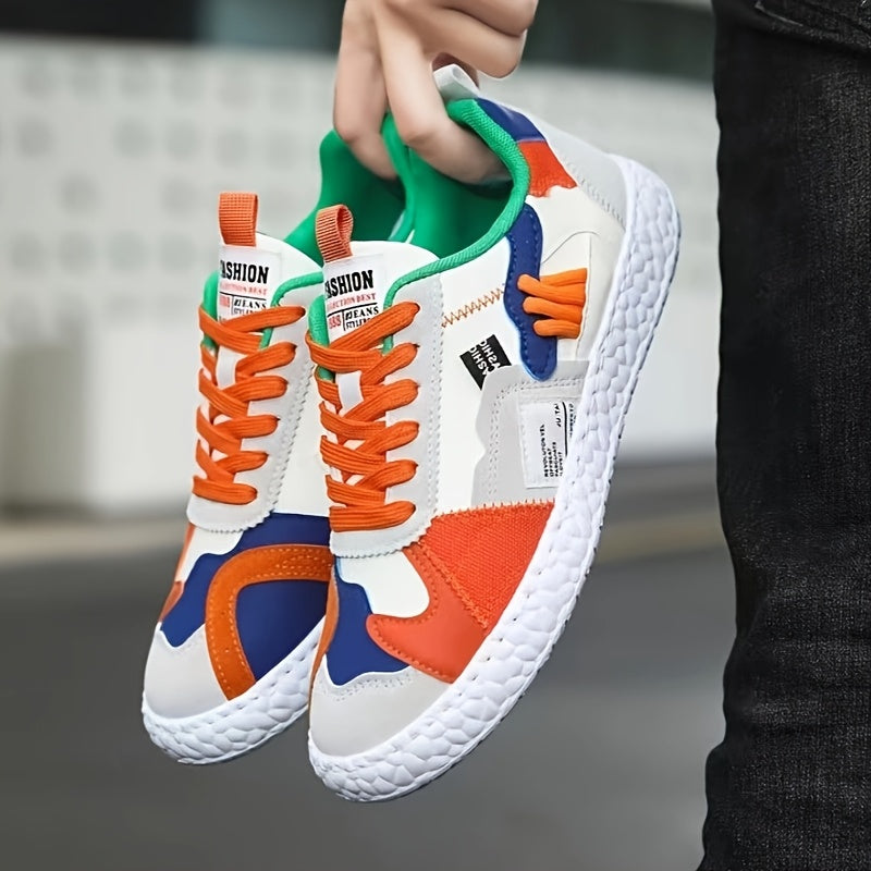 Men'S Fashion Sneakers - All-Season Low Top Lace-Up Casual Shoes with Microfiber Synthetic Upper, Fabric Inner, Rubber Sole, Round Toe - Solid Color Trendy Streetwear