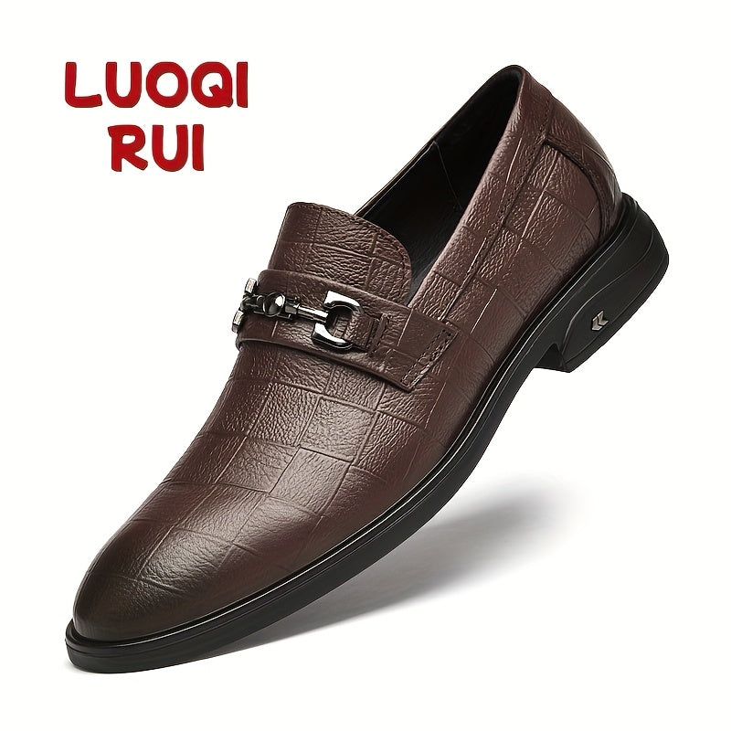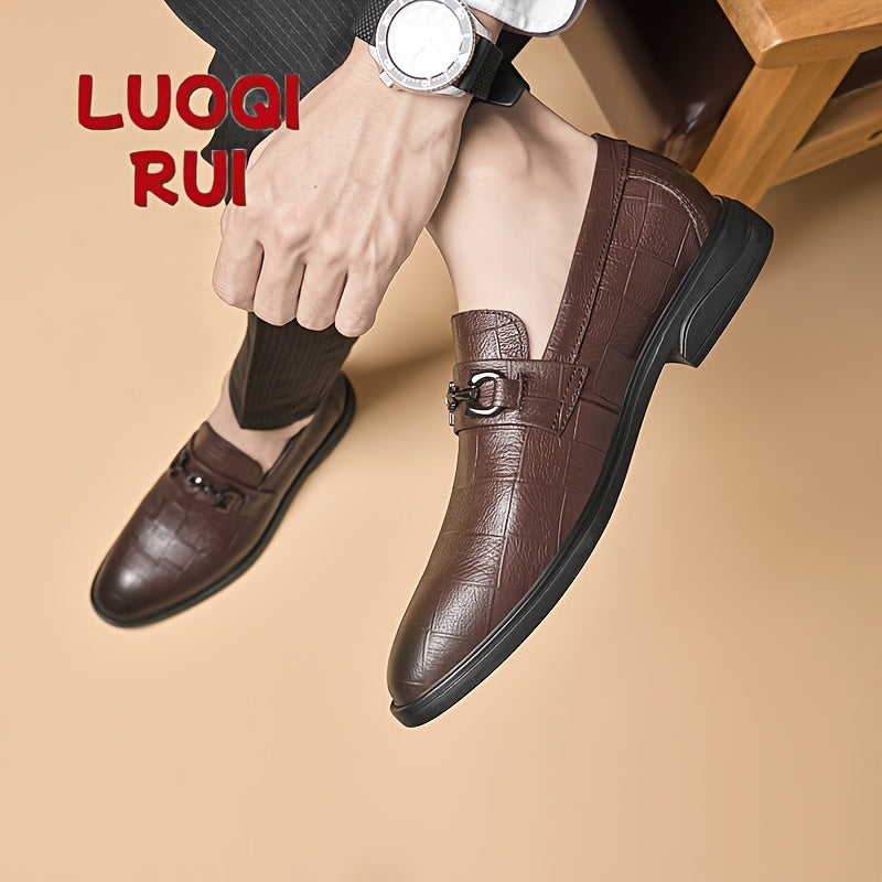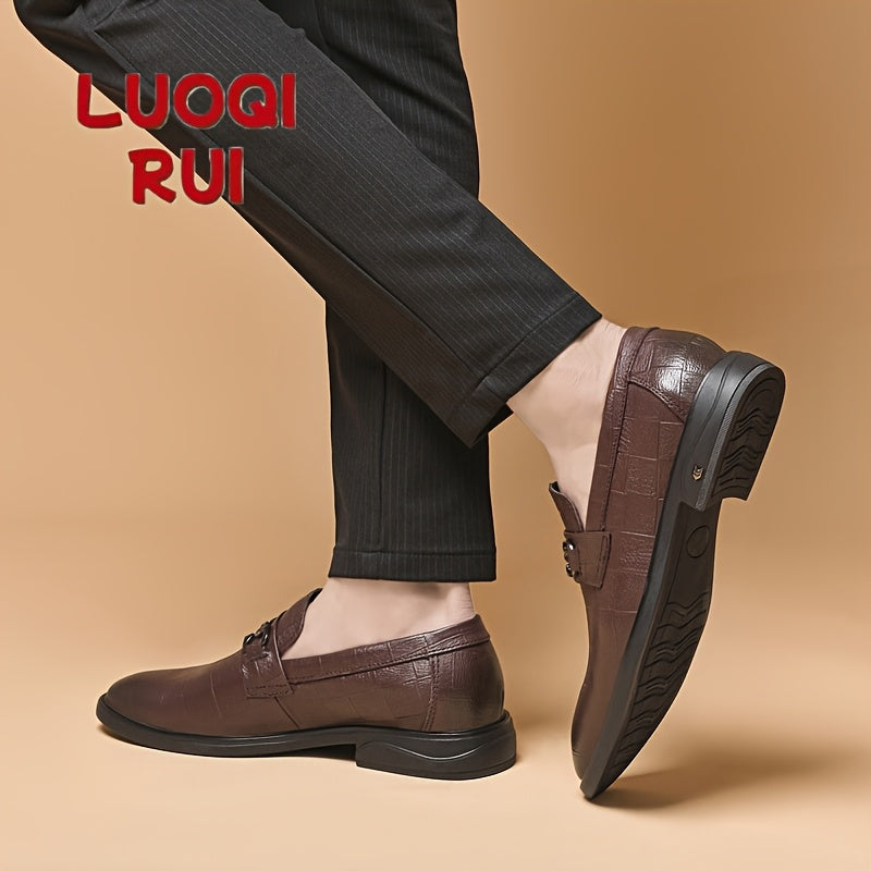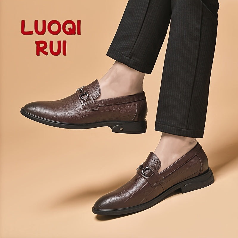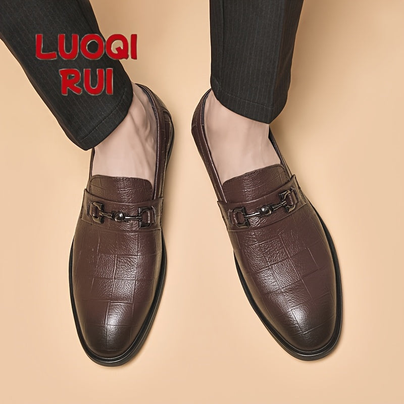 Men's Genuine Leather Dress Shoes, Pointed Toe, Embossed Crocodile Texture, Double Monk Strap, Slip-On Formal Loafers - Brown, Plus Sizes 47 & 46 Available, Outdoor Dress Shoes | Fashionable Dress Shoes | Durable Rubber Sole