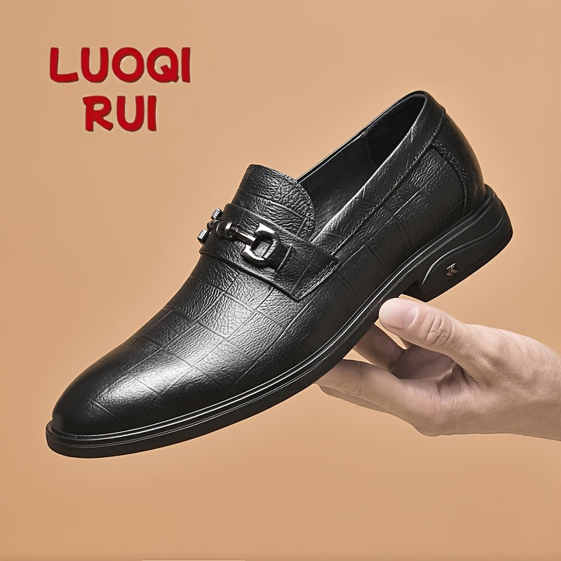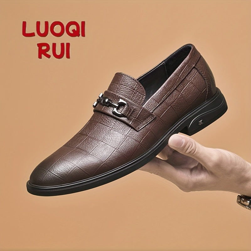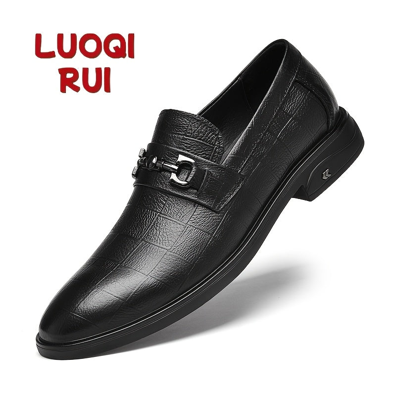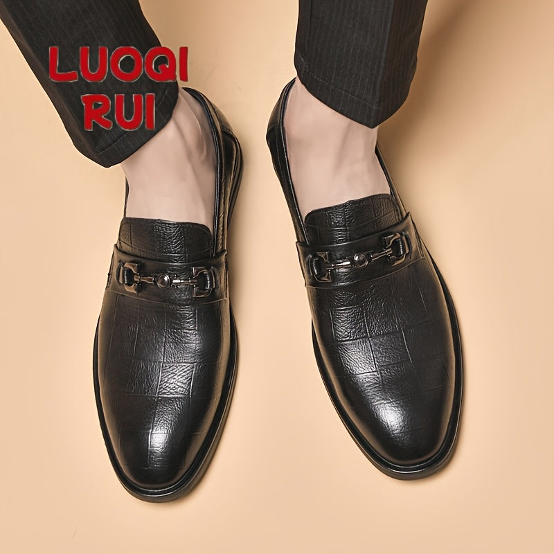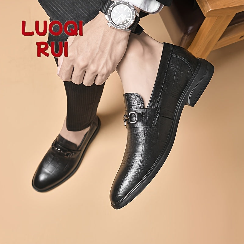 Men's Genuine Leather Dress Shoes, Pointed Toe, Embossed Crocodile Texture, Double Monk Strap, Slip-On Formal Loafers - Brown, Plus Sizes 47 & 46 Available, Outdoor Dress Shoes | Fashionable Dress Shoes | Durable Rubber Sole