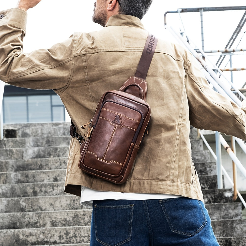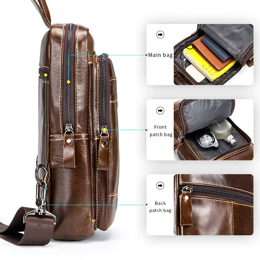 Men'S Genuine Leather Sling Bag Chest Bag Shoulder Bag Crossbody Backpack For Men Women Travel Outdoor Sports Bag Satchel Backpack