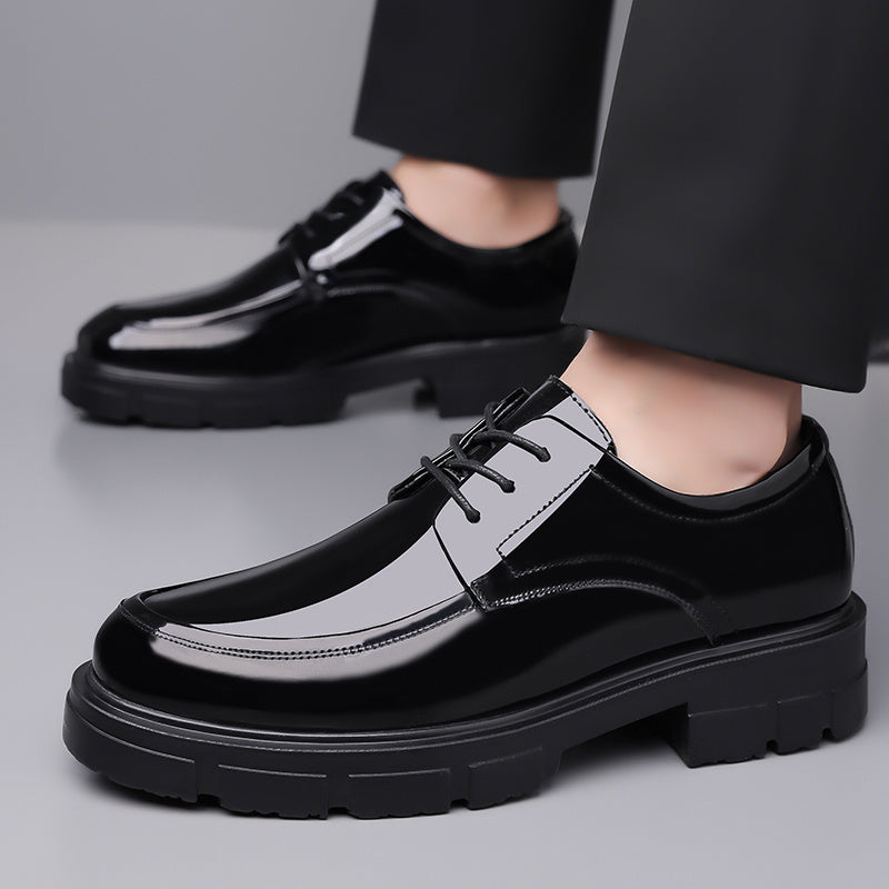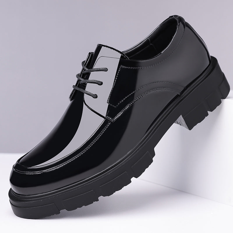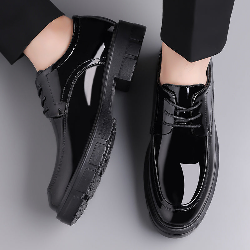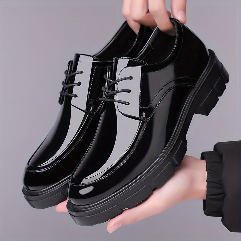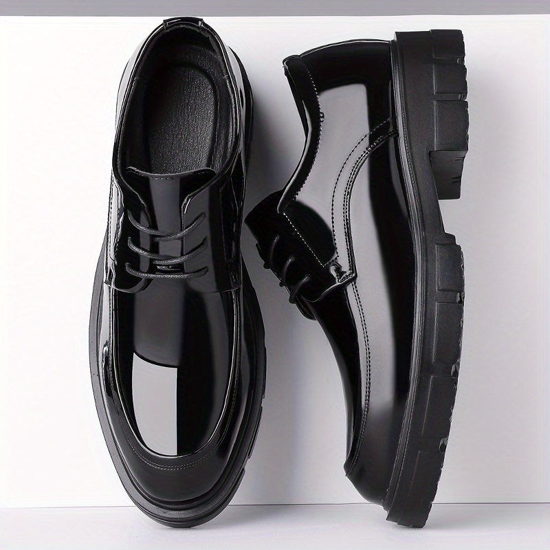 Men's Glossy Business Casual Shoes - Slip-On/Lace-Up Closure, EVA/PU Upper & PU/Rubber Sole, Mid-Top Round Toe - Lightweight Office, Formal Events, Everyday - All-Season Formal Footwear for Professionals - Sleek & Sturdy Men's Dress Shoes, Professional Sh