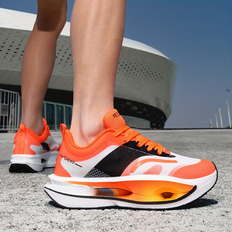 Men'S High-Quality Carbon Plate Running Shoes - Breathable Mesh Upper, EVA Sole, Lace-Up, Round Toe, Casual Sneakers for All Seasons