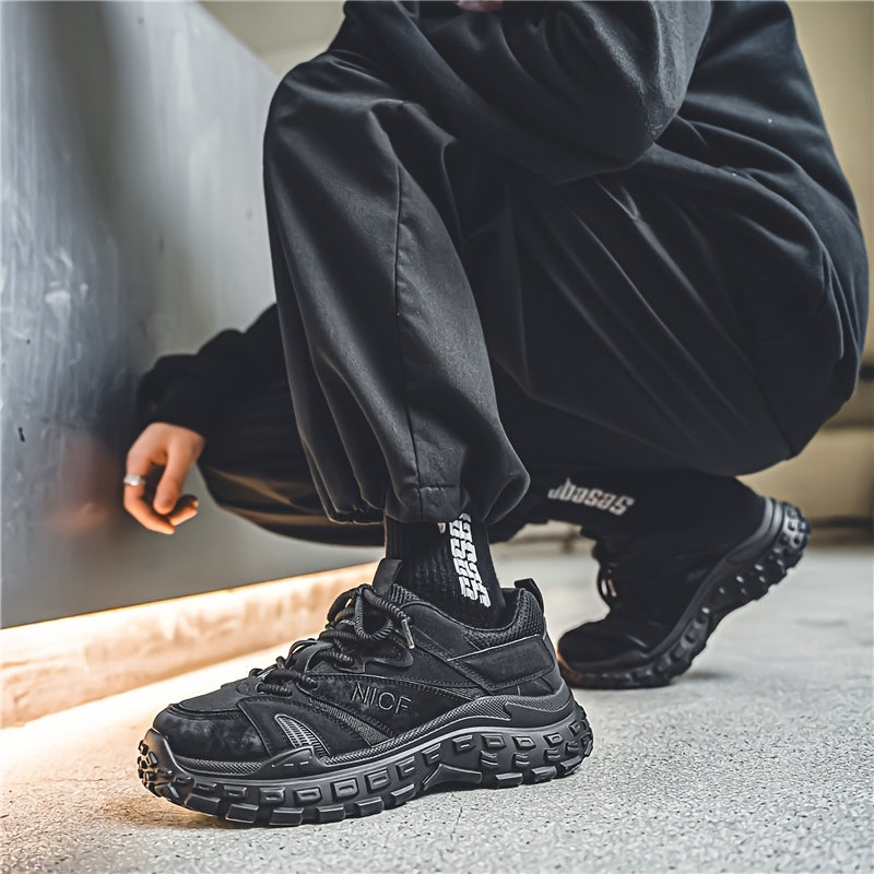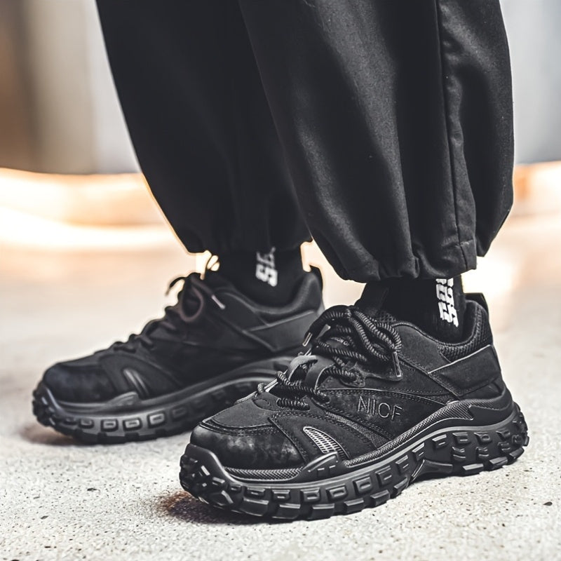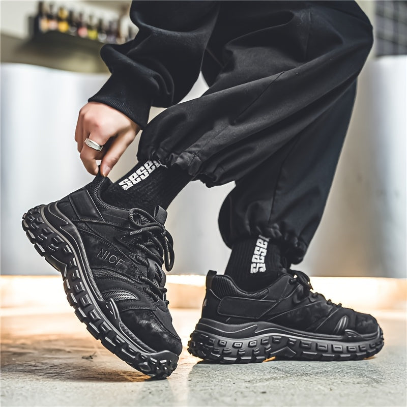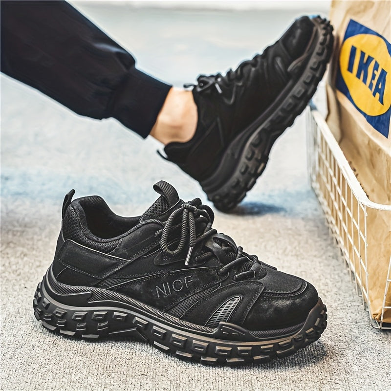 Men'S High-Quality Fashion Sneakers - Versatile Sports & Casual Shoes, Black with White Accents, Lace-Up, Rubber Sole, Comfortable Fit for Casual Attire and Outdoor Activitie