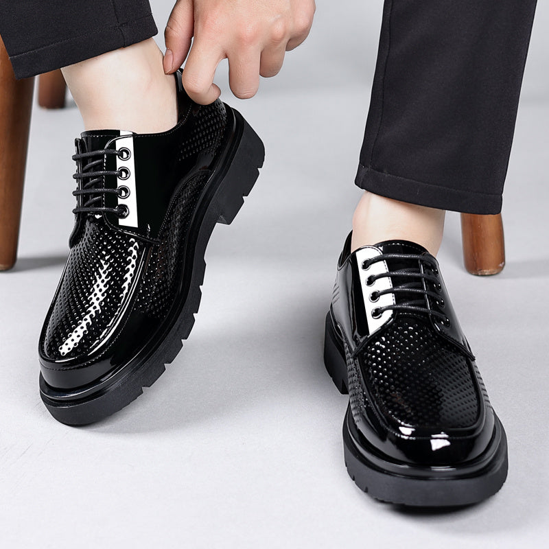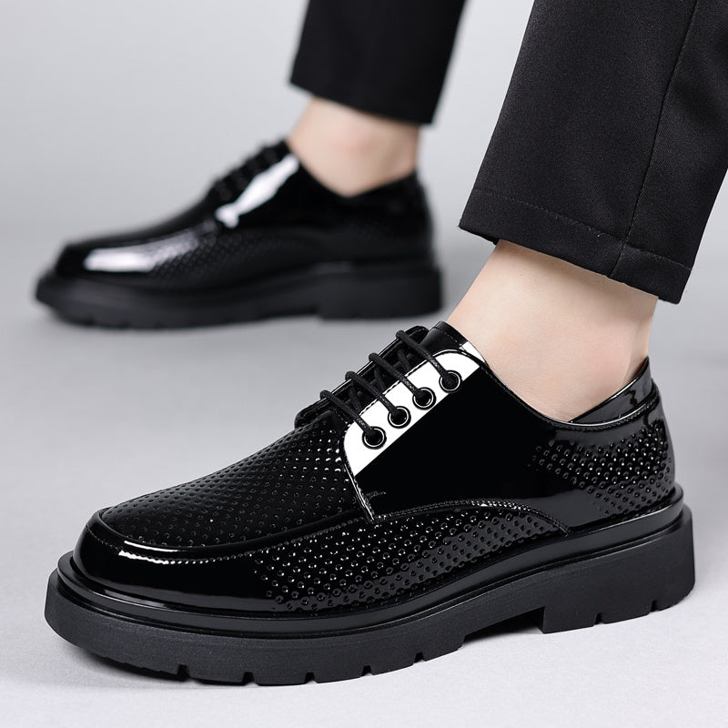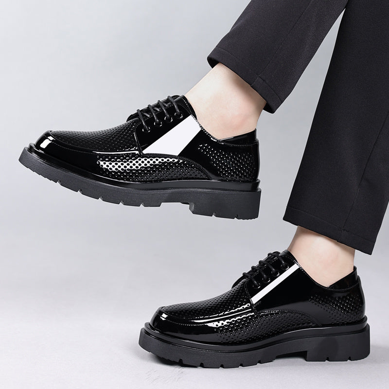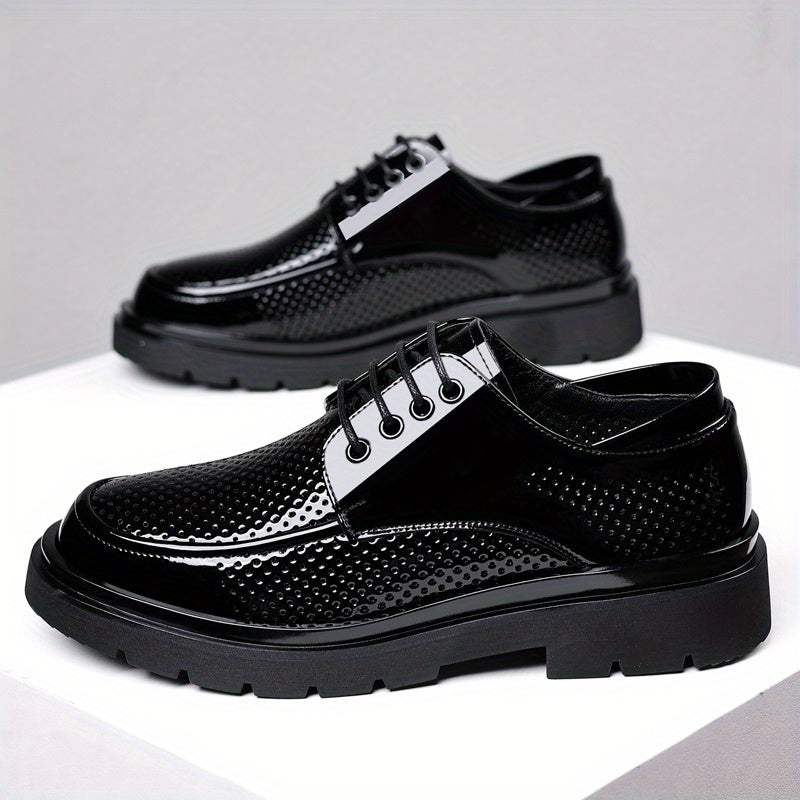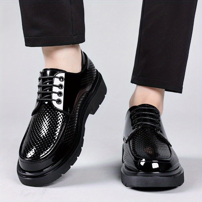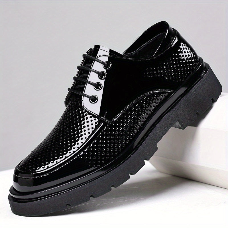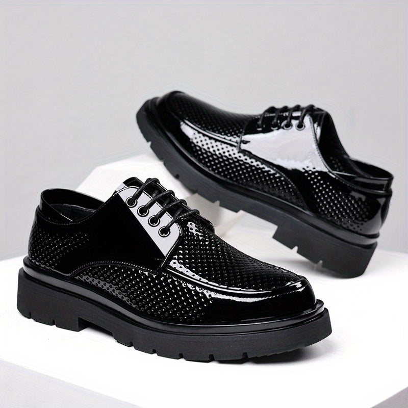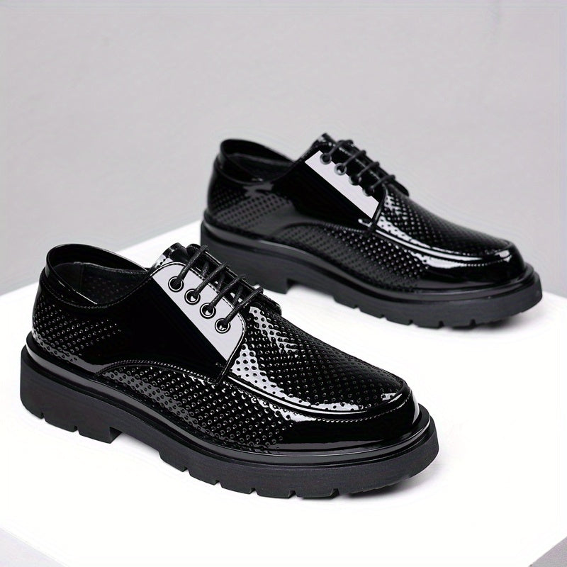 Men's High-Shine Lace-Up Formal Footwear, Fine Dotted Textured Upper with Unique Contrast Eyelet Area Design, Paired with a Modern Thick Sole, a Dazzling Choice for Weddings, Parties, and Business Banquets.
