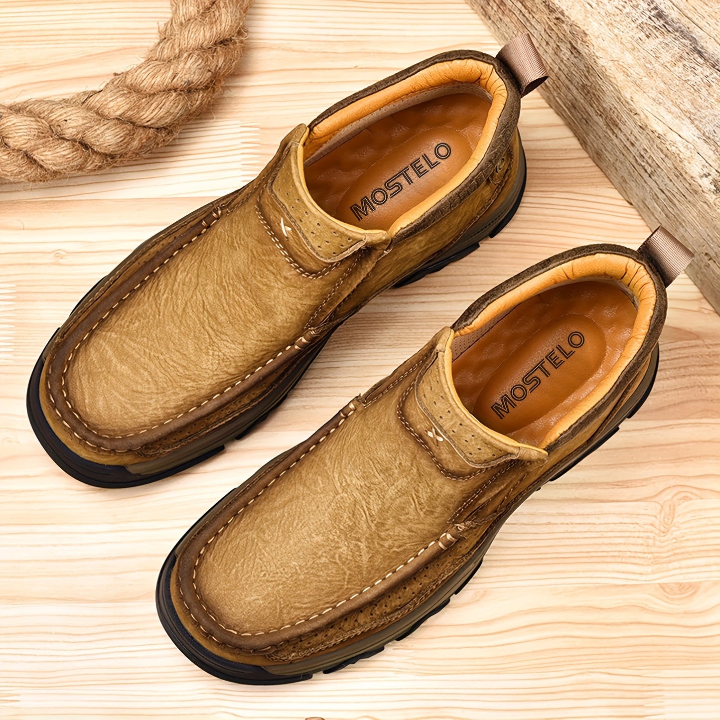 Men's High-Top Leather Loafers - Classic Slip-On Casual Shoes for Outdoor, Hiking & Casual Attire, Comfortable Genuine Leather Upper with Non-Slip Rubber Sole, Casual Footwear | Slipon Loafers | Durable Rubber Sole