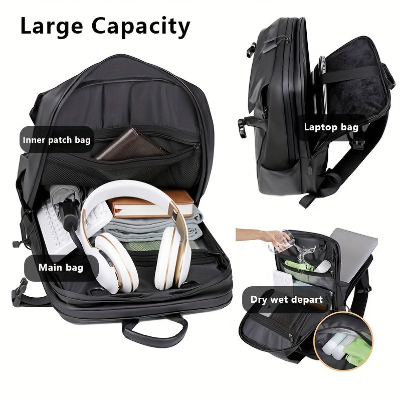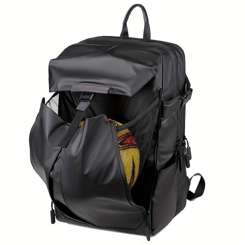 Men's Large Capacity Backpack - Casual Travel & Business Laptop Bag with Adjustable Straps, Multiple Compartments, and Mesh Bottom for Basketball & Everyday Use