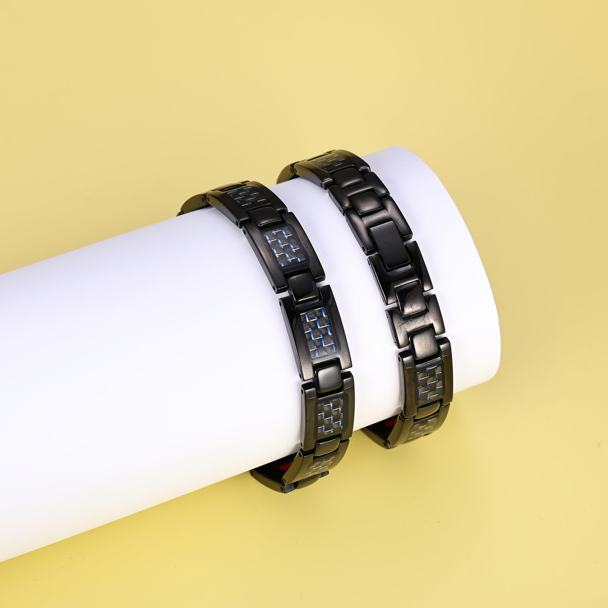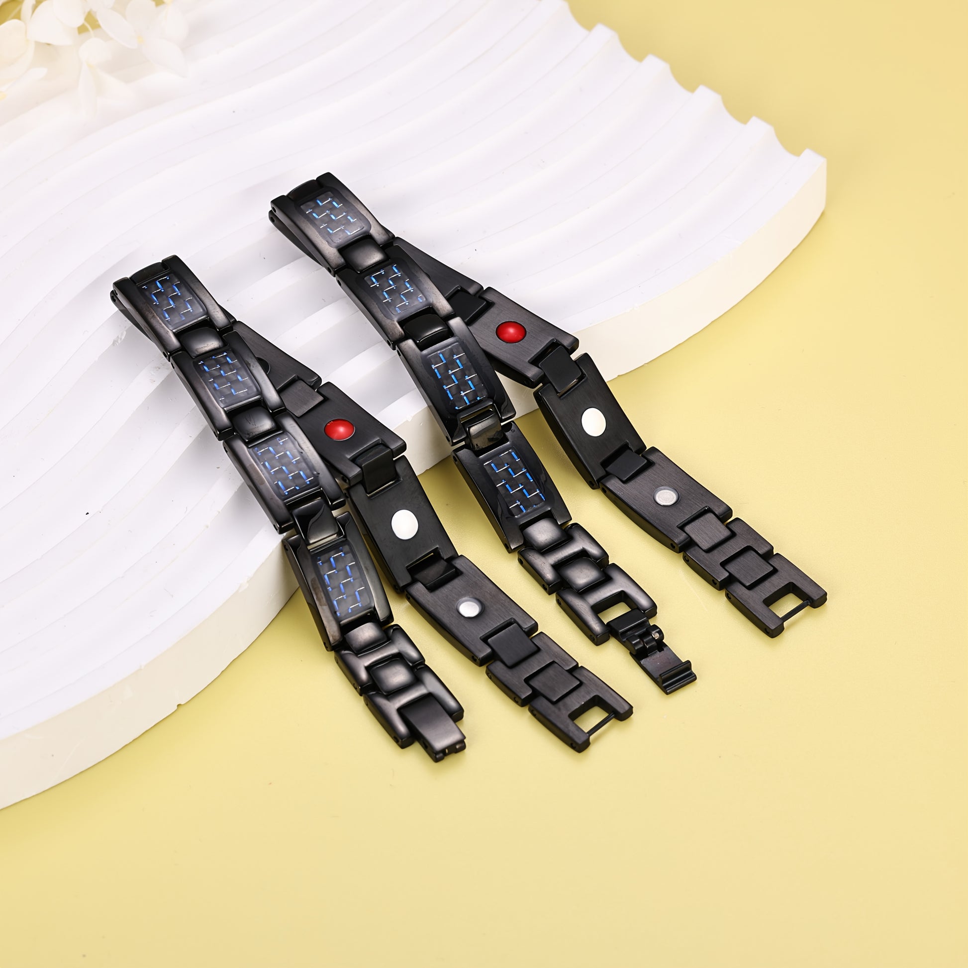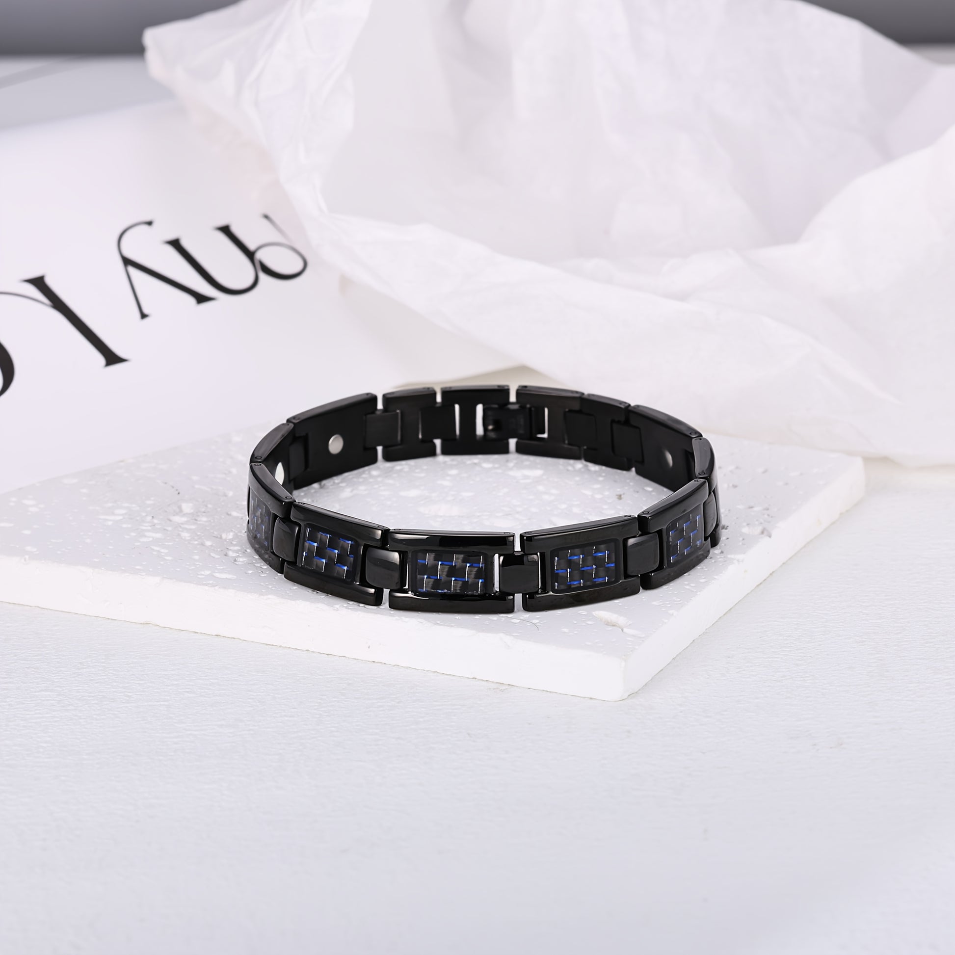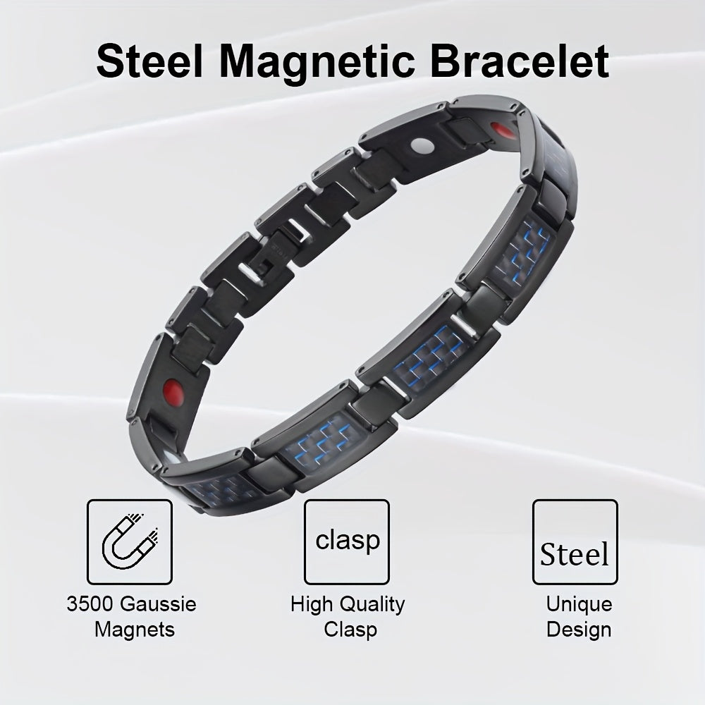 Men's Magnetic Bracelet - Stainless Steel Magnetic Clasp, Modern Black with Blue Accents, for Gym, Office, Casual Attire - Ideal Gift for Him - Magnetic Jewelry for Men, Office Accessory, Contemporary Accessory, Premium Accessory, Fitness Enthusiasts