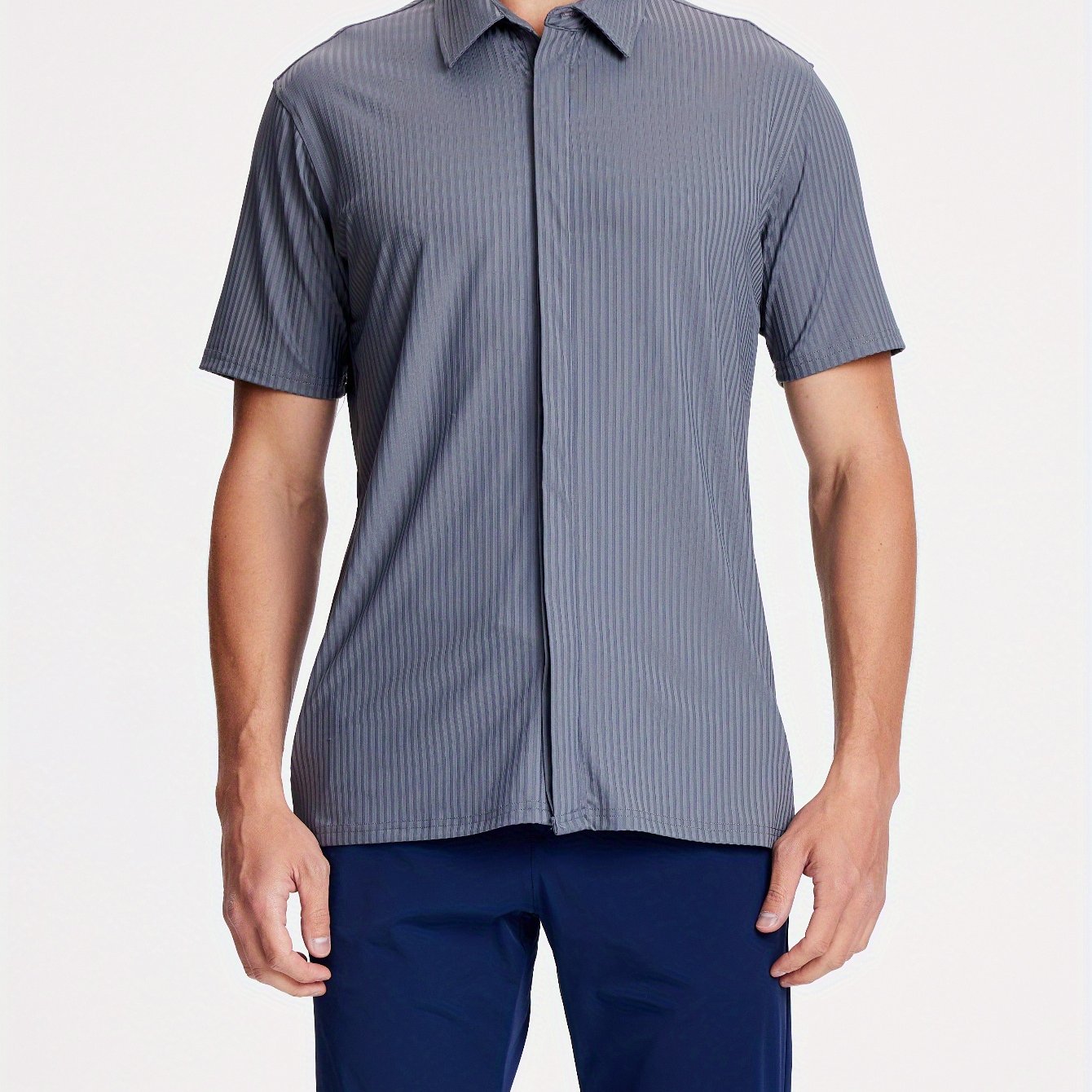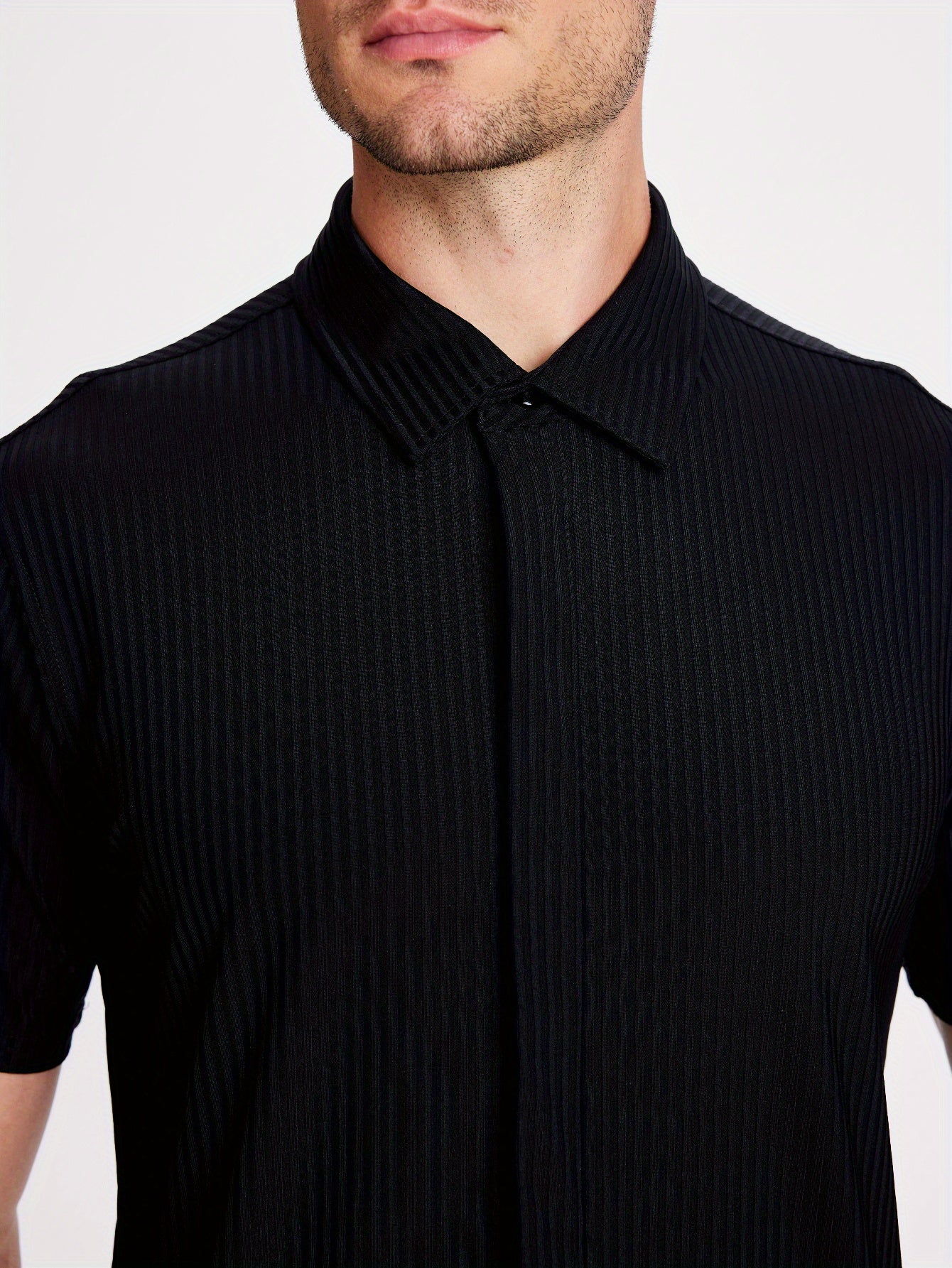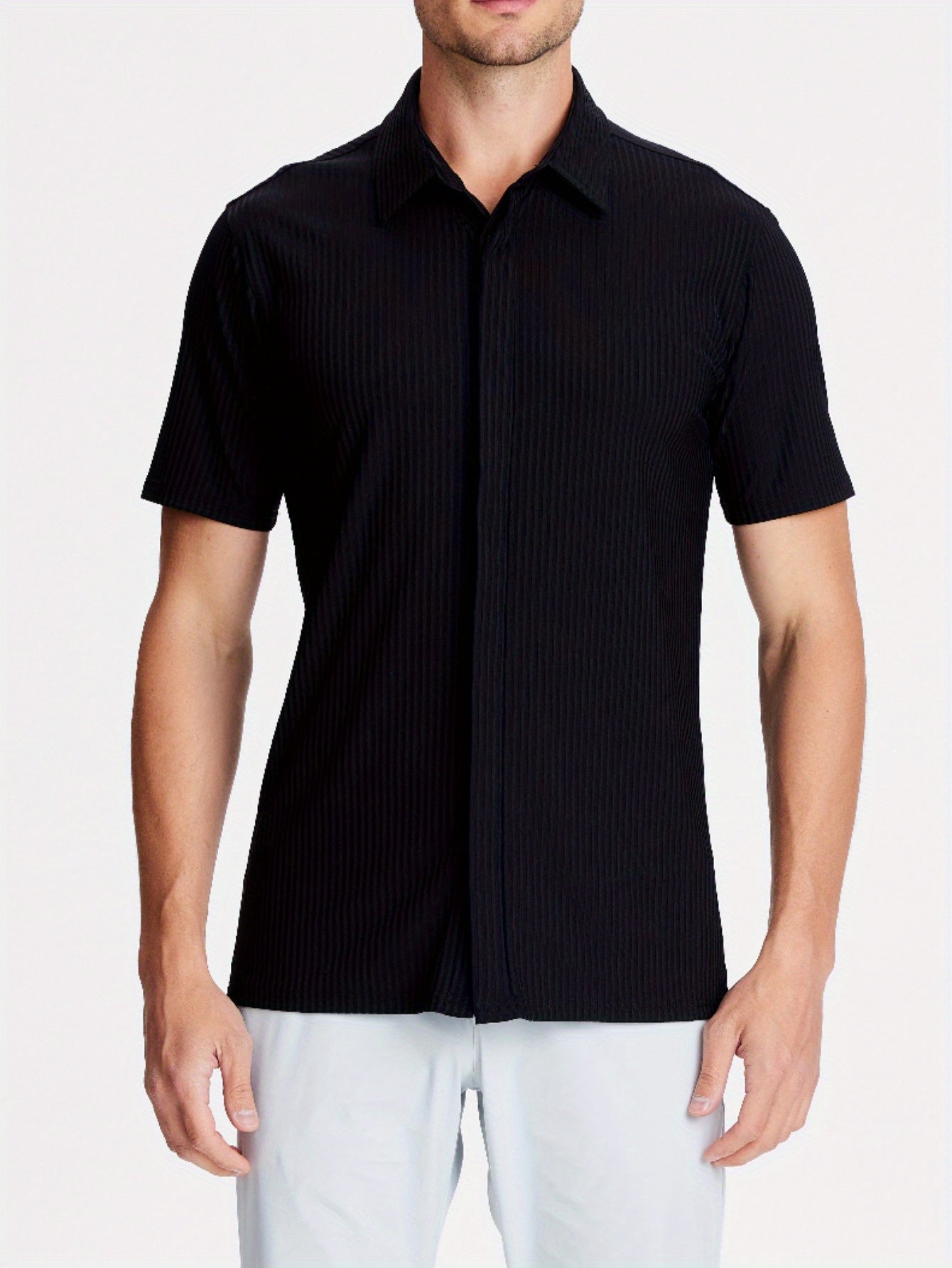 Mens Nylon Dress Shirts 8-Way Stretch Wrinkle Free Moisture Wicking Ribbed Knitted Shirt for Men