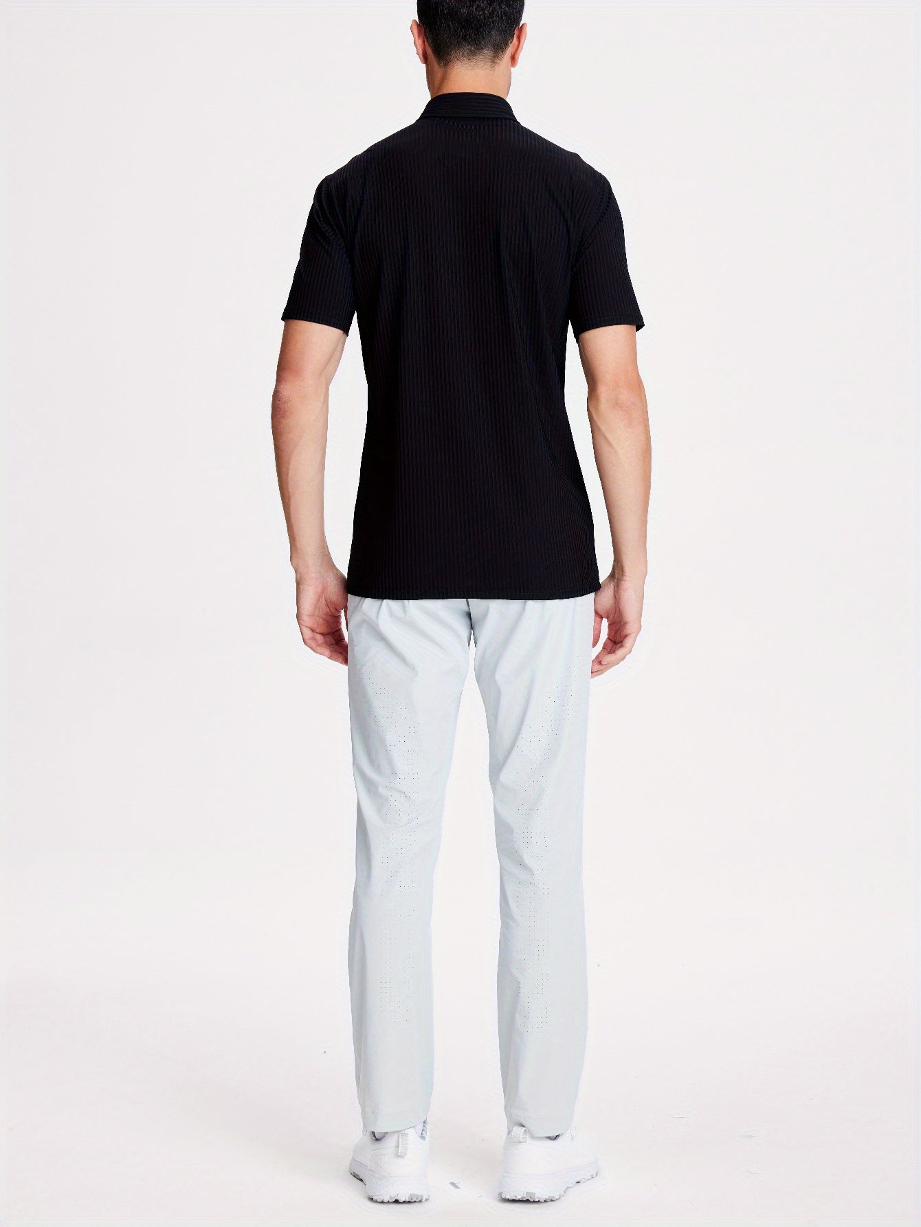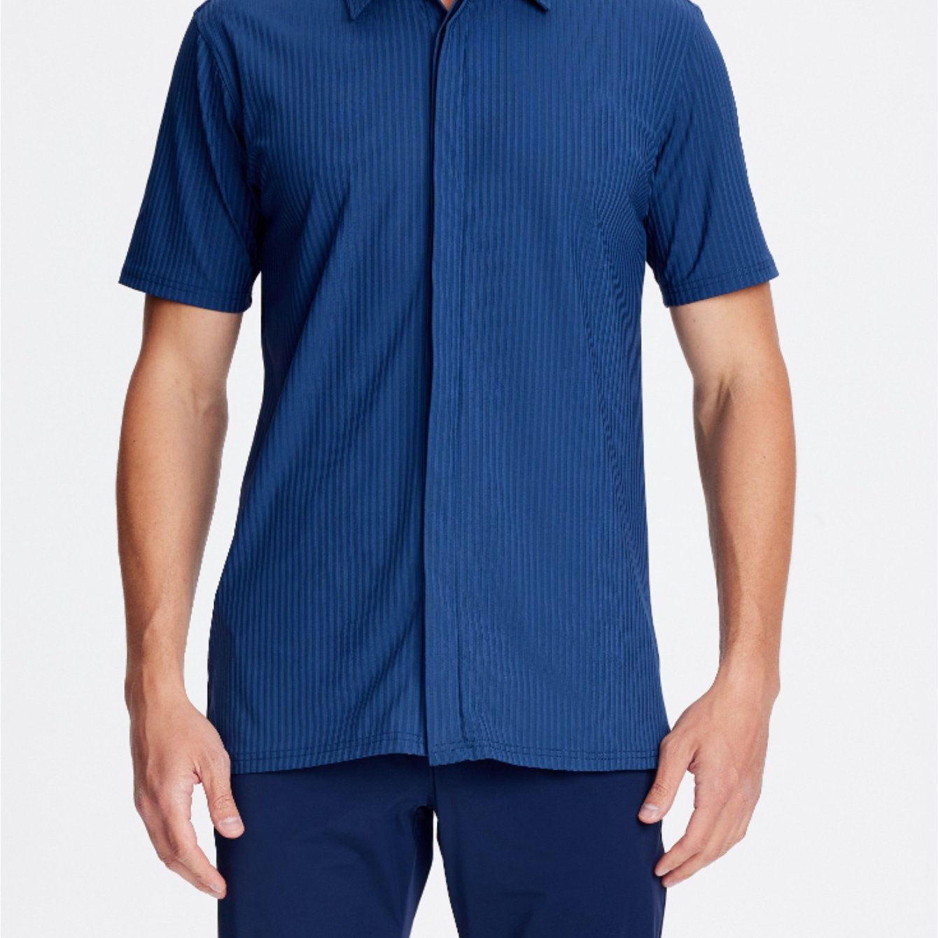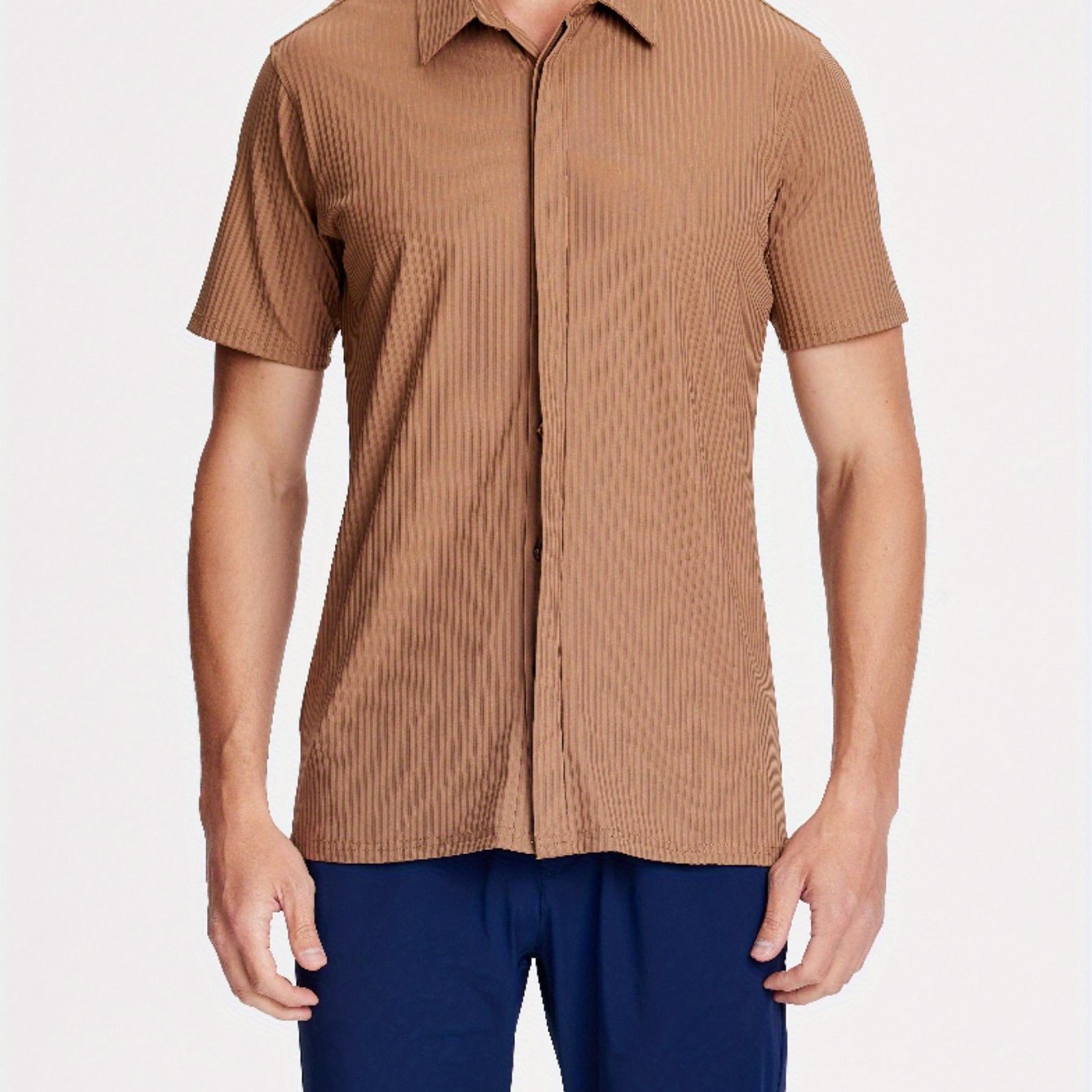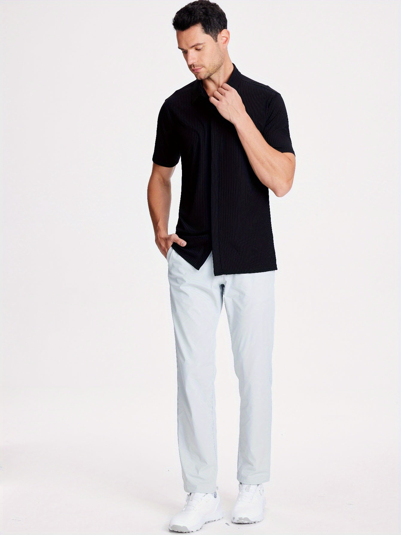 Mens Nylon Dress Shirts 8-Way Stretch Wrinkle Free Moisture Wicking Ribbed Knitted Shirt for Men