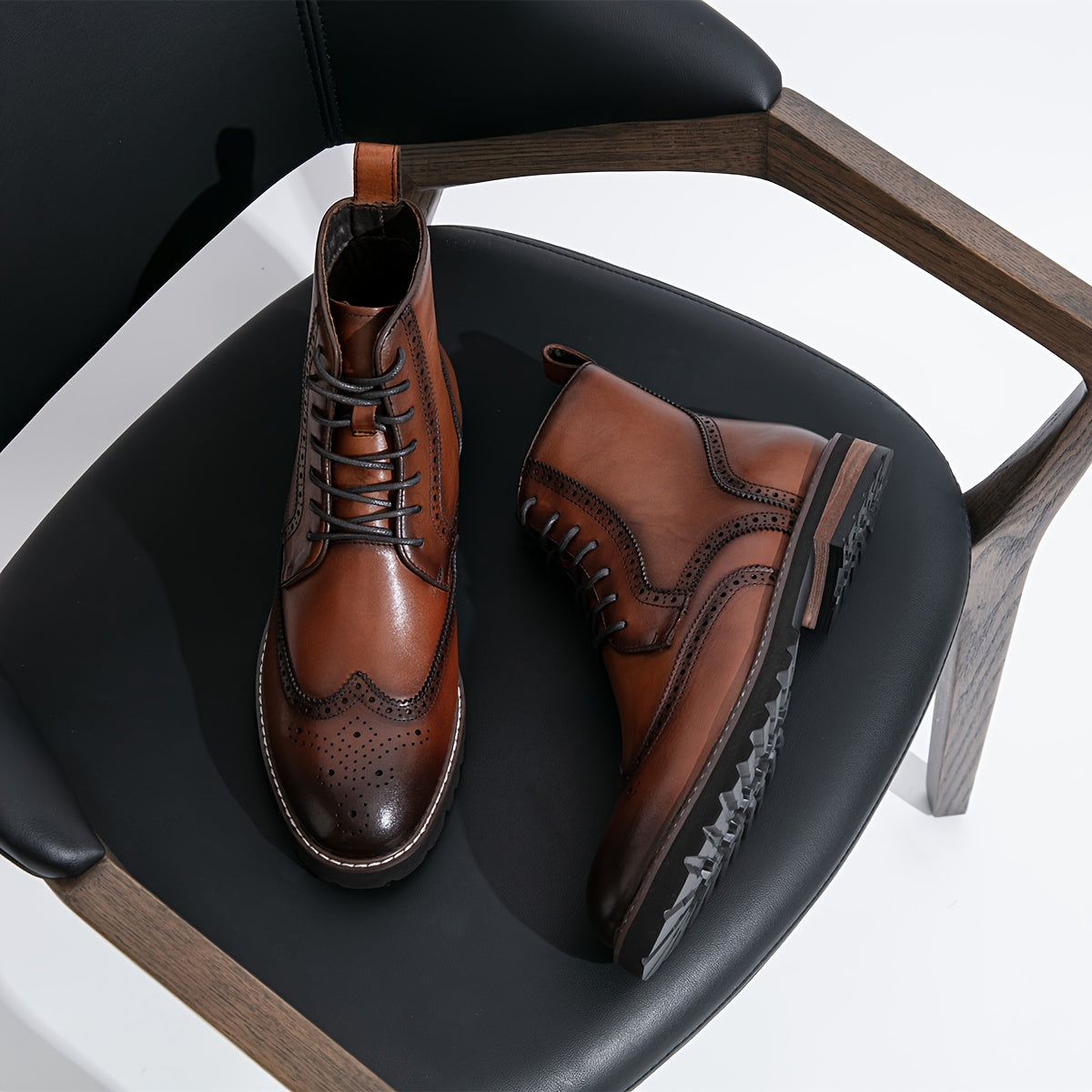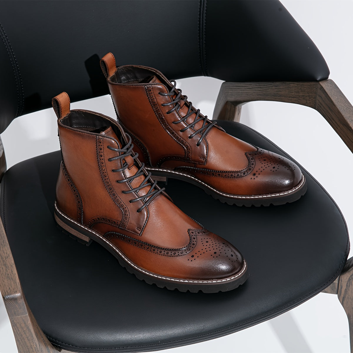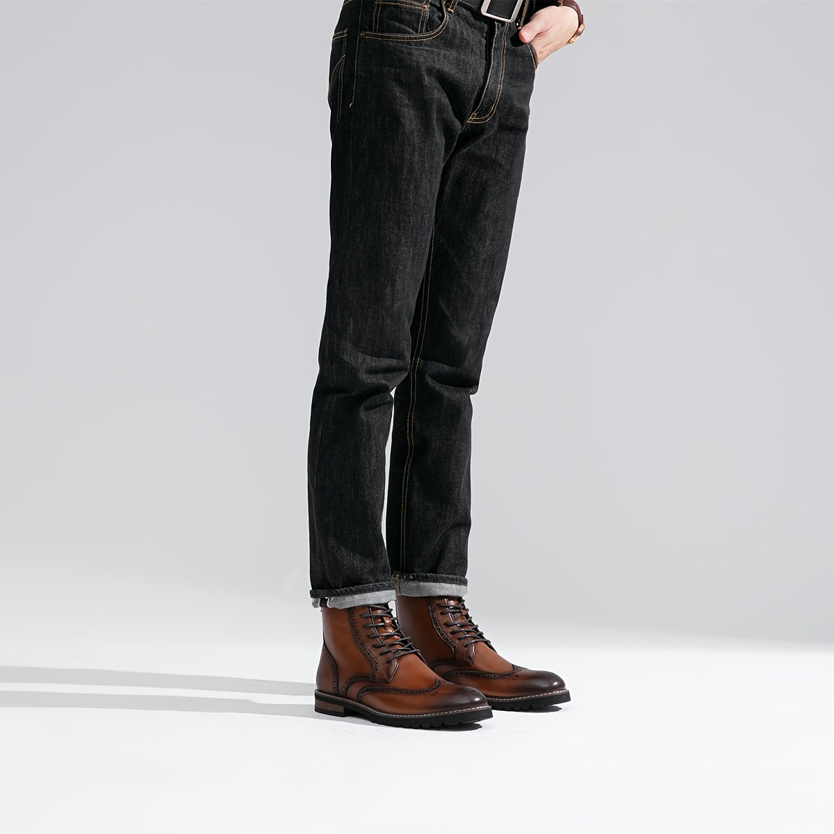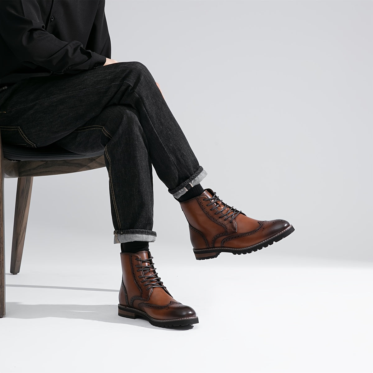 Mens Premium Leather Chukka Dress Boots - Stylish Cap Toe, Versatile Casual - For Fashion-Forward Gentlemen
