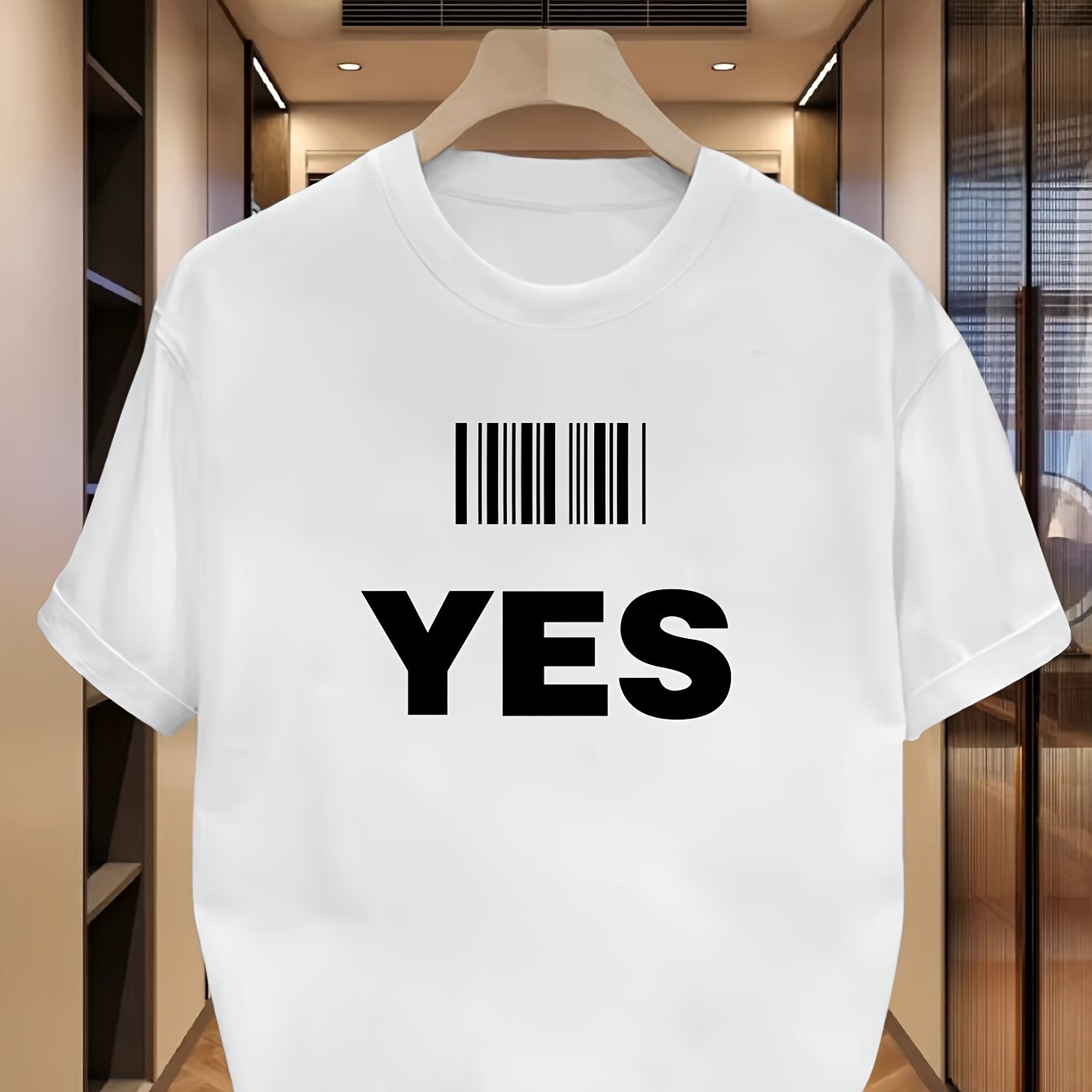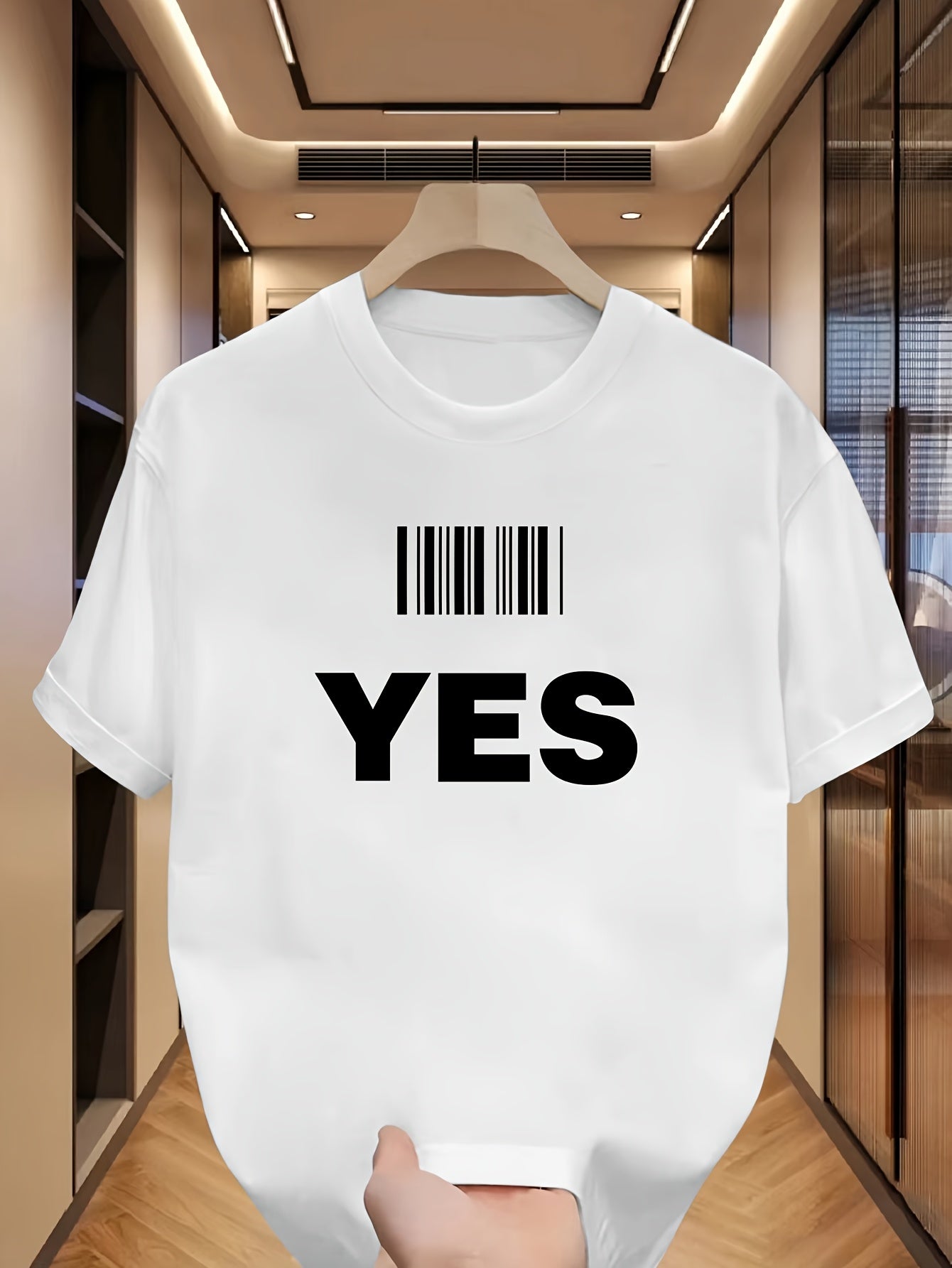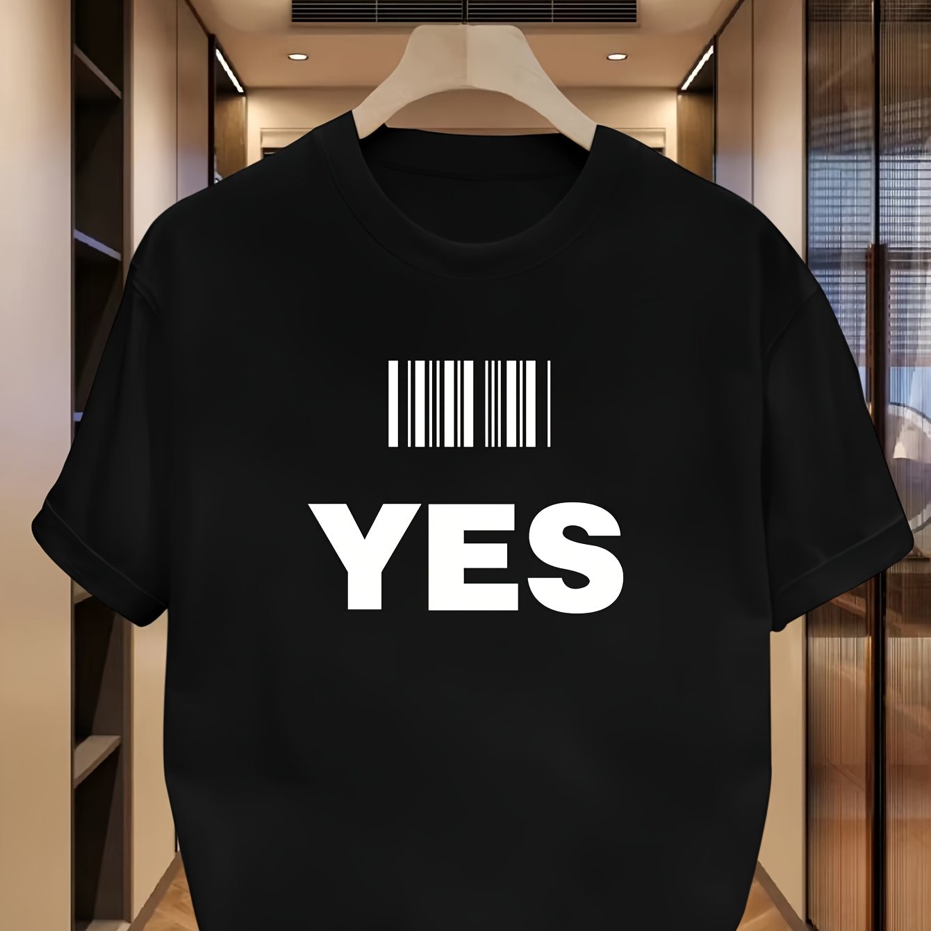 Men's Soft Cotton T-Shirt with YES Print - Comfortable, Casual Crew Neck Tee for Casual Attire