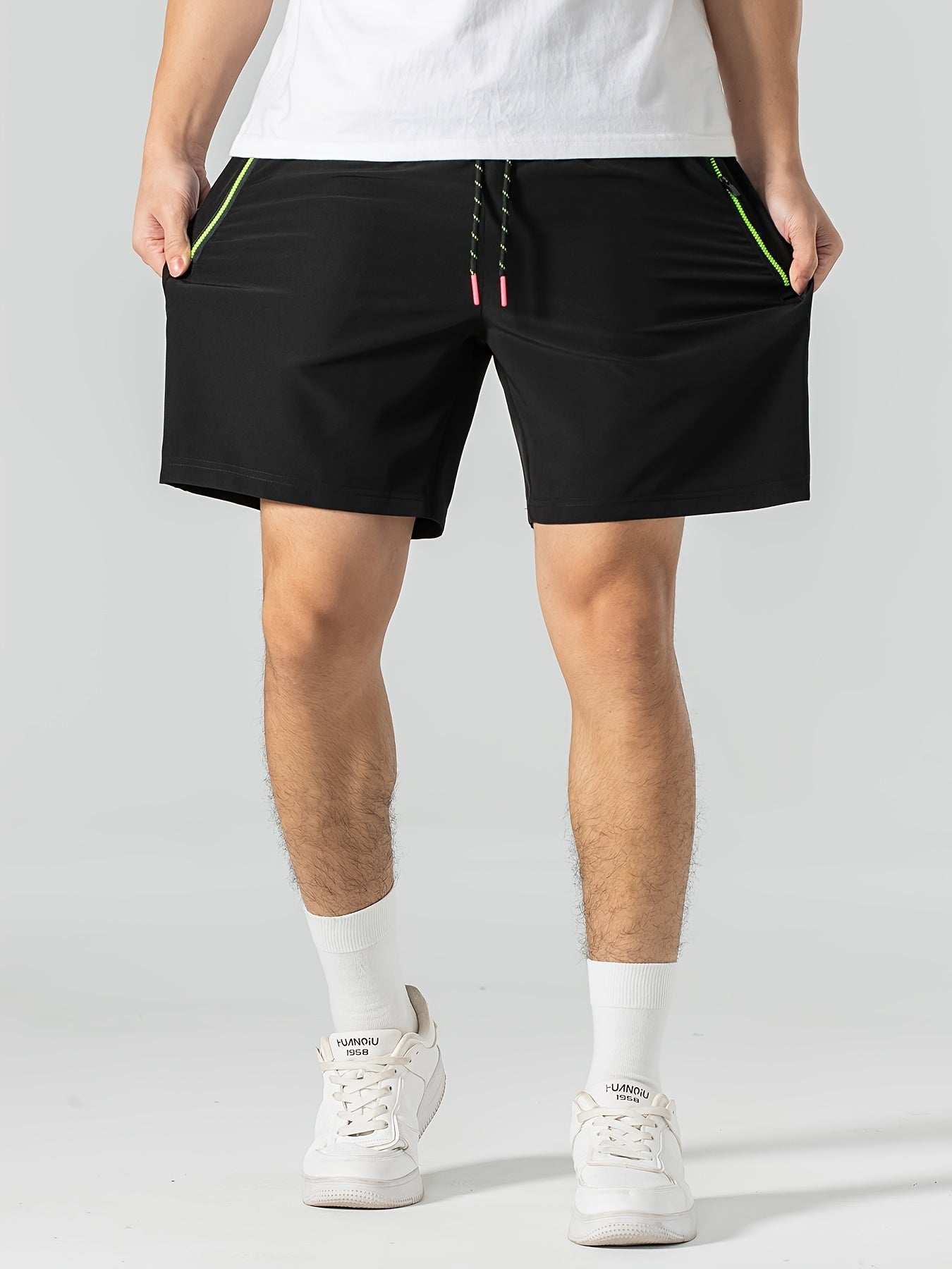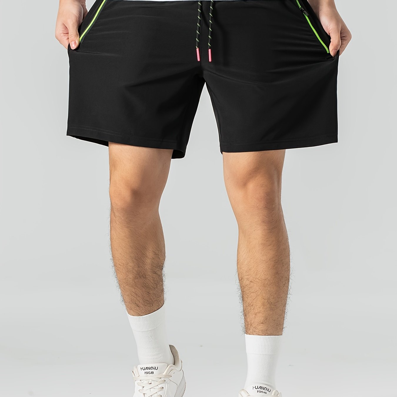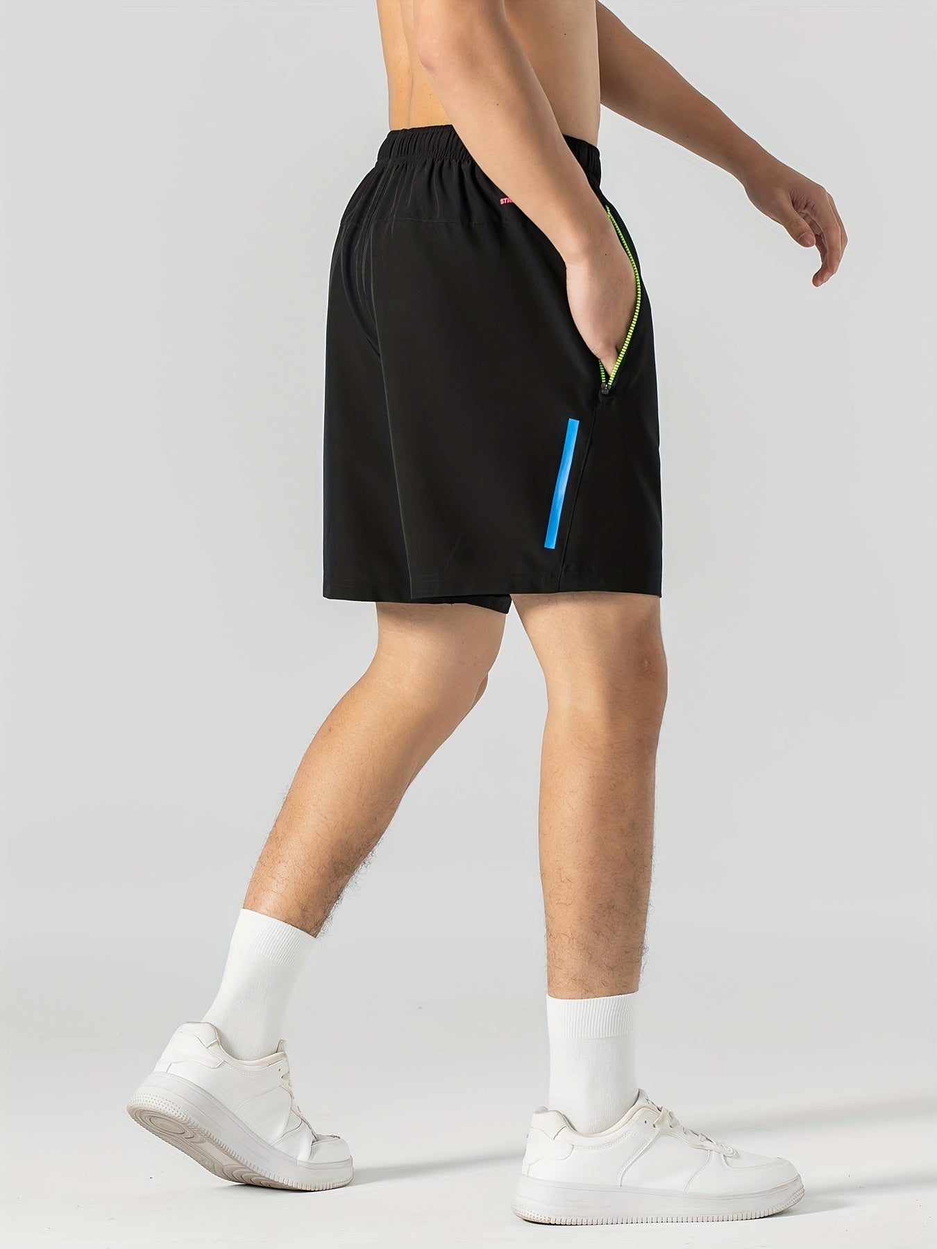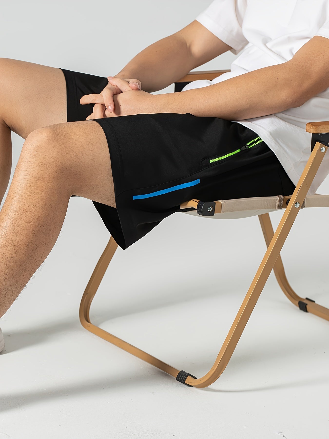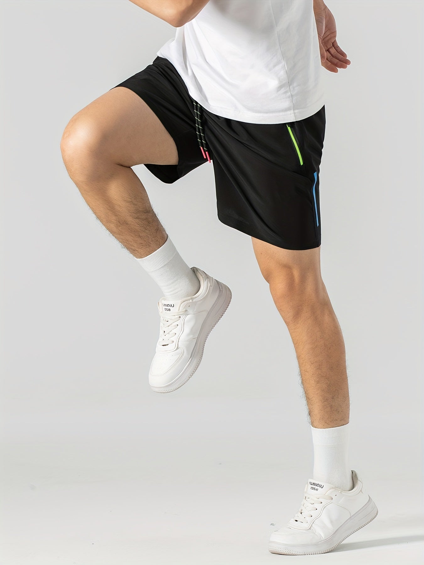 Men's Stripe Pattern Sports Shorts With Drawstring And Zippered Pockets, Casual And Trendy Quick Dry Shorts Suitable For Summer Fitness Workout And Running Wear