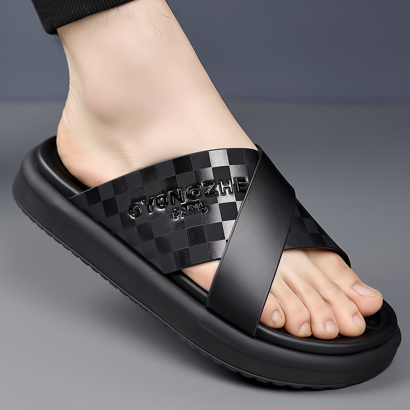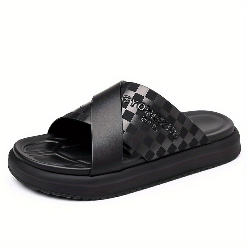Men'S Stylish Black & White Checkered Slide Sandals - Comfortable EVA Thick Sole, Casual Summer Footwear for Outdoor & Daily Wear, Minimalist Design, Lightweight Footwear, Minimalist Footwear, Durable Footwear