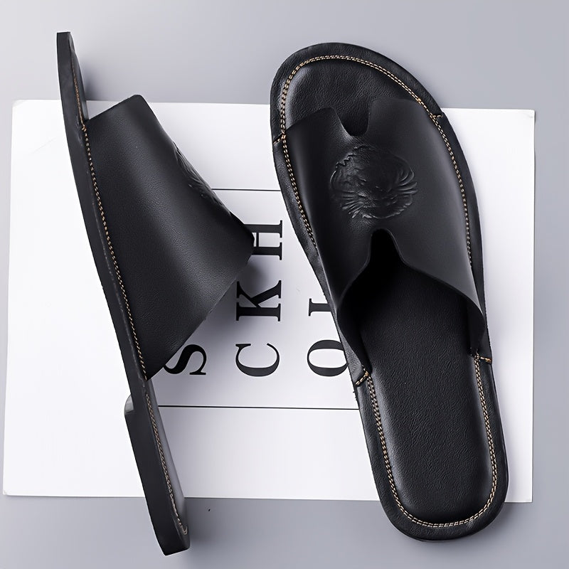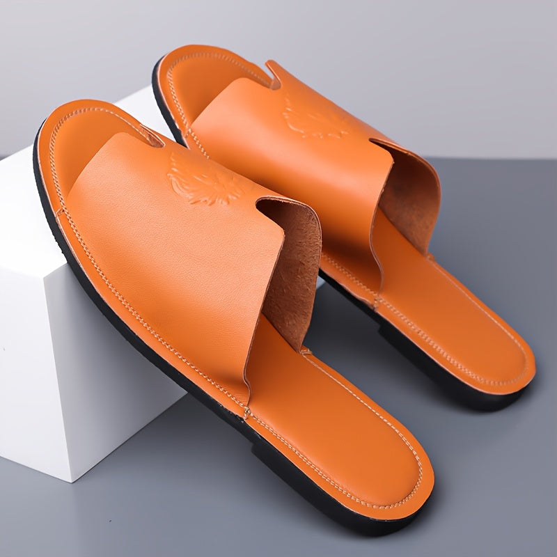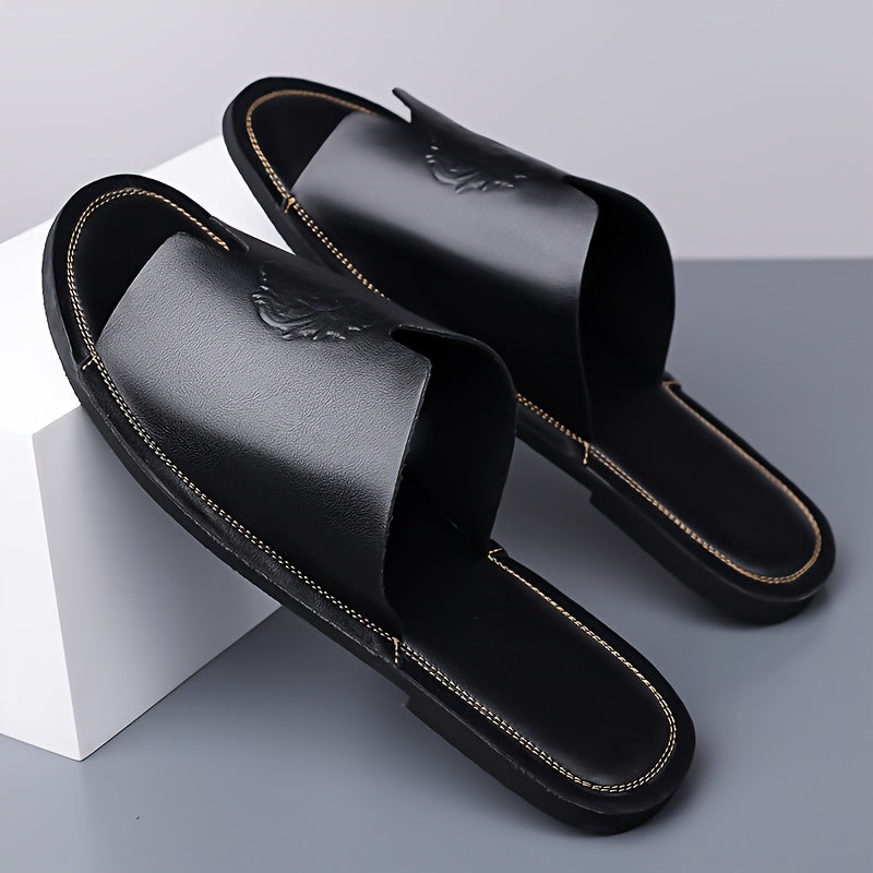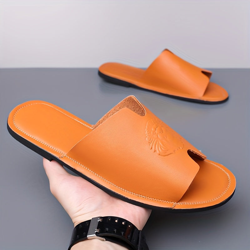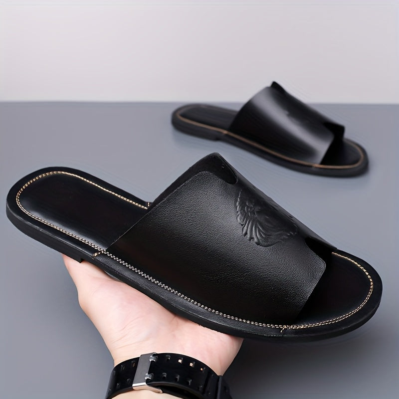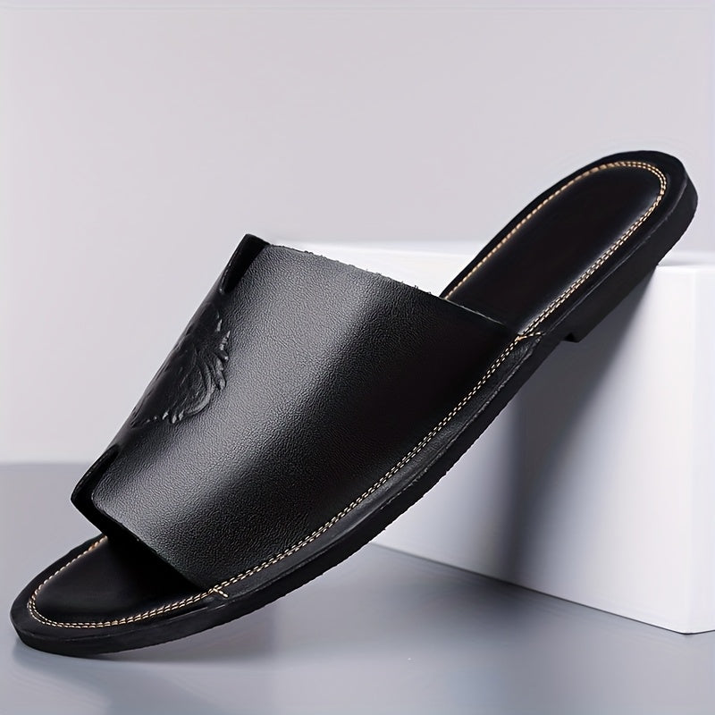 Men'S Summer Slide Sandals - Casual Slip-On Design with Embossed Pattern, Comfortable Faux Cover Upper & Rubber Sole, Perfect for Vacation, Daily Wear, and Leisure, Strappy Sandals