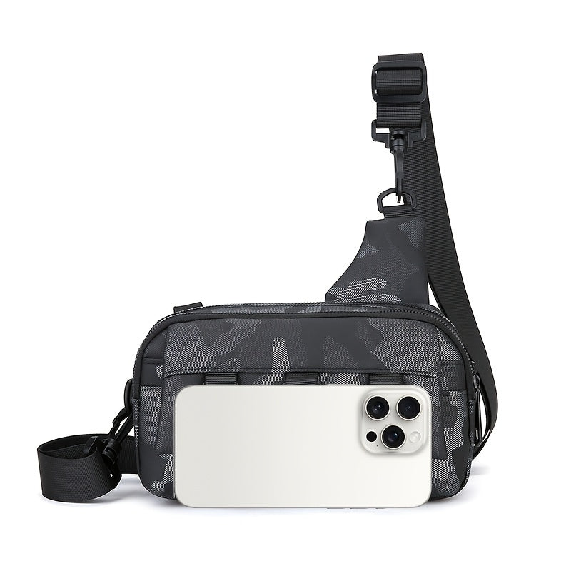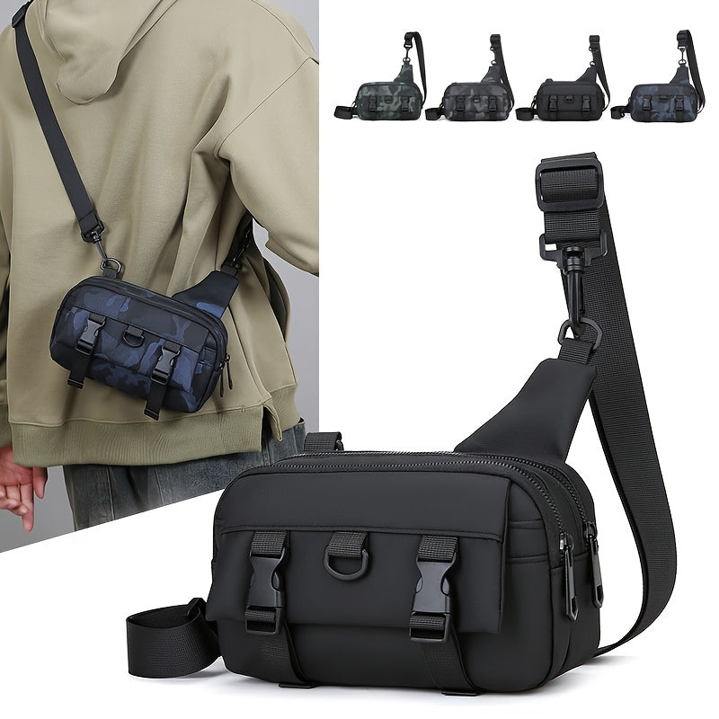 Men's Trendy Camo Crossbody Bag - Multifunctional Sports Sling Backpack with Multiple Compartments, Large Capacity, PU Leather, Perfect for Outdoor Activities and Commuting, Secure Travel Bag | Trendy Sling Style | PU Leather Bag