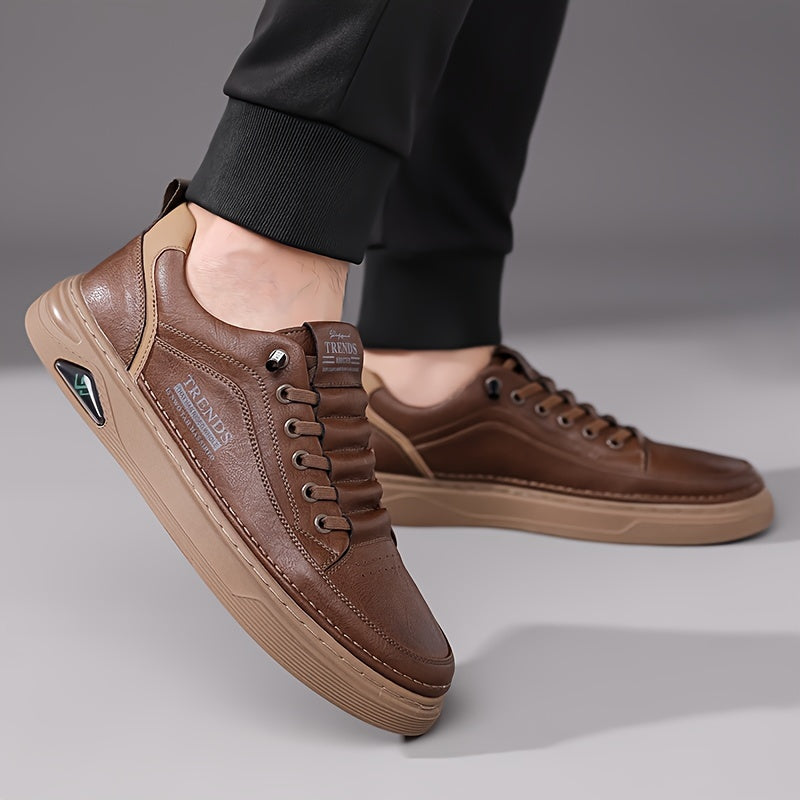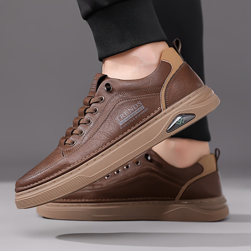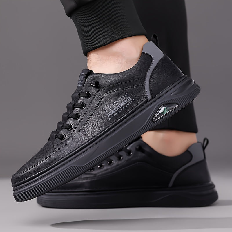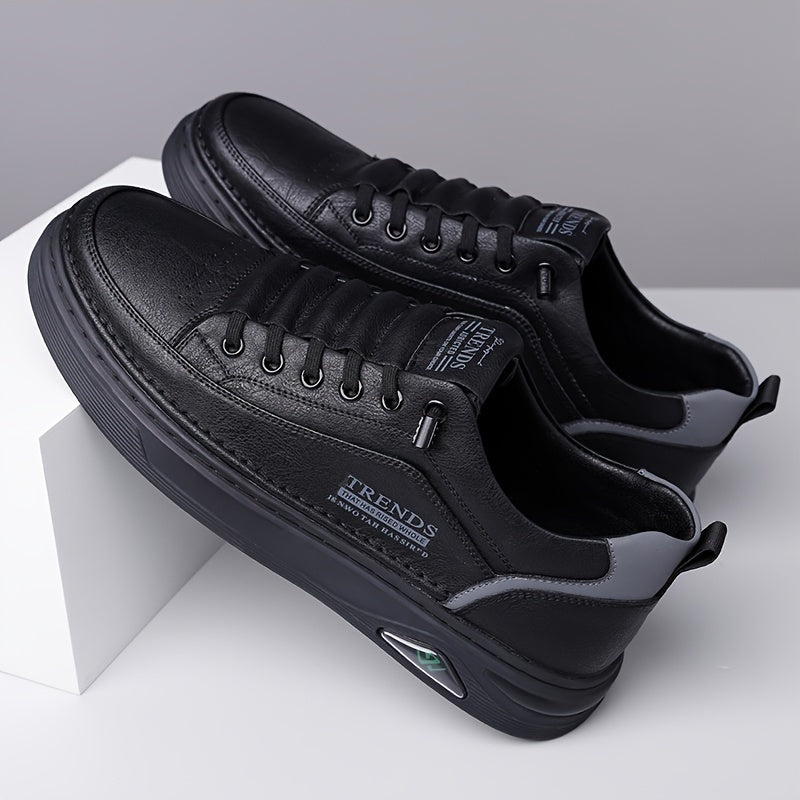 Men's Trendy Solid Skate Shoes, Comfy Non Slip Casual Lace Up Sneakers for Men's Outdoor Activities