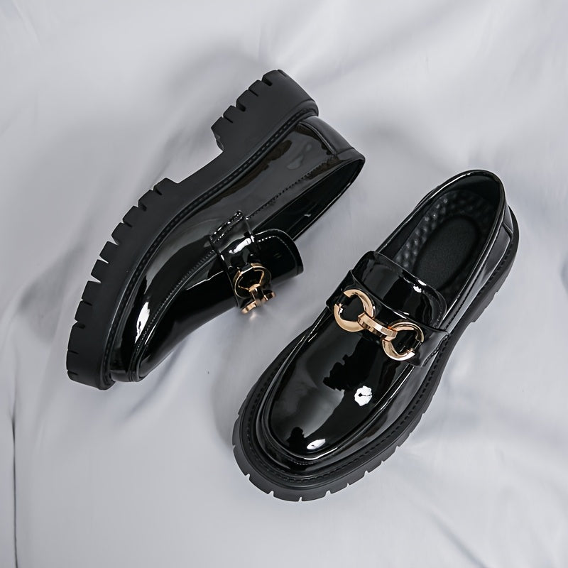 Men'S Vintage British Style Loafers - Height-Boosting Slip-On Dress Shoes with Golden-Tone Buckle, Breathable, Non-Slip Rubber Sole, Pointed Toe for Business & Casual Wear, Breathable Shoes | Antislip Shoes | Durable Rubber Sole
