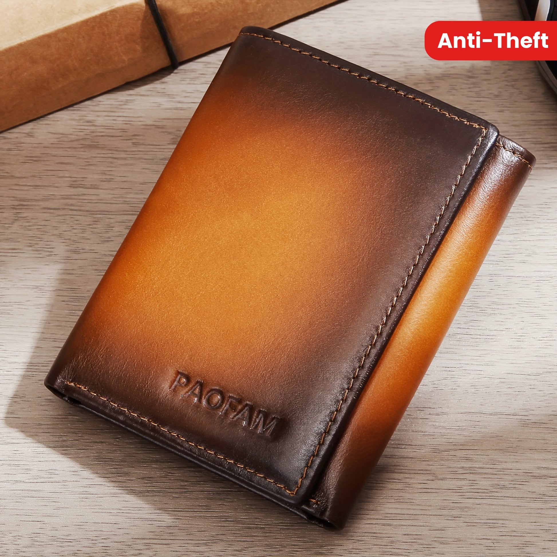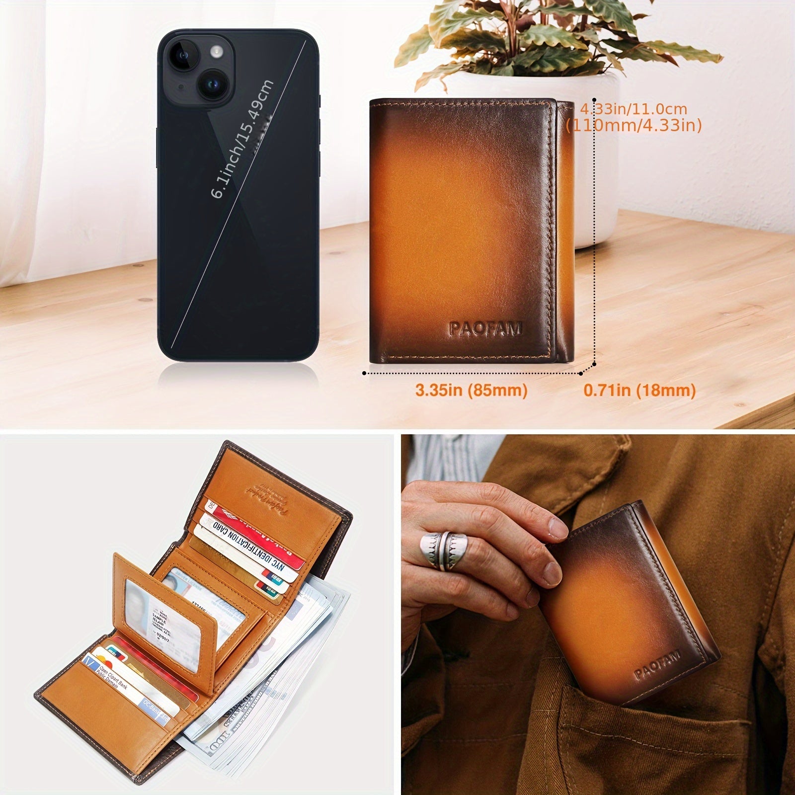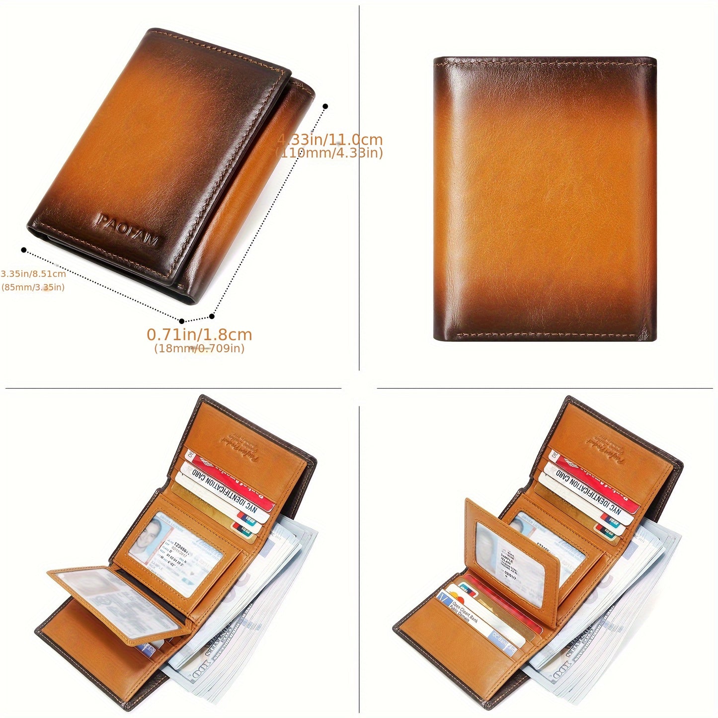 Mens Wallet Genuine Leather Trifold Wallet RFID Blocking Anti-Theft For Biker, Motorcycle
