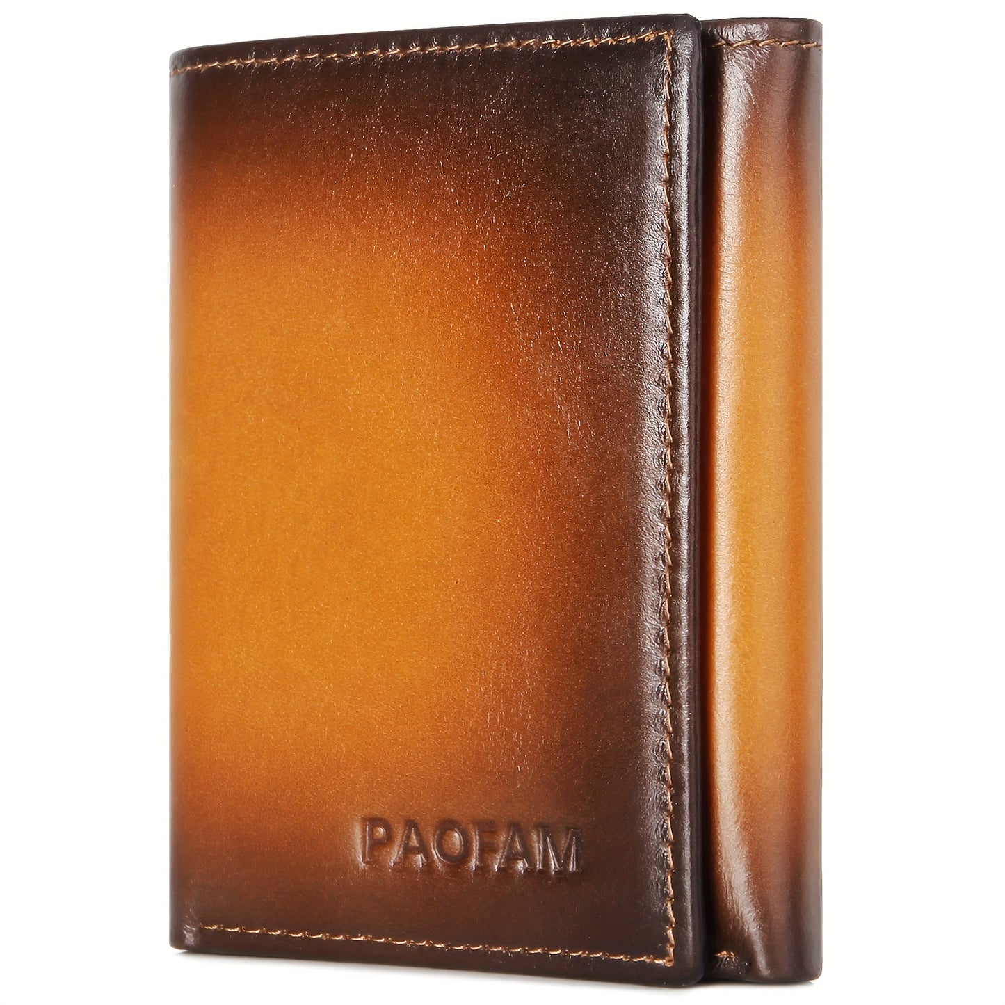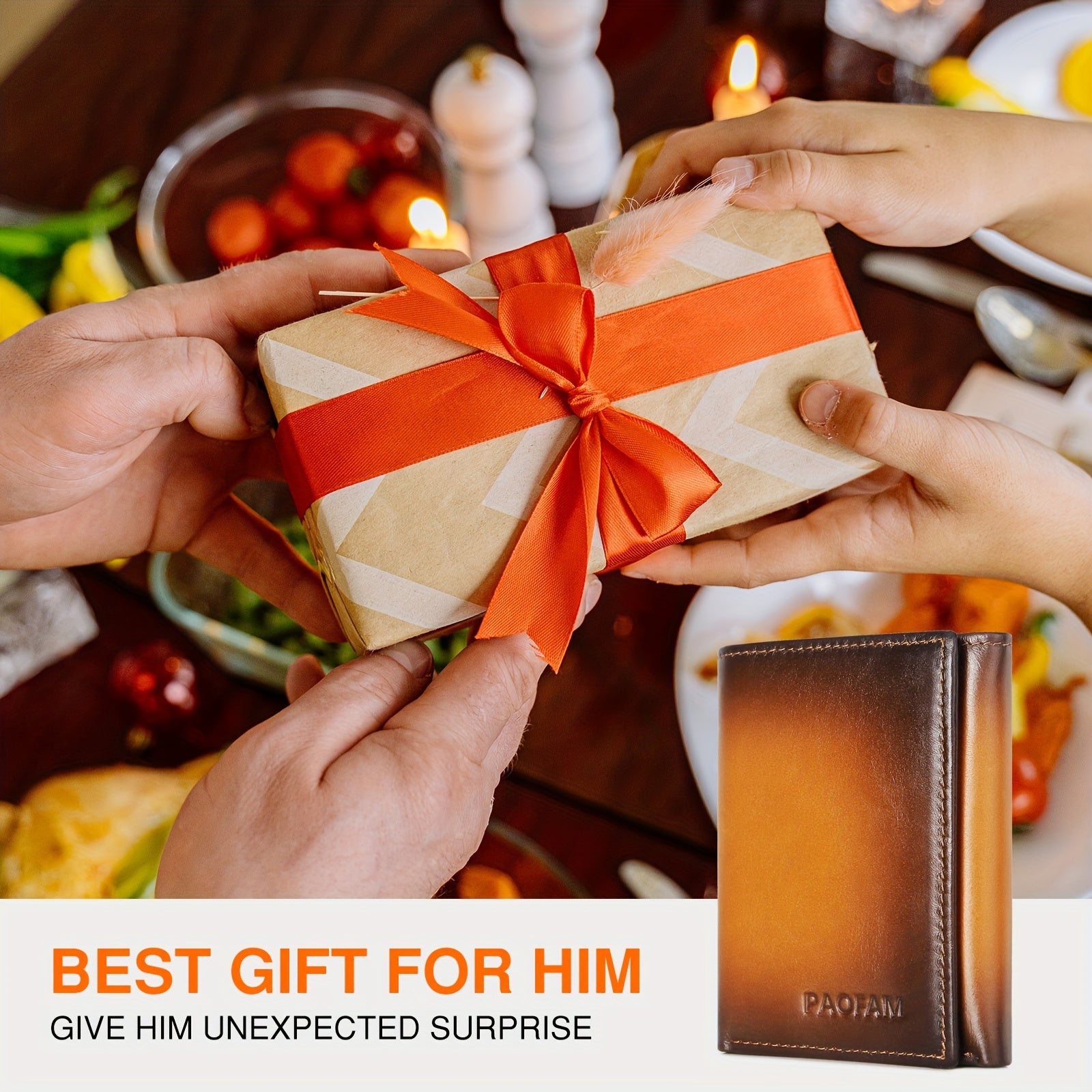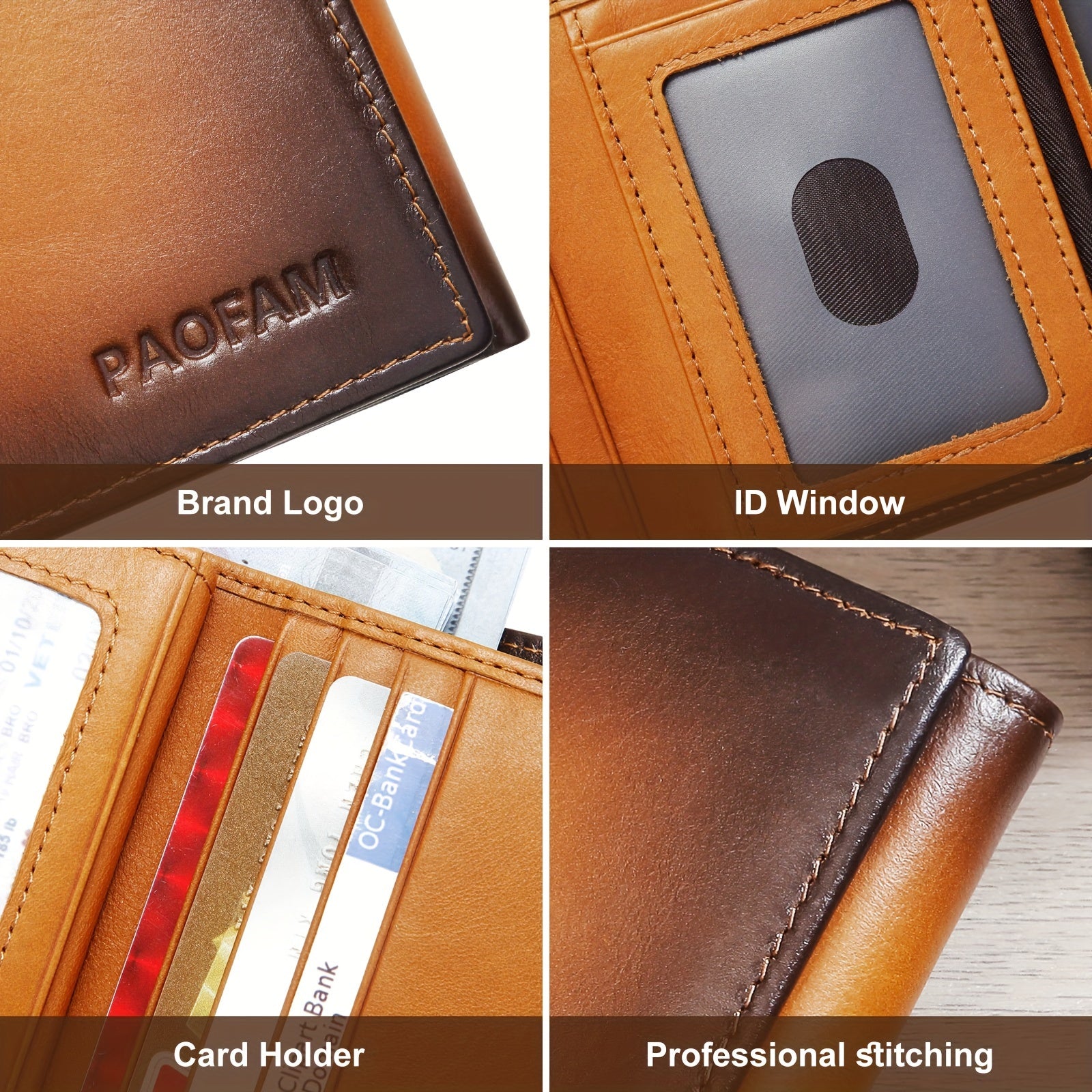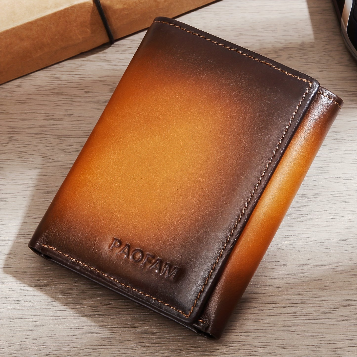 Mens Wallet Genuine Leather Trifold Wallet RFID Blocking Anti-Theft For Biker, Motorcycle