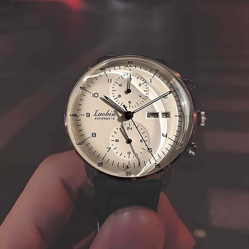 Men'S Watch, Fully Automatic Mechanical Movement, Party, Avant-garde, Stainless Steel Manufacturing, Leather Strap, Luminous Display, 30-meter Water Resistance For Daily Use, Calendar, Day Of The Week, Month Function, 3D Curved Screen, Without Battery