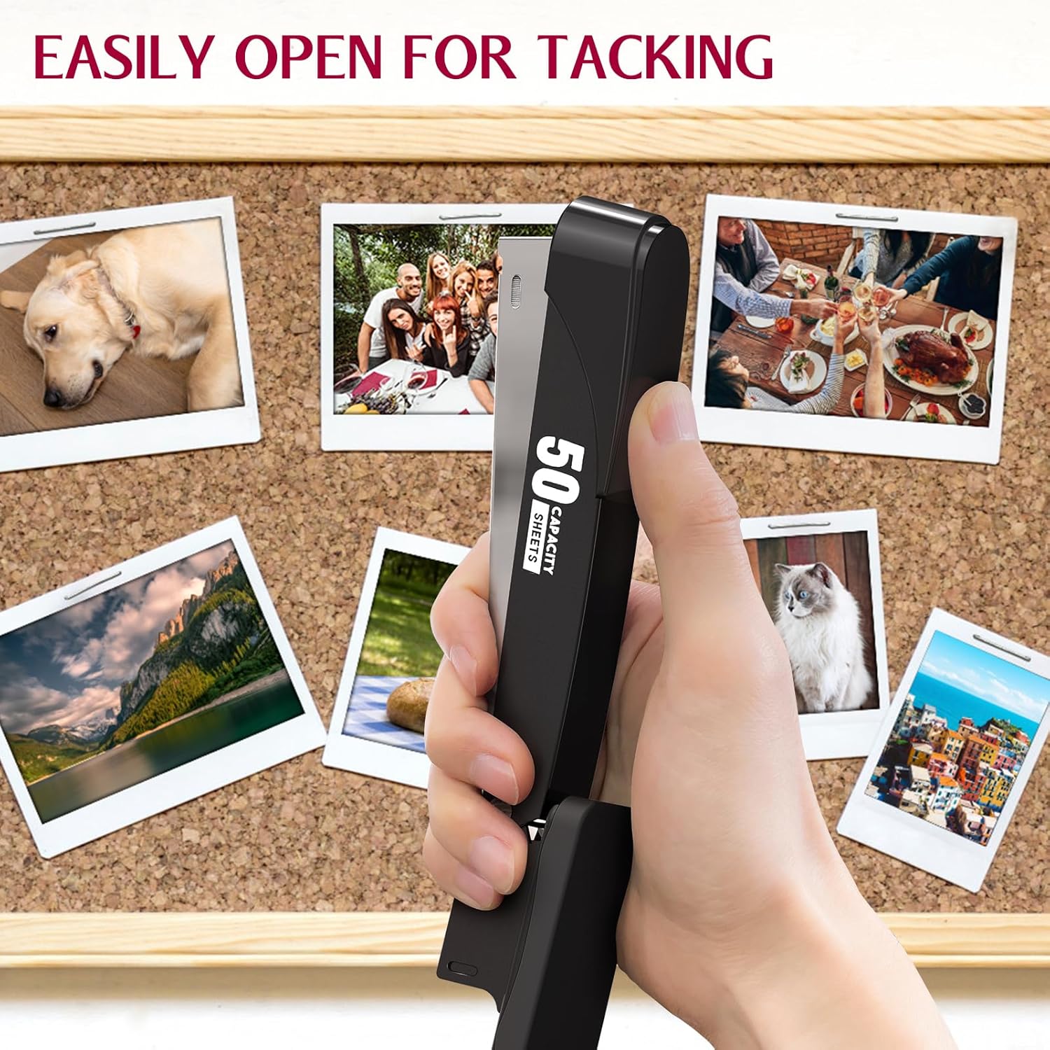 【Durable Metal Stapler】: Our stapler heavy duty with metal structure ensures high quality no-jam stapling and long term use. It can easily staples up to 50 sheets, a must have staples for desk, office and classroom.