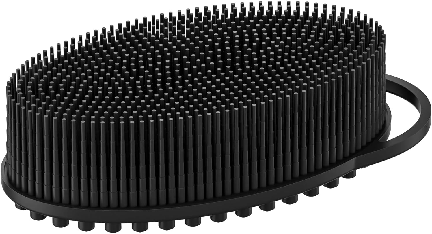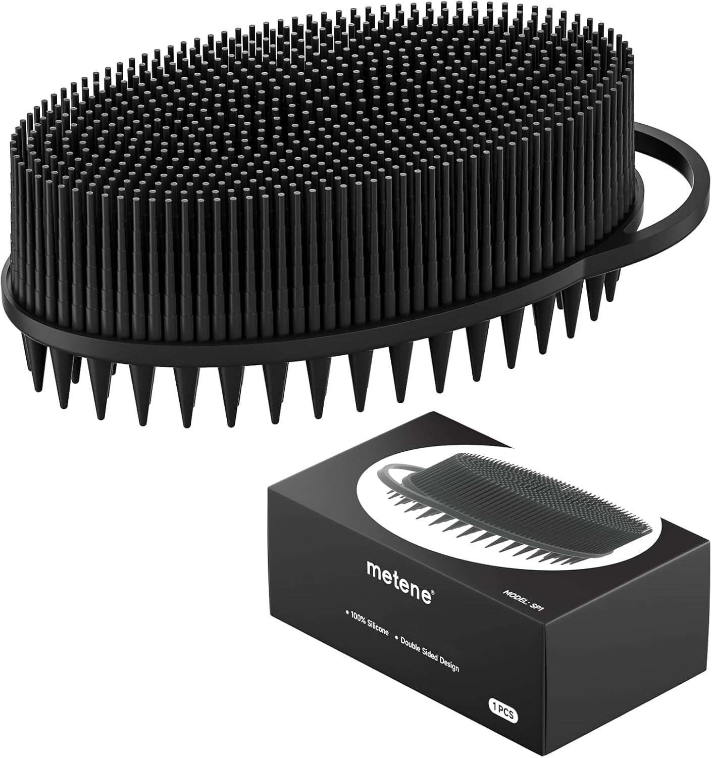 Metene Silicone Exfoliating Body Scrubber with Loop, Body Scrubber for Men and Women, Silicone Loofah for Shower, Soft Silicone Body Scrubber for Shower and Bath Skincare Routine (Black)