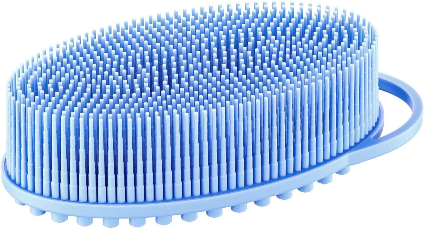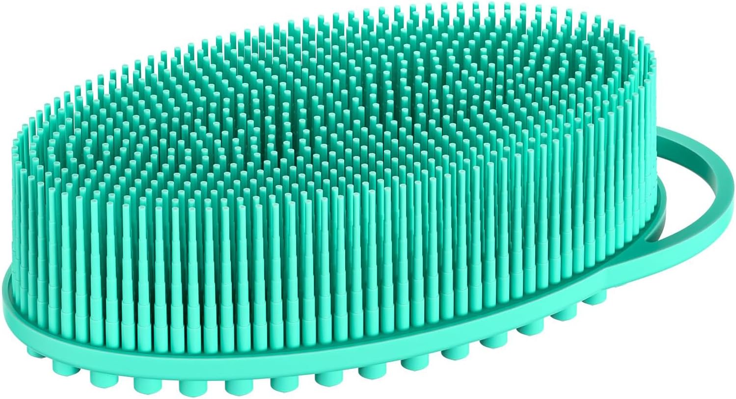 2 in 1 Silicone Body Scrubber: One side is a soft, long-bristled brush surface that makes it easy for you to clean all parts of your body. The other side has a scrubbing surface that helps you massage your head and skin joints. 4.7" x 2.8" x 1.34", It is the best choice for bathing and cleaning.