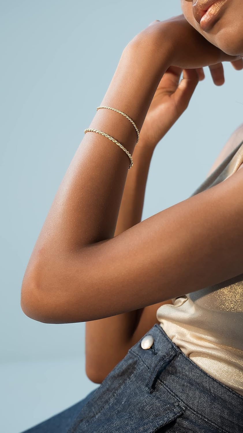 Miabella 18K Gold Over Sterling Silver Italian 2mm, 3mm Diamond-Cut Braided Rope Chain Bracelet for Men Women, Solid 925 Made in Italy